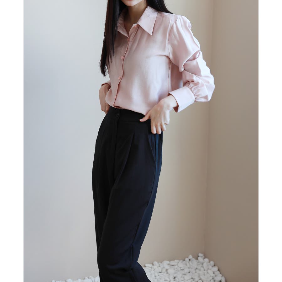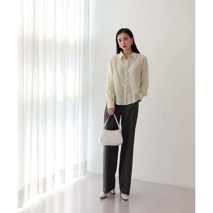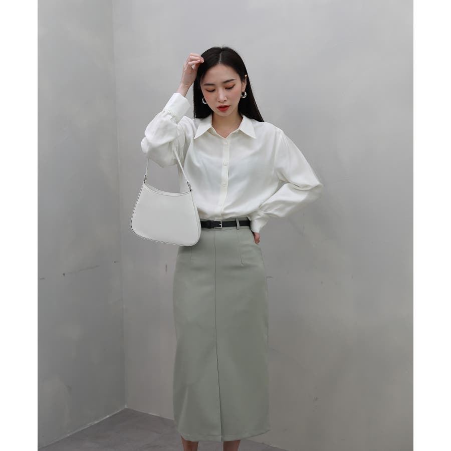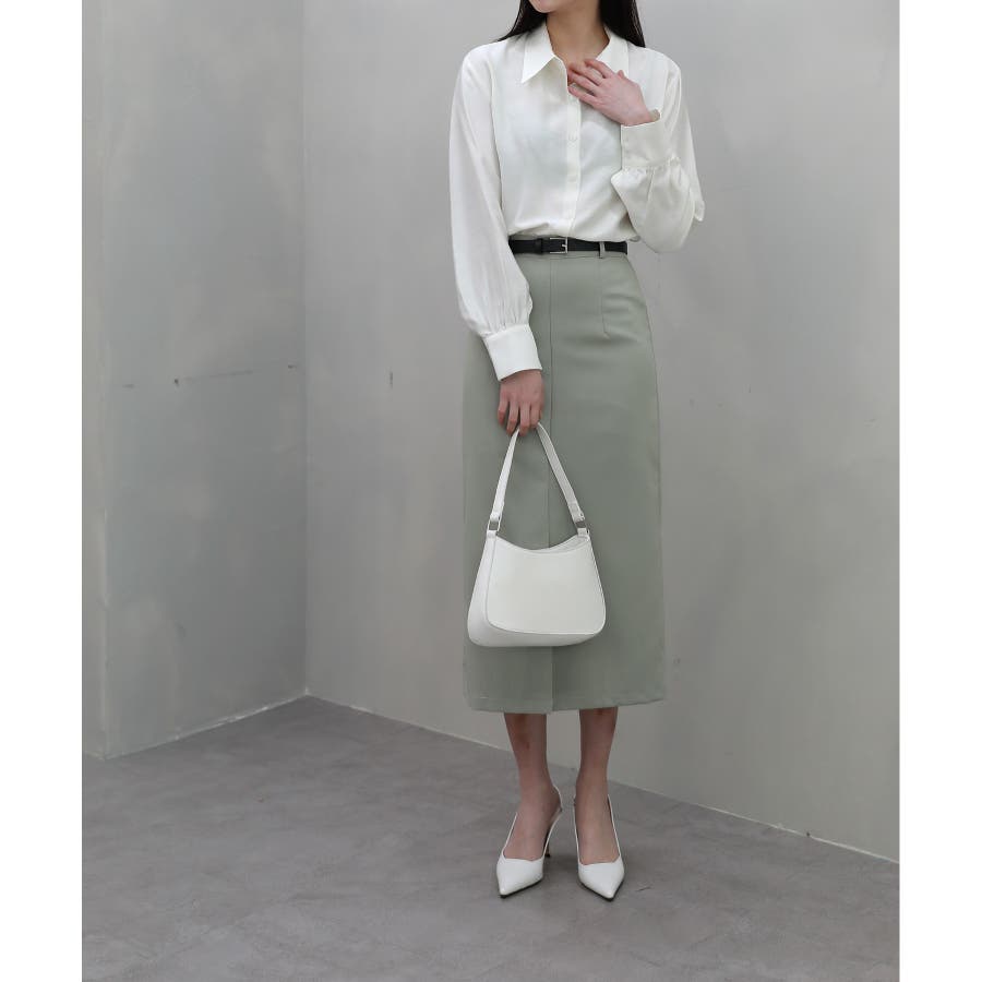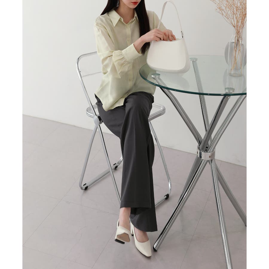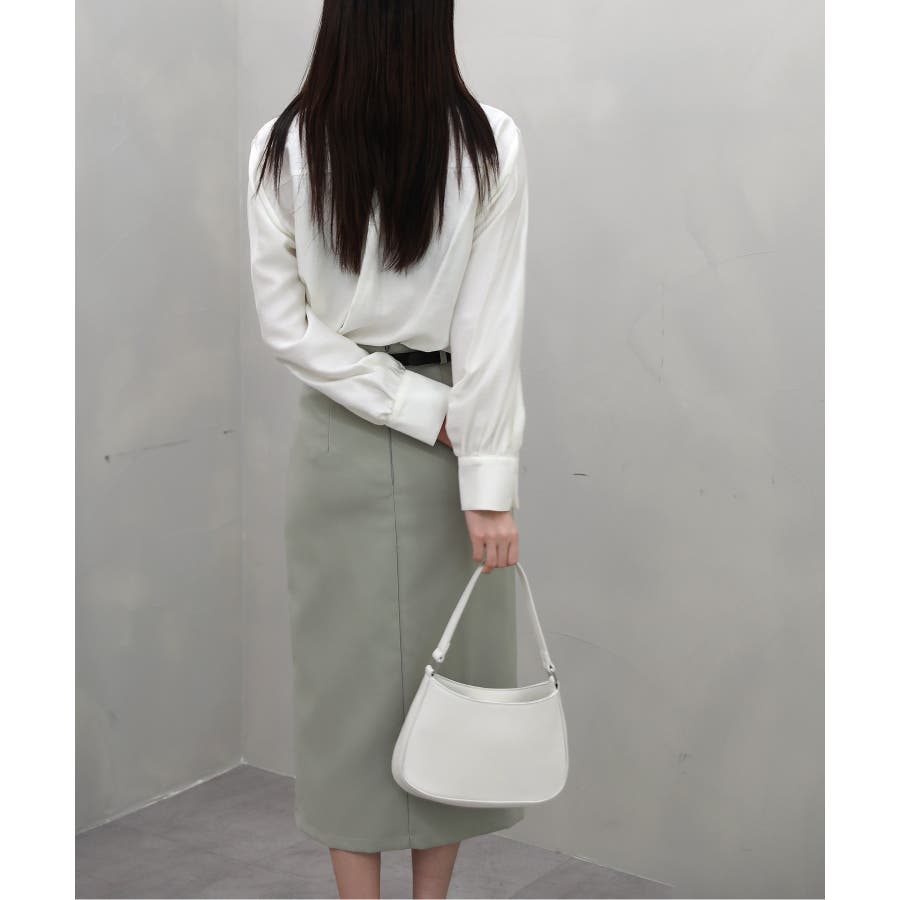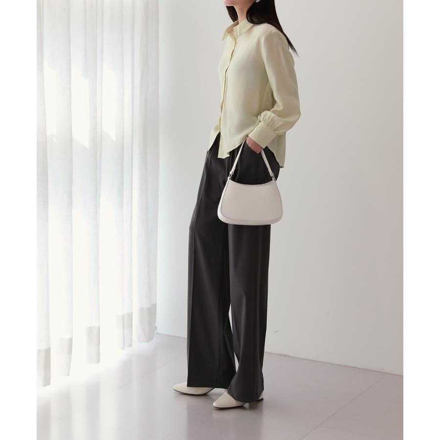 シンプルなデザインで、光沢感のある素材がポイントになりどのアイテムと合わせてもお洒落にスタイリング可能なアイテムです◎