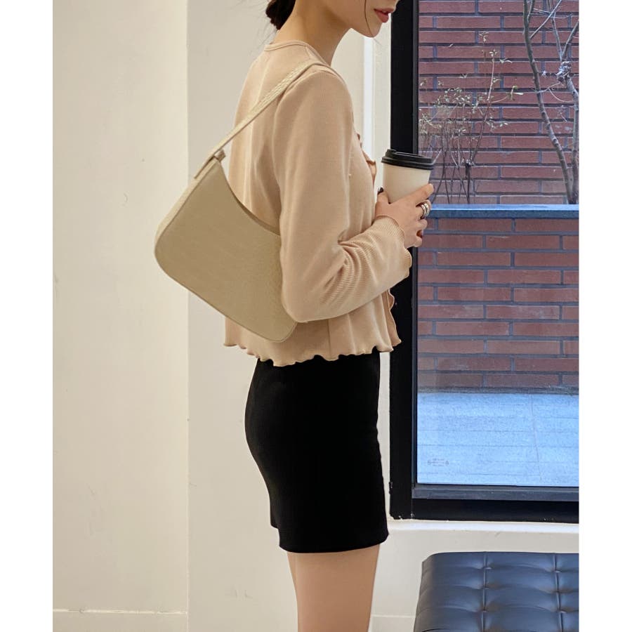 エッジの効いたスリット仕様で、さりげなくポイントを与えてくれるアイテムなので、色んな雰囲気のコーデに合わせてみてください:)