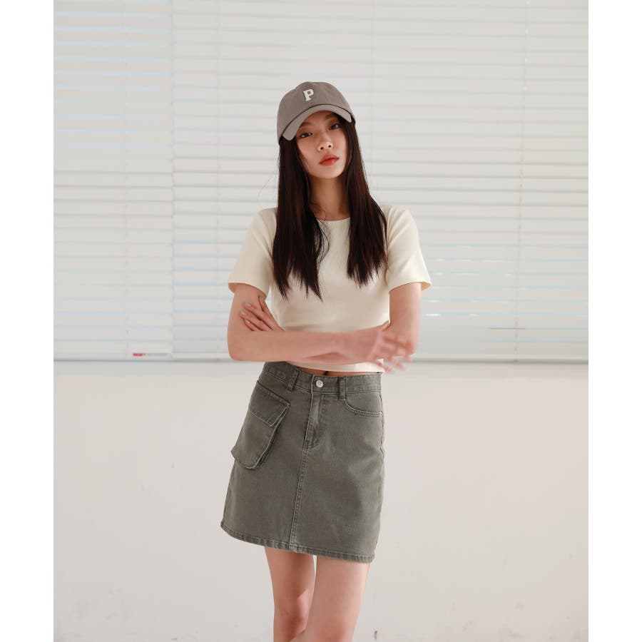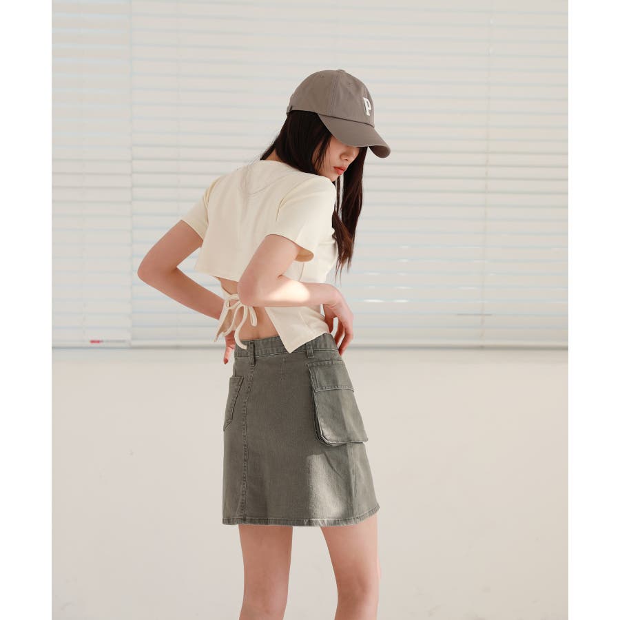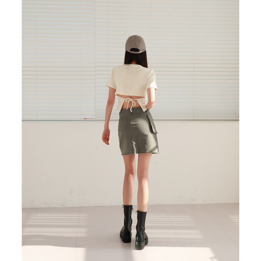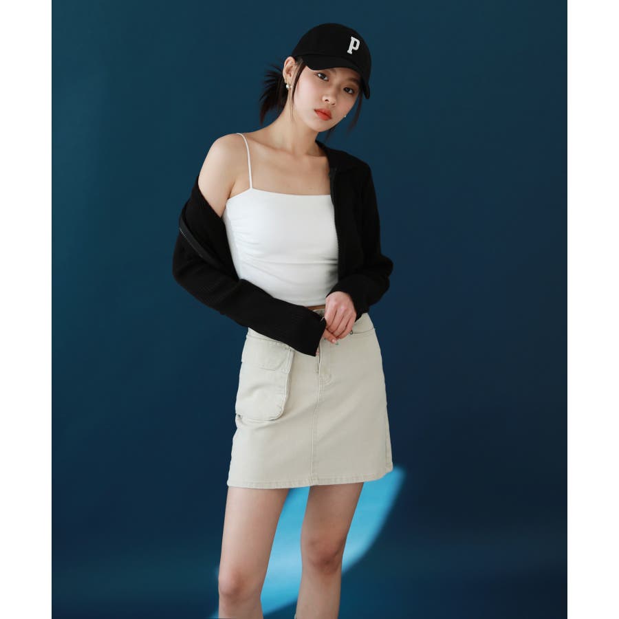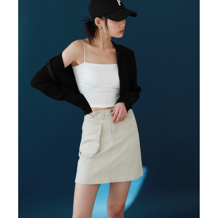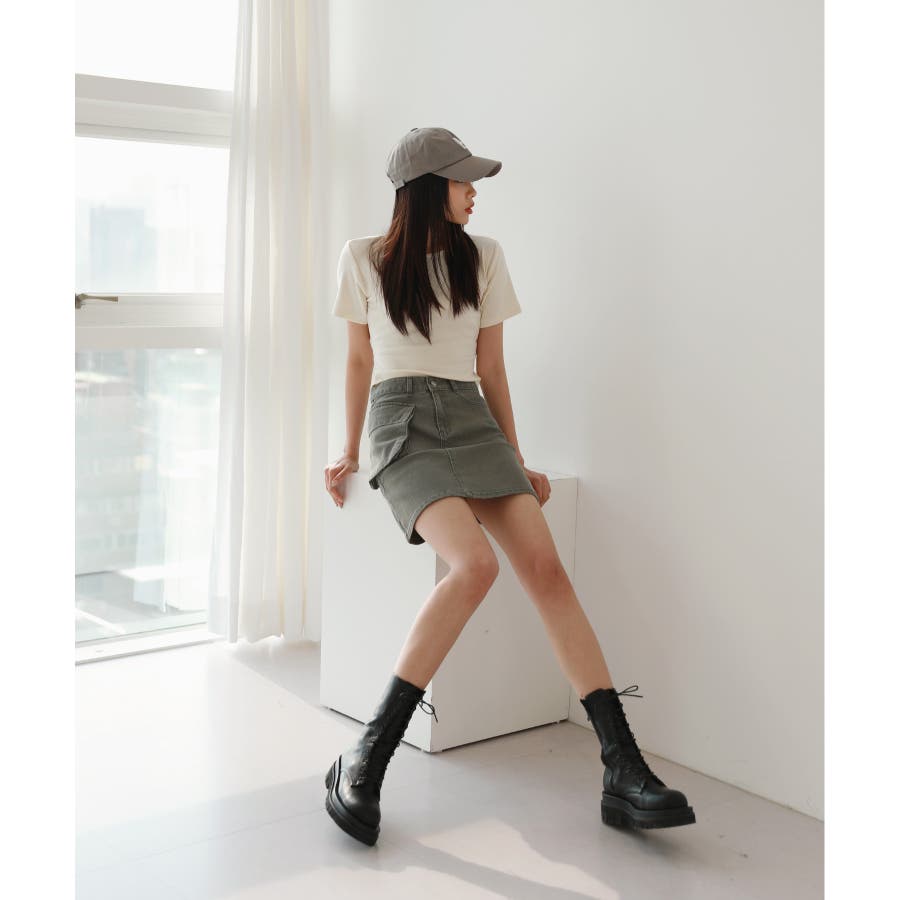クロップド丈のTシャツやカーディガンなどカーゴデザインにぴったりなトップスと合わせて着用してみてください:)