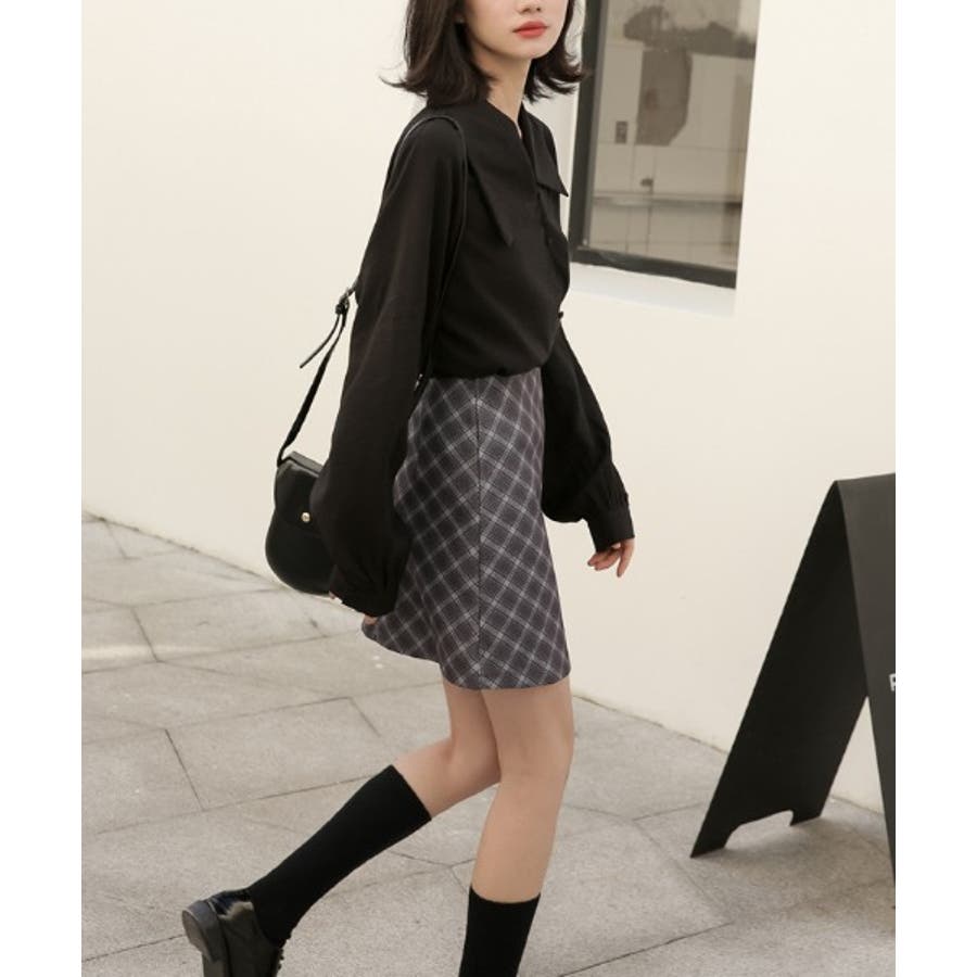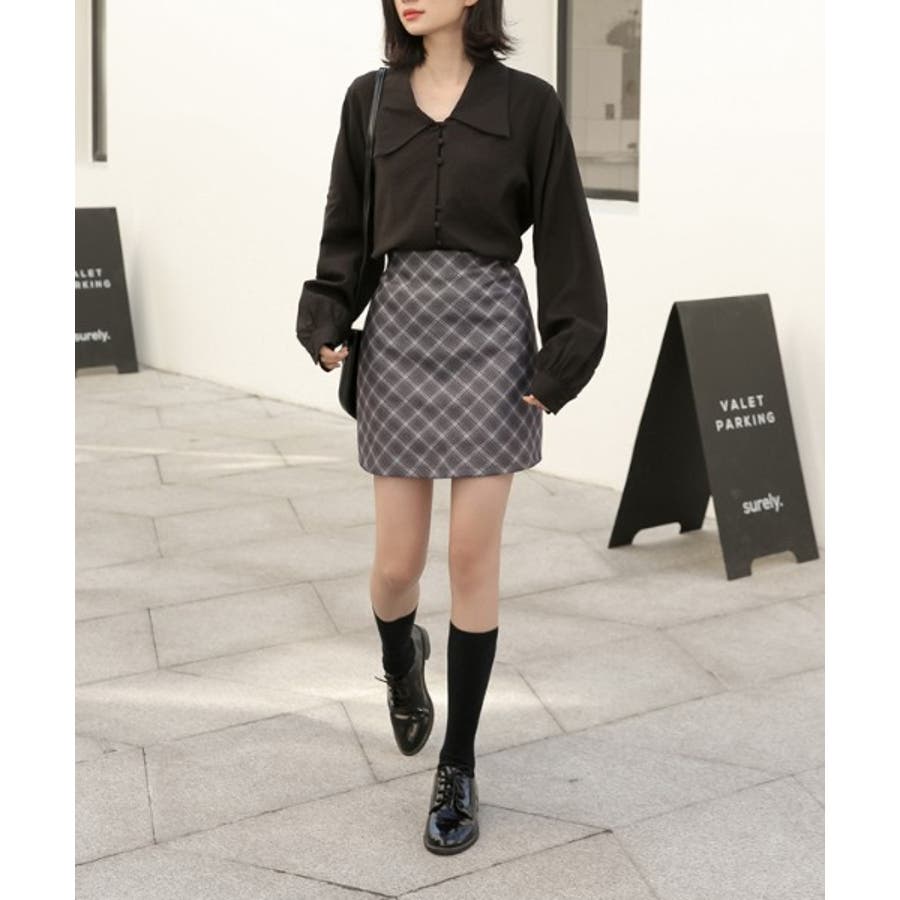 襟デザインを強調させて、カーディガンにレイヤードして着用すると可愛らしい雰囲気になります♡