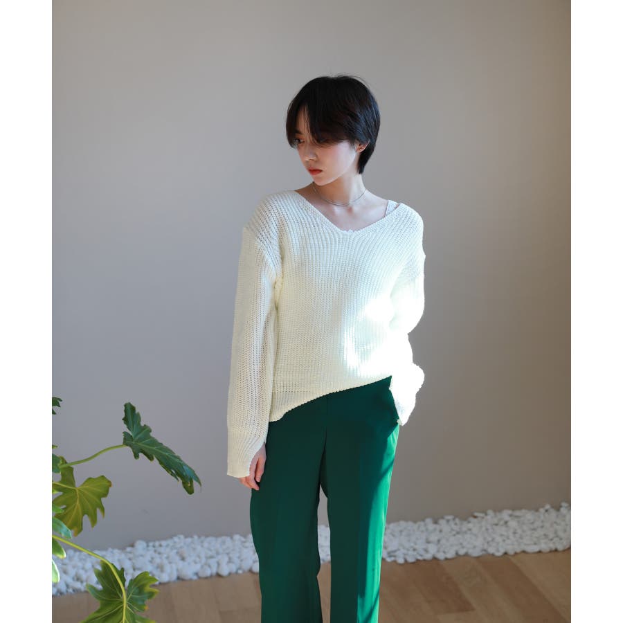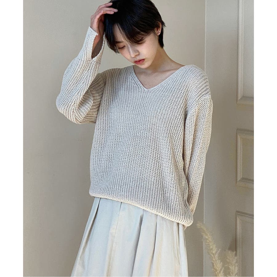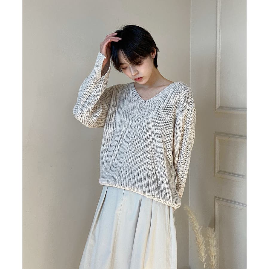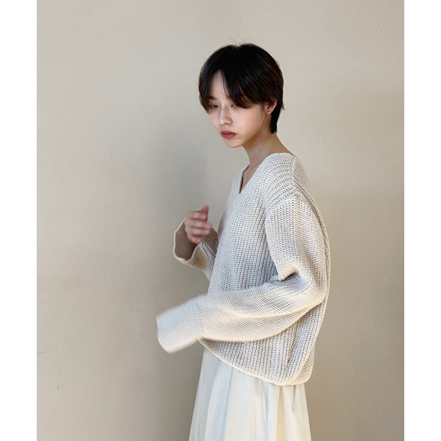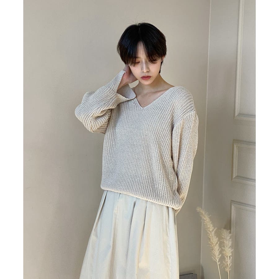 ルーズフィットデイリーVネックニット