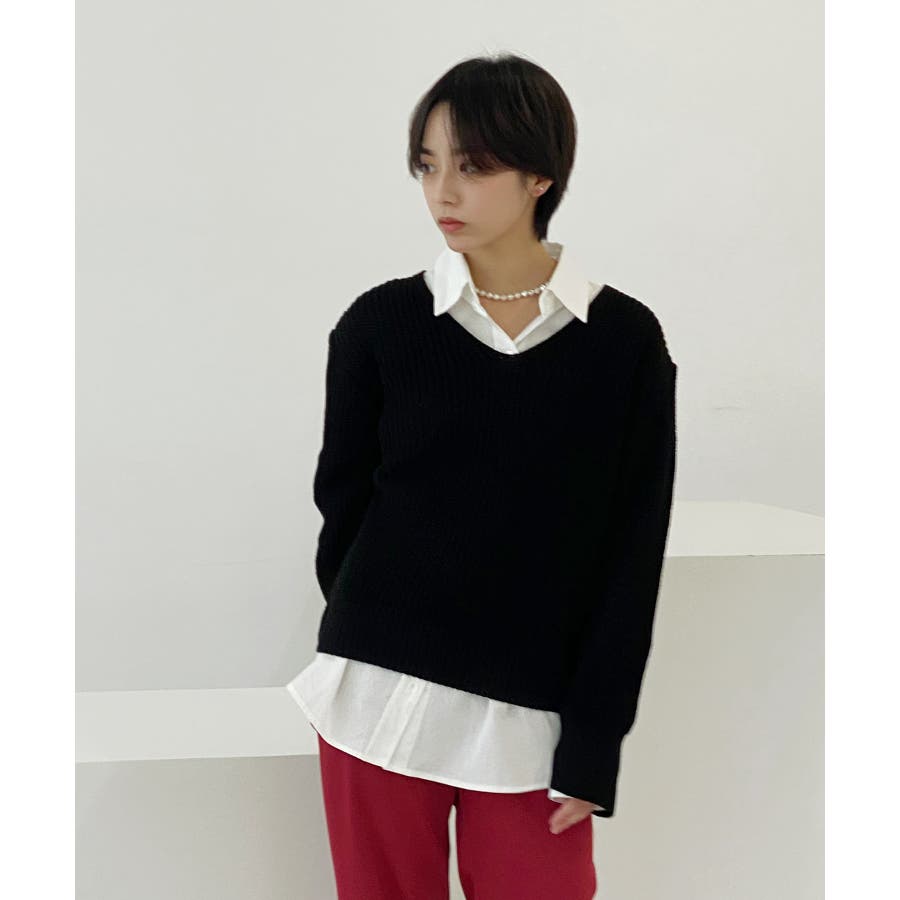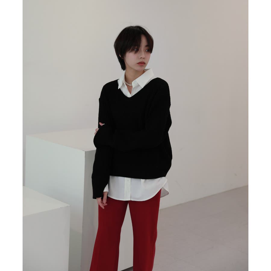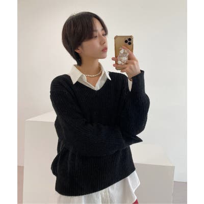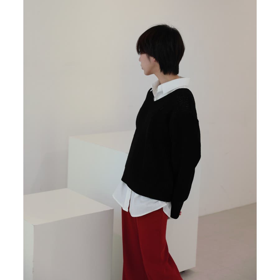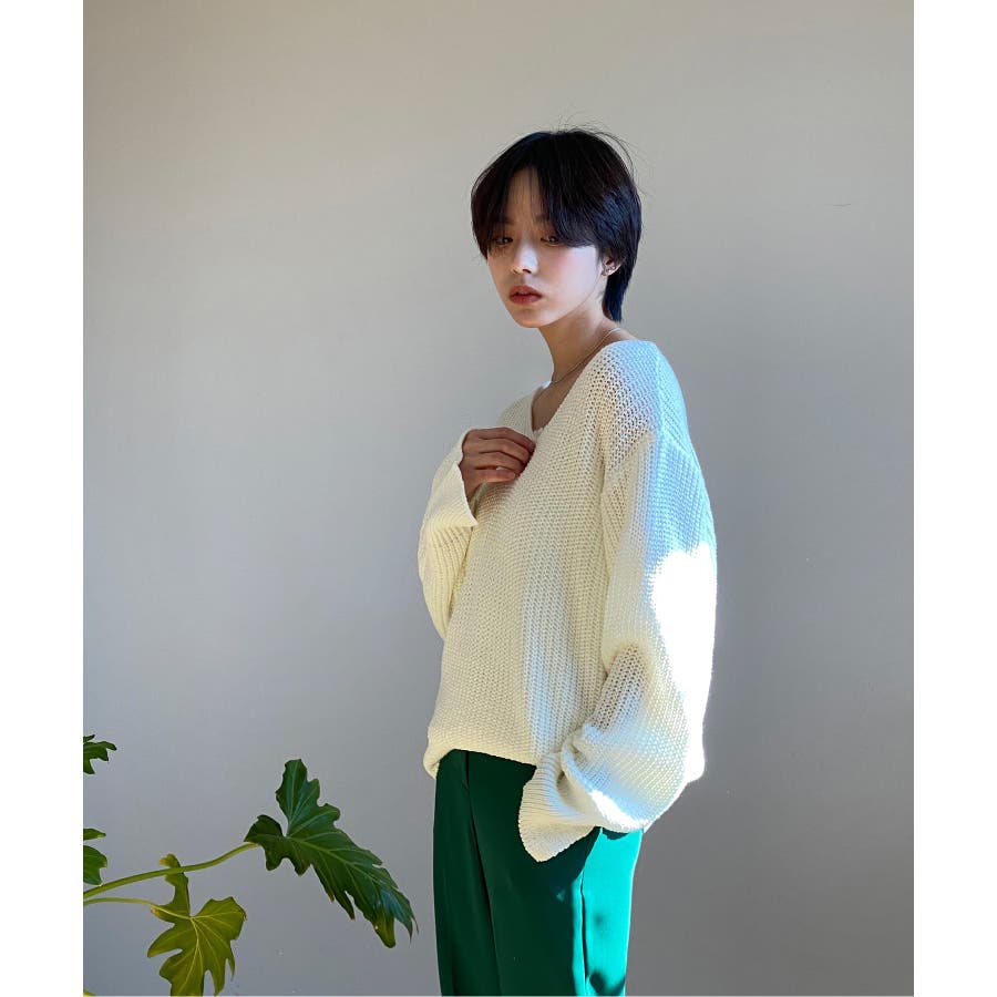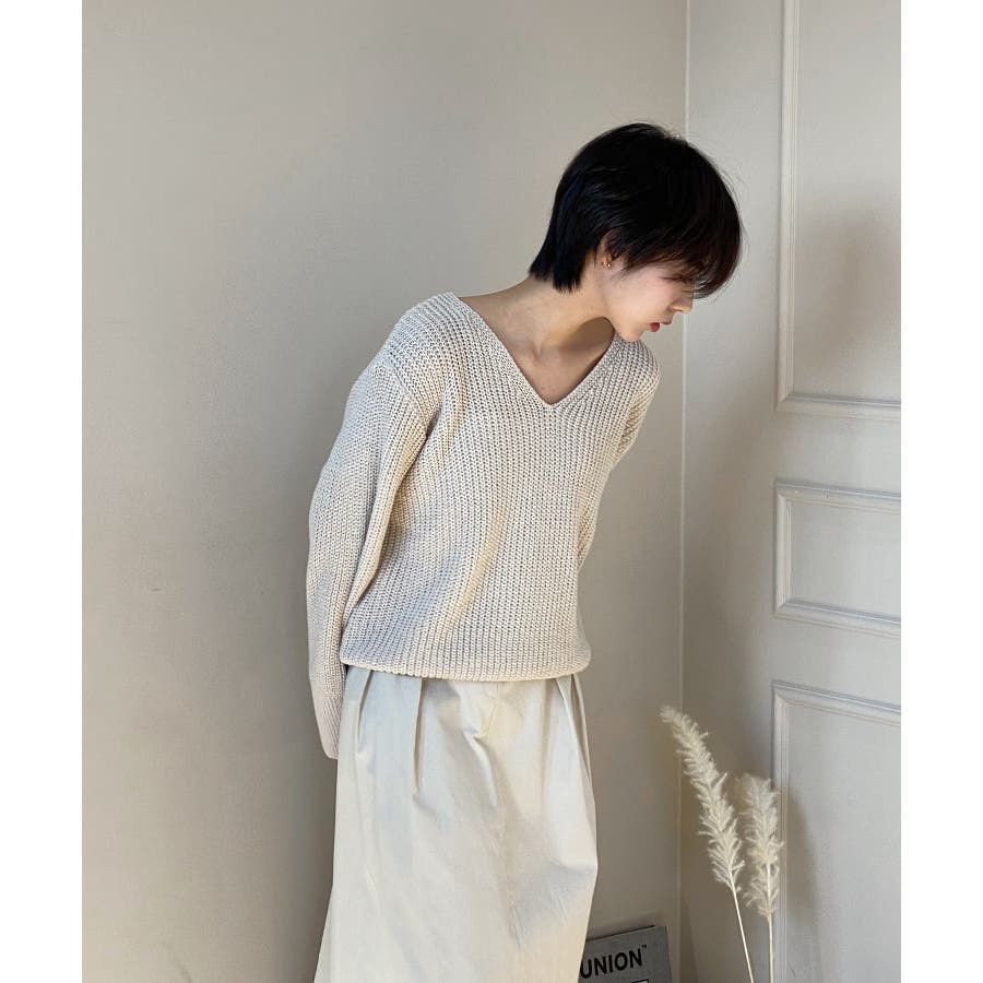 ルーズフィットデイリーVネックニット