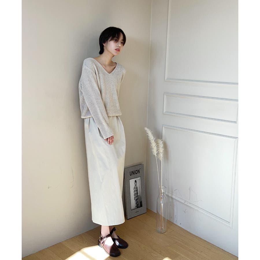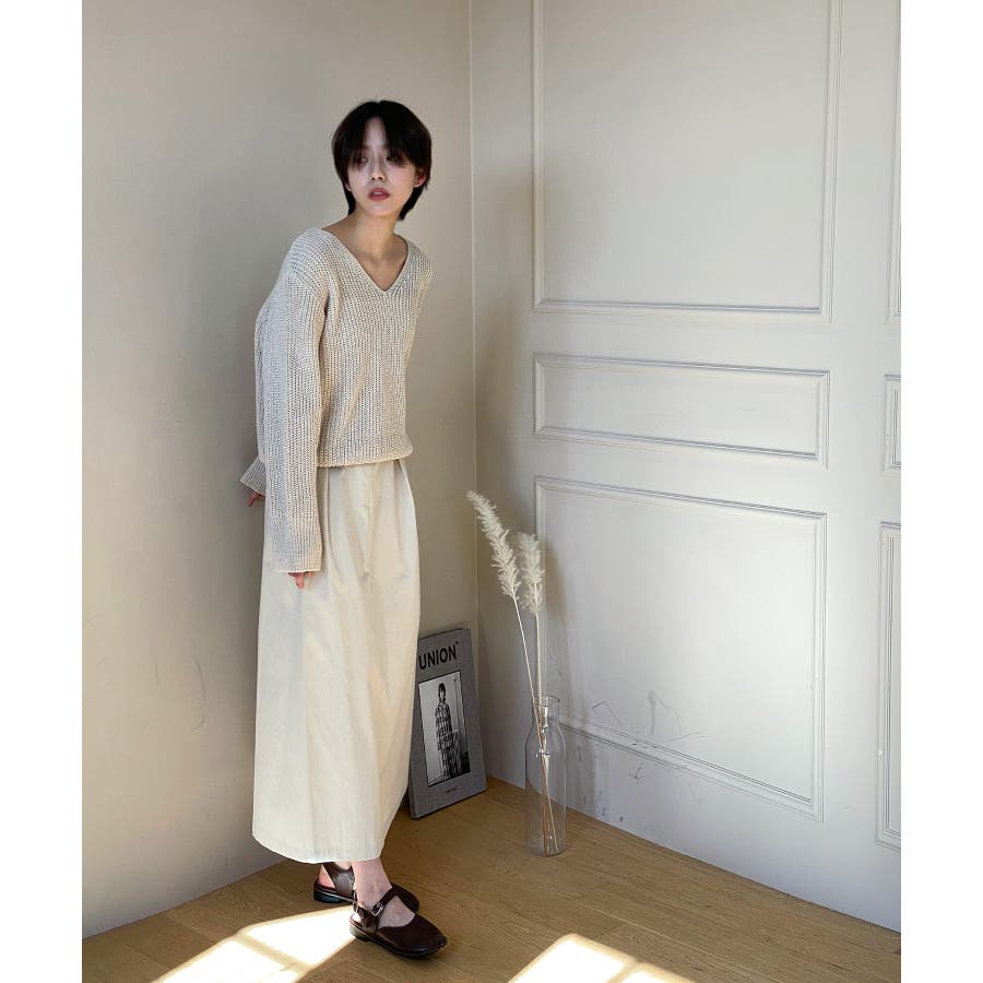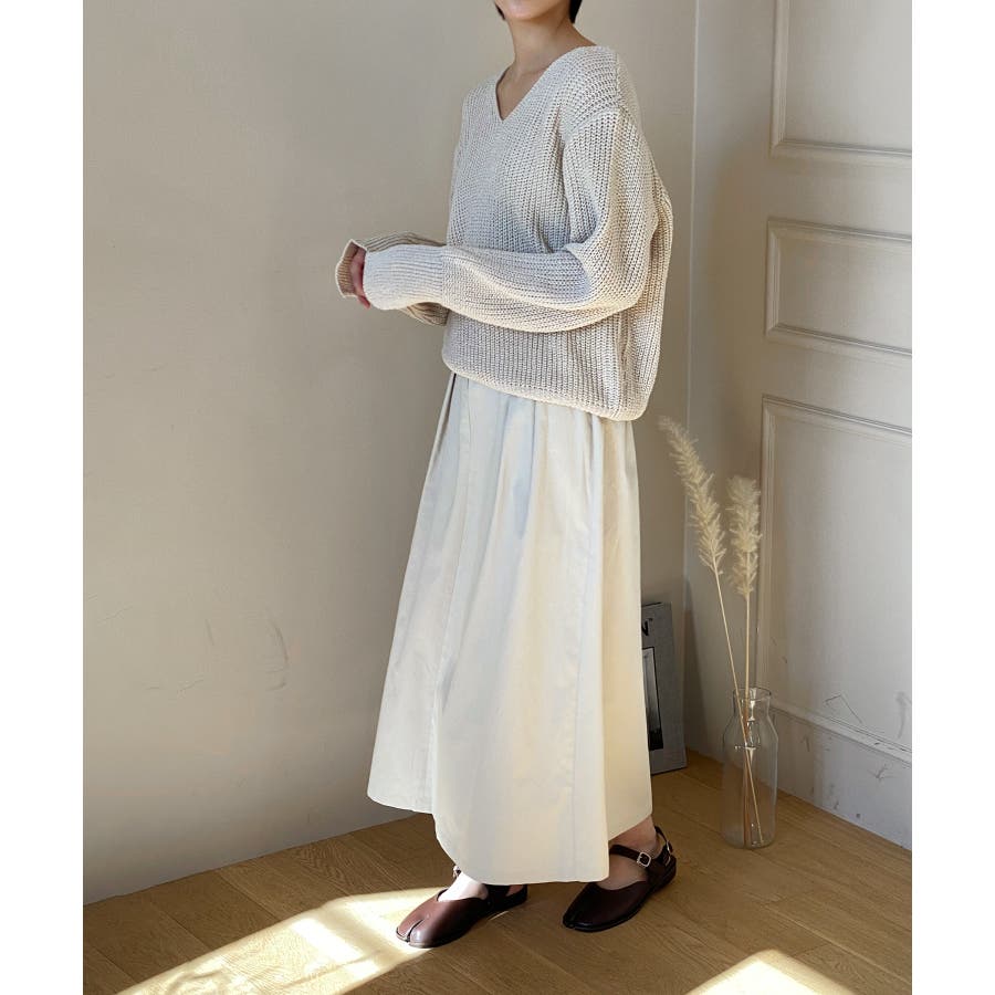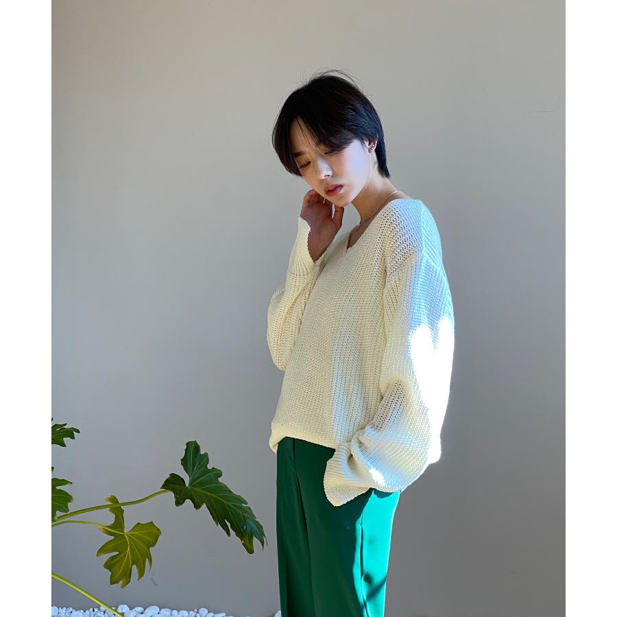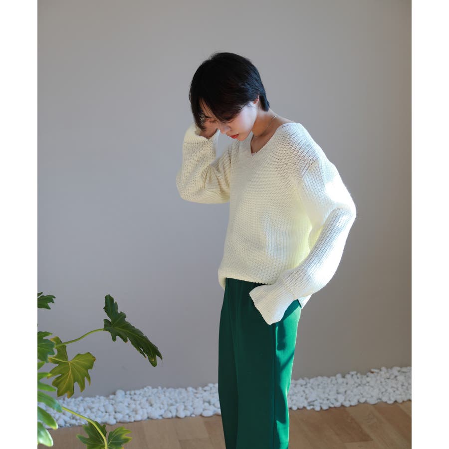 春シーズンのデイリーニットにおすすめなVラインオーバーニットを紹介します。