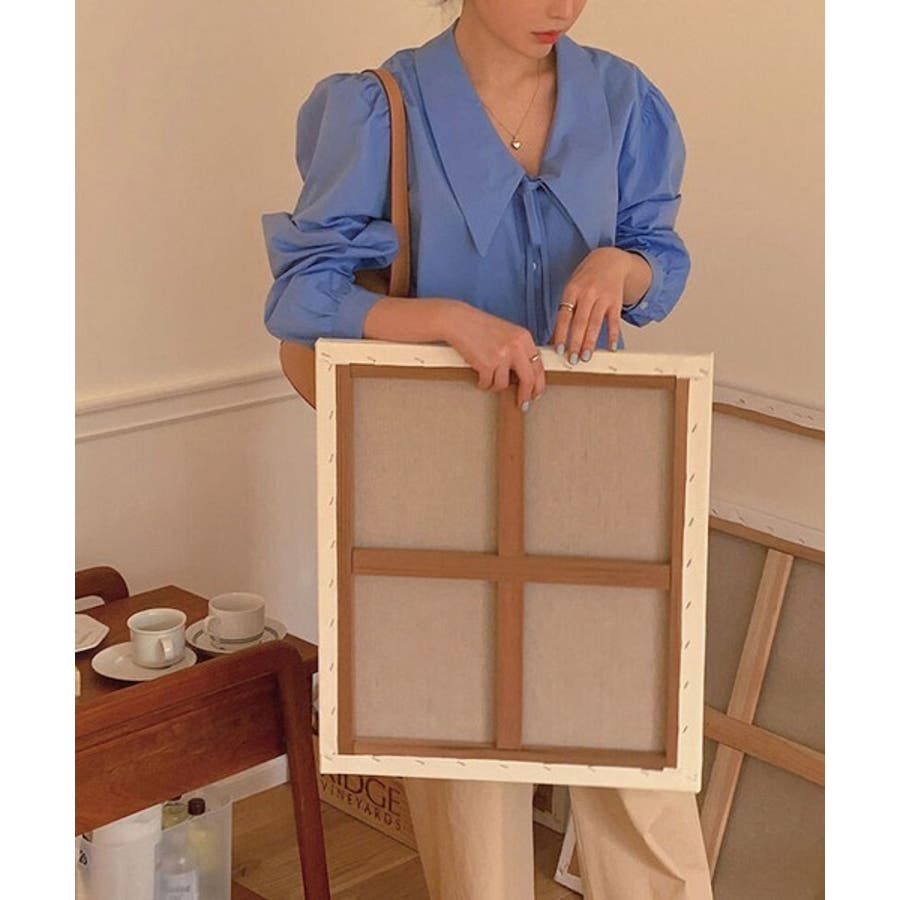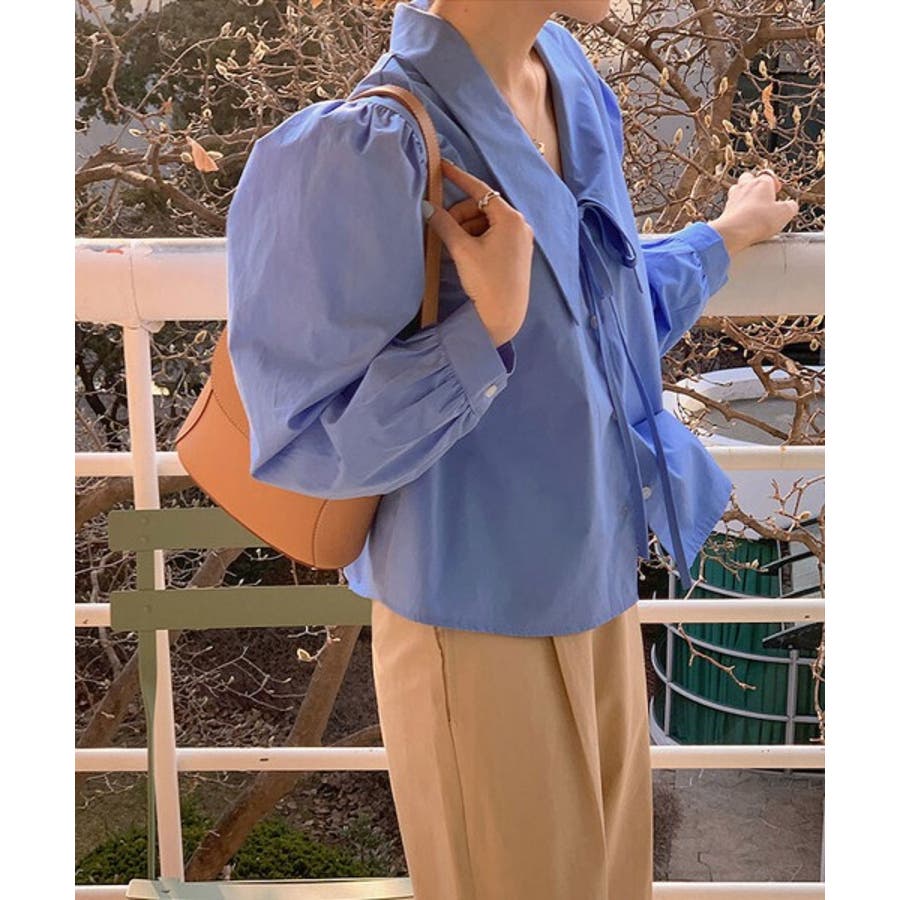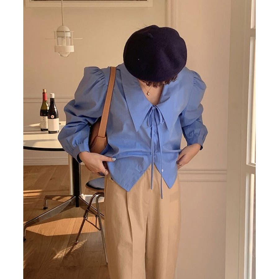 ビッグカラースプリングパフブラウス