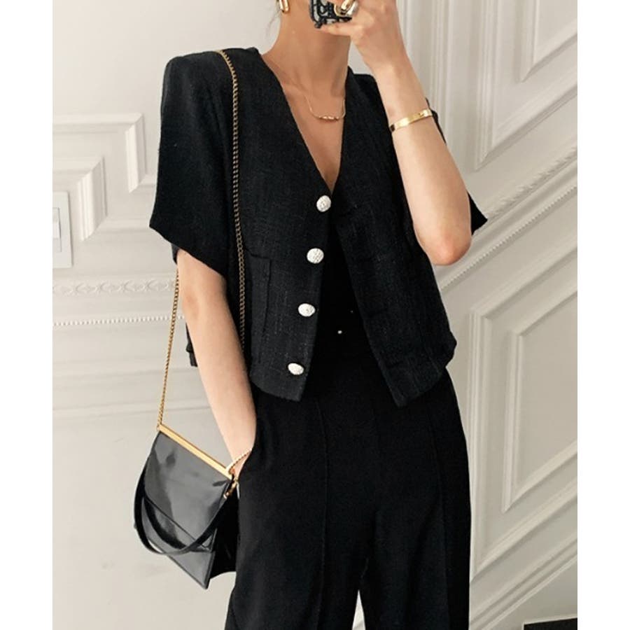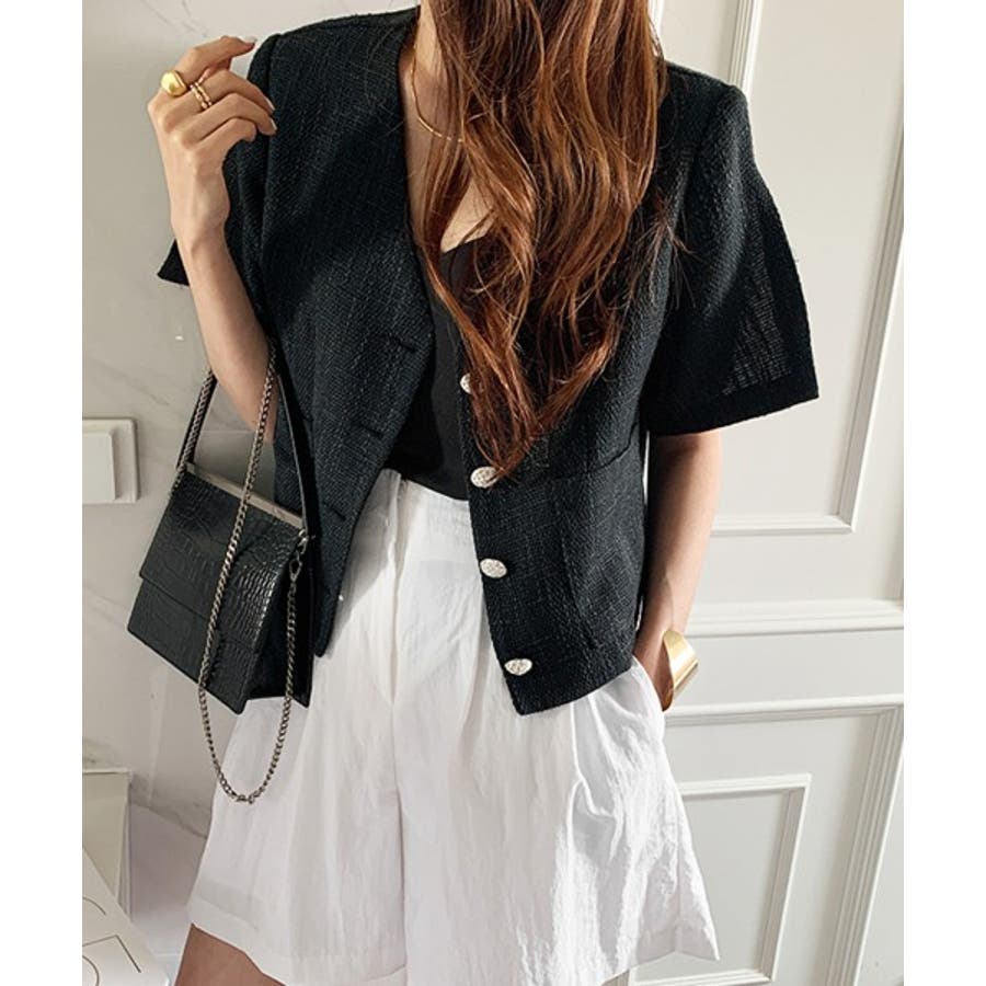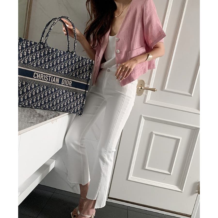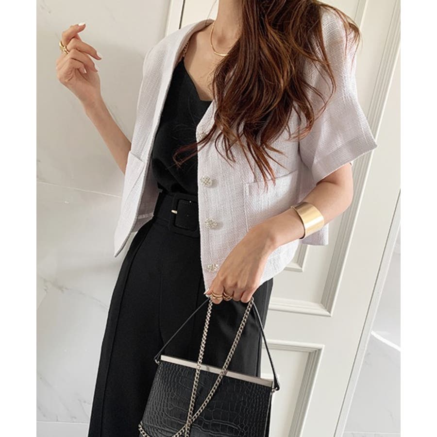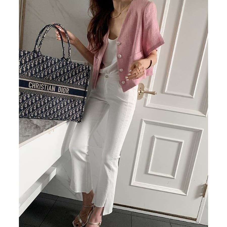 夏に涼しく上品に着用できるツイードジャケットを紹介します。