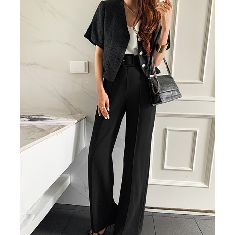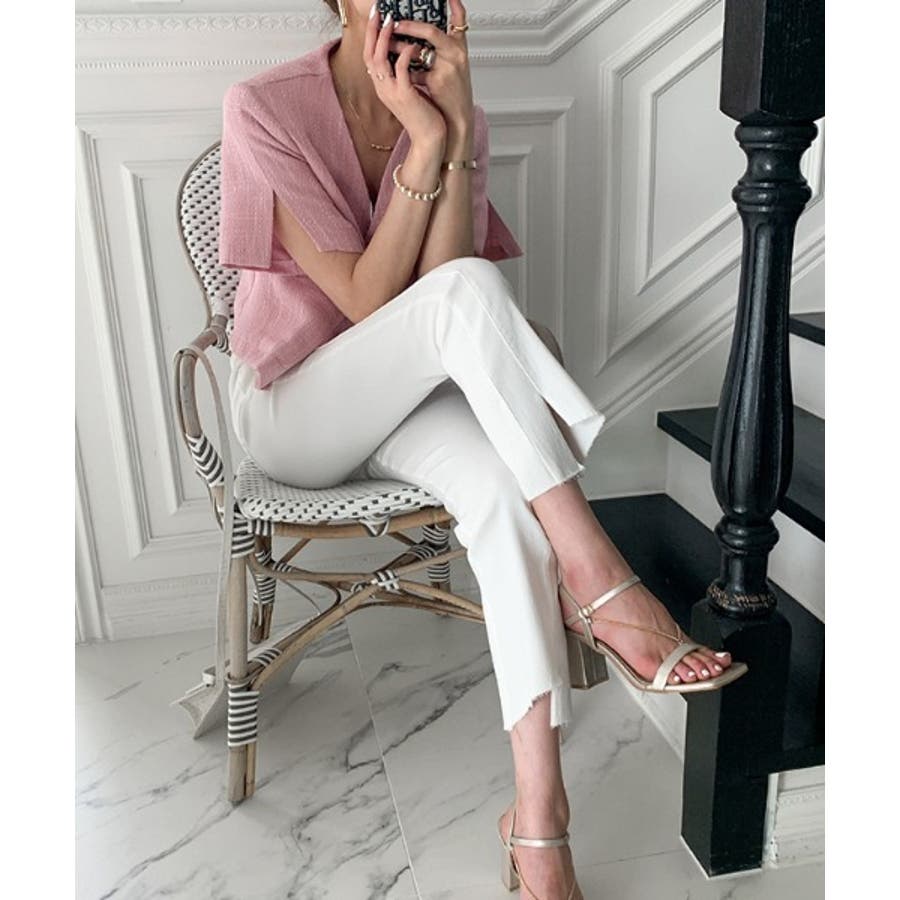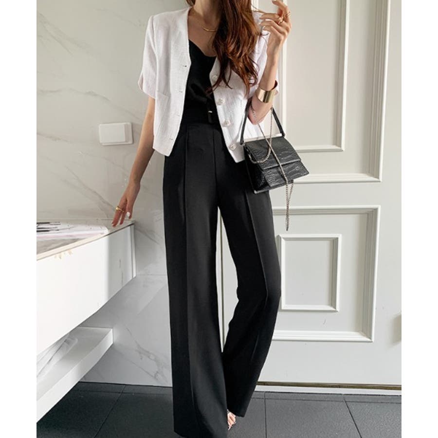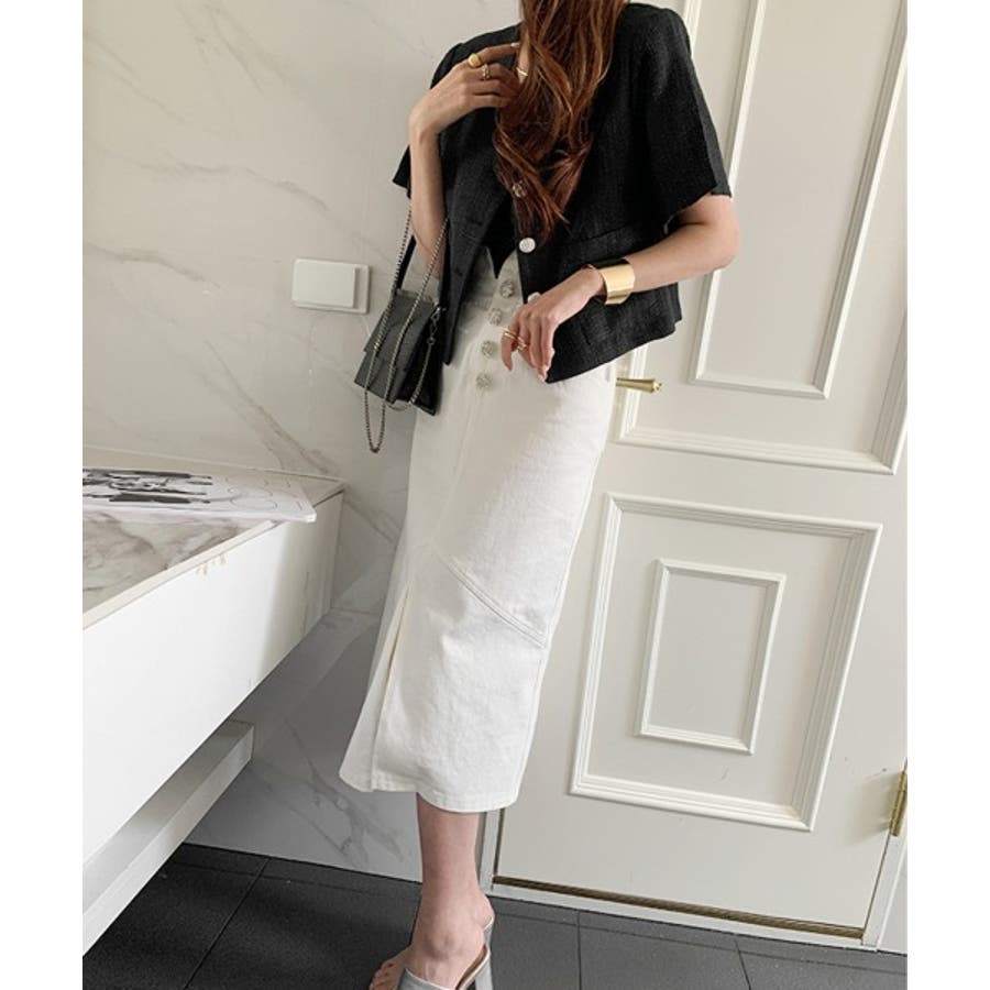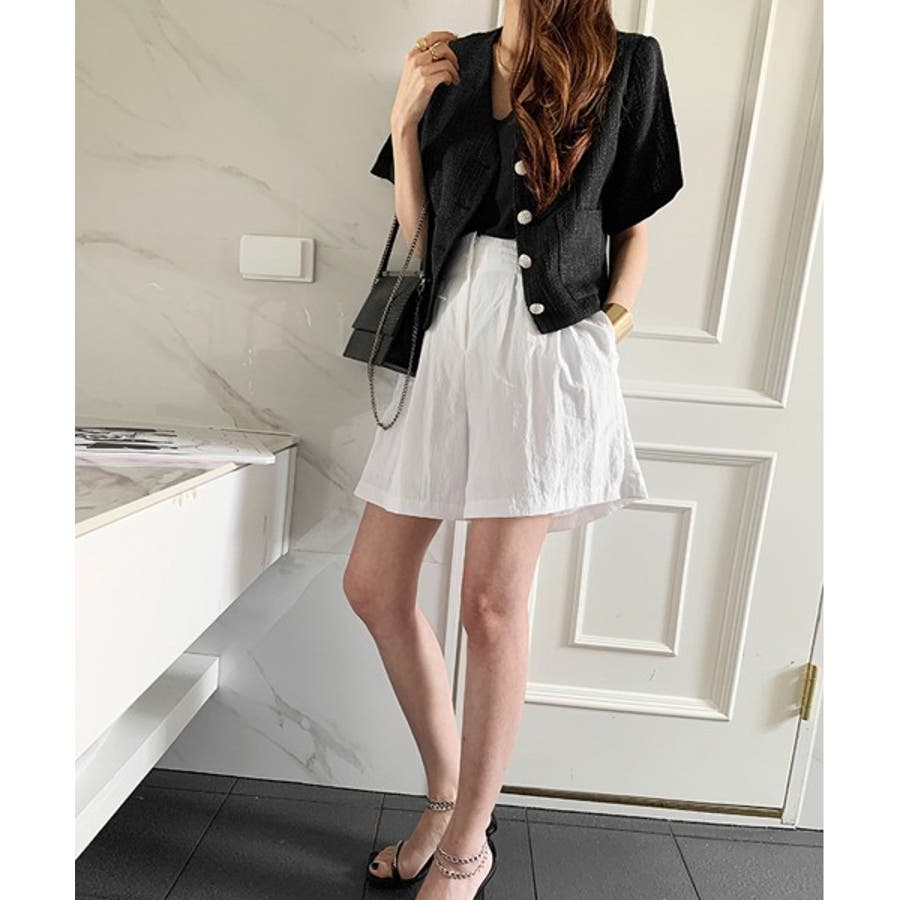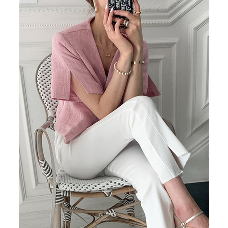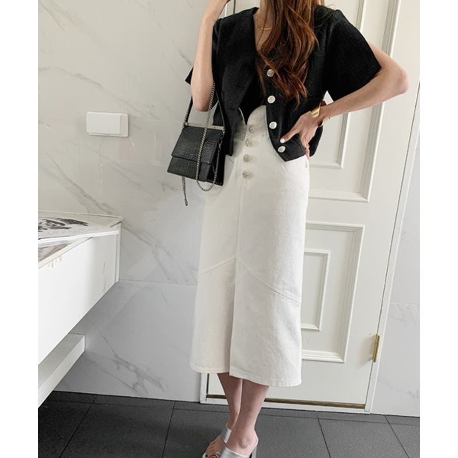 ショート丈なので、ハイウエストパンツやスカートと合わせると脚長効果抜群!
