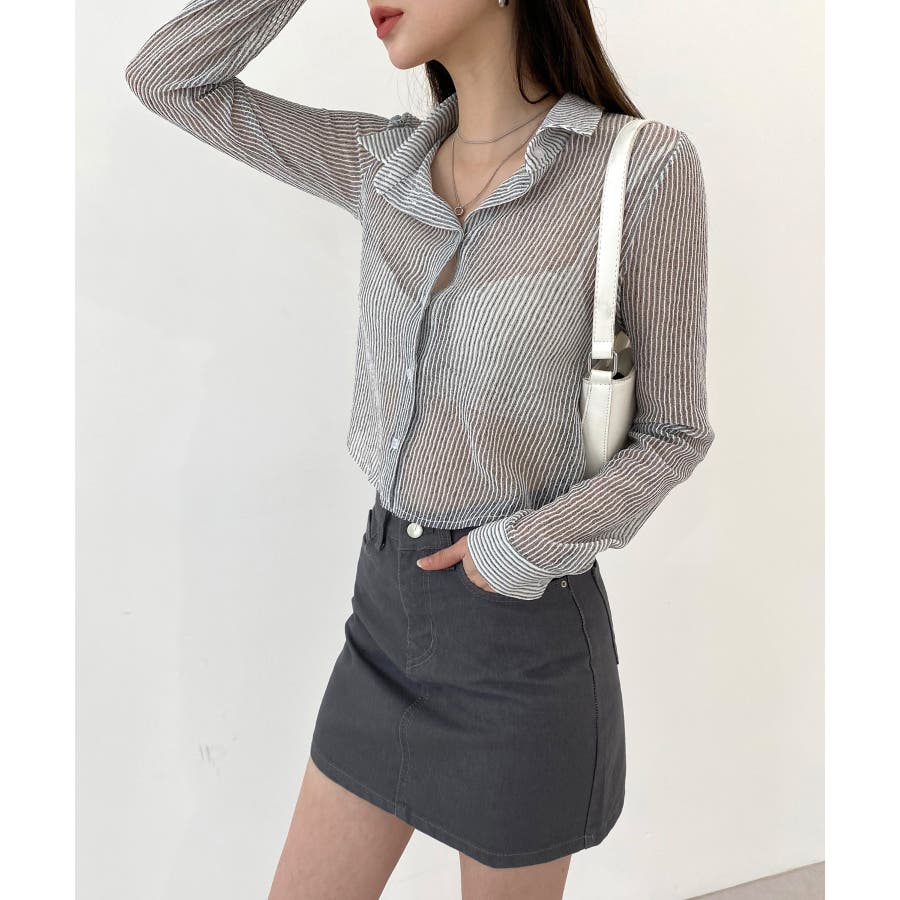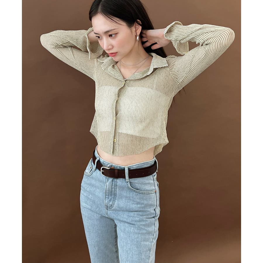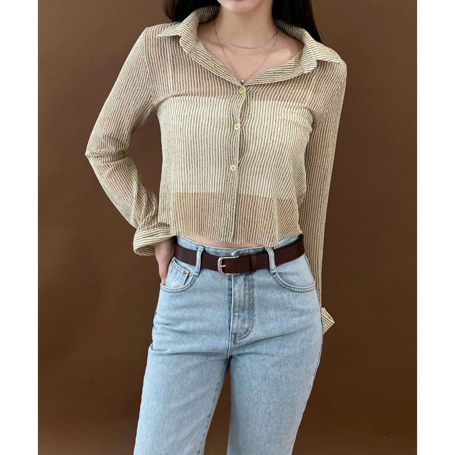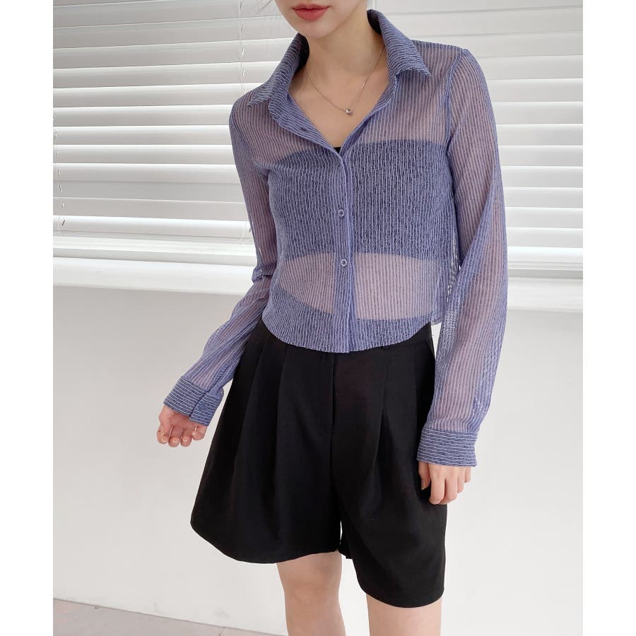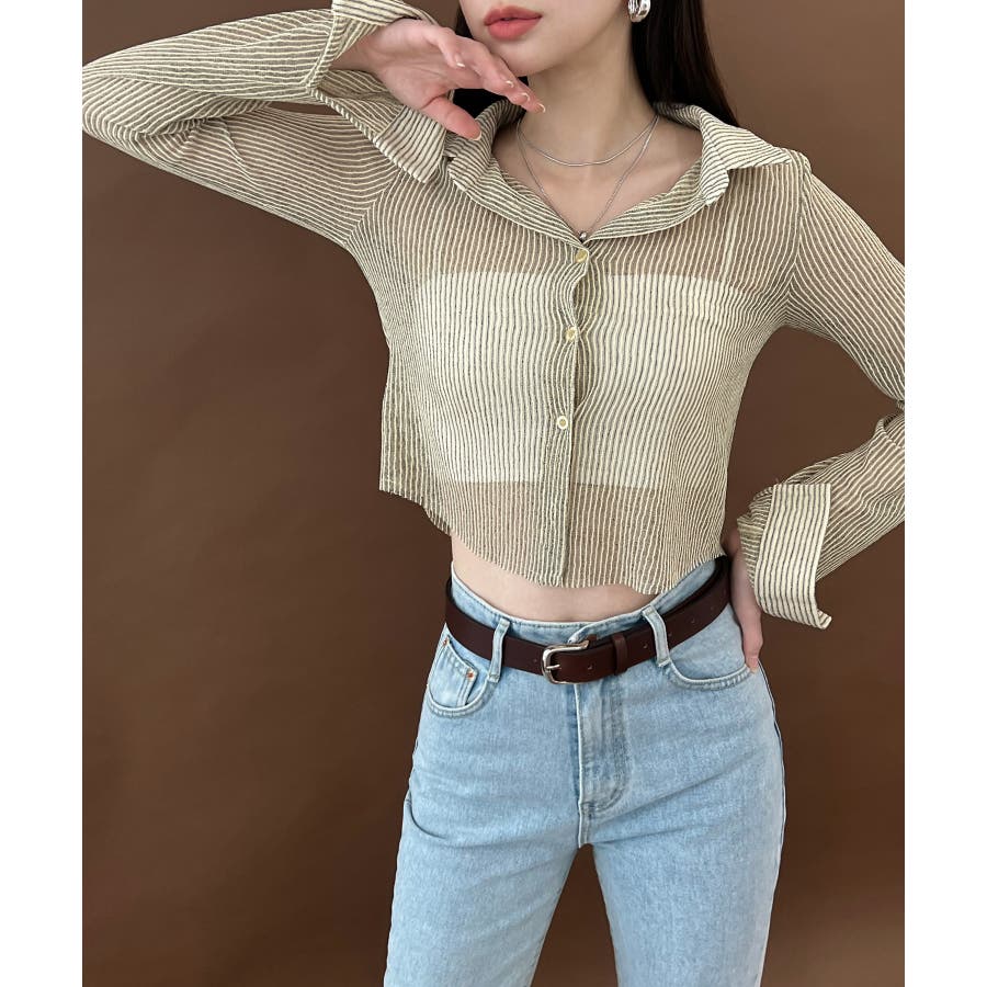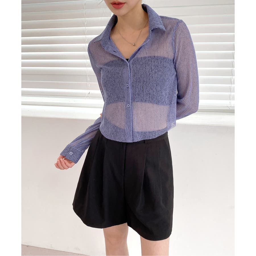 さらさらで柔らかい素材のシースルークロップドシャツを紹介します。