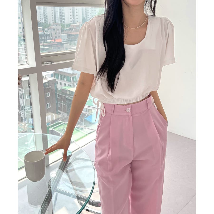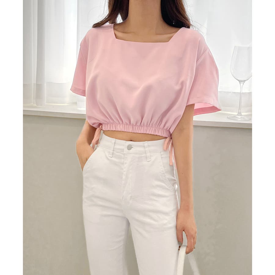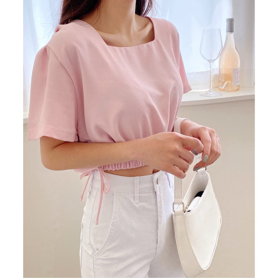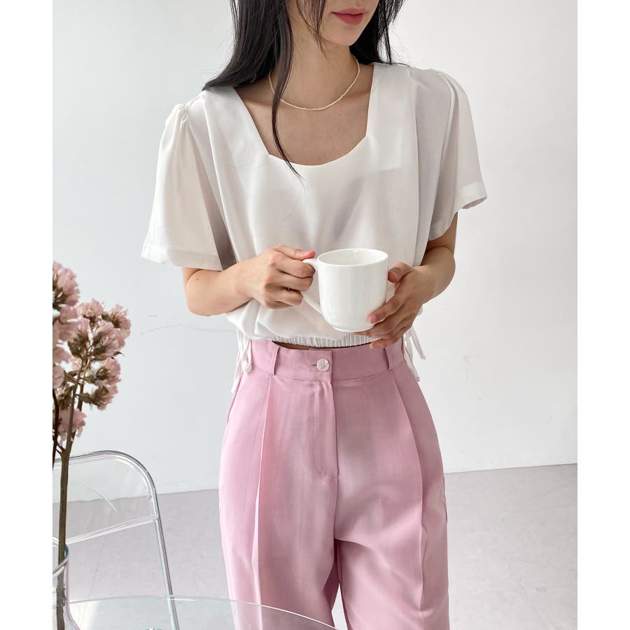 両サイドリボンの仕様がラブリーですっきりとしたスクエアネックデザインが