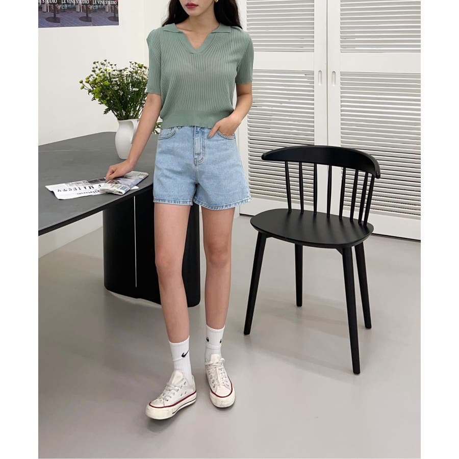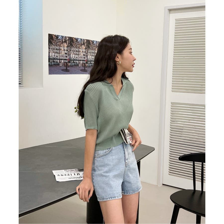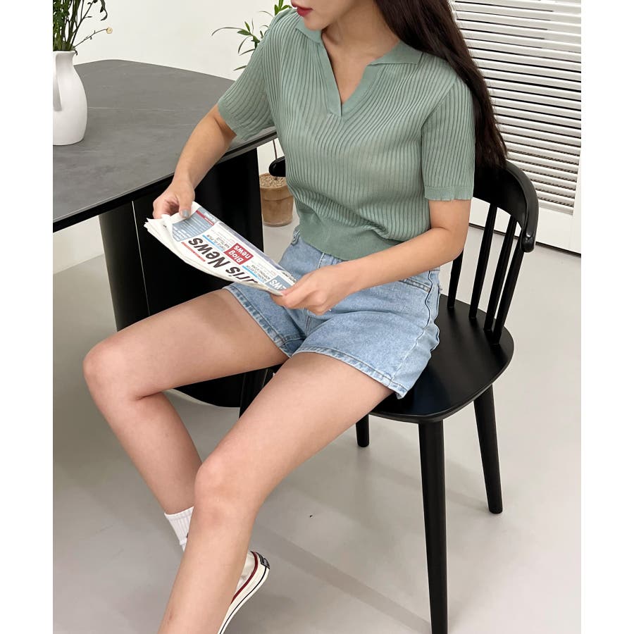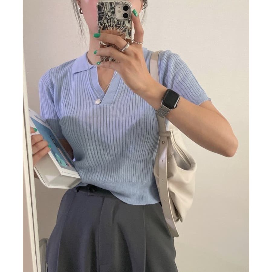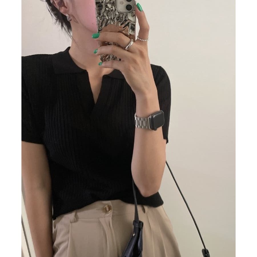 適度な深さのVネックがカジュアルながらも女性らしい雰囲気を