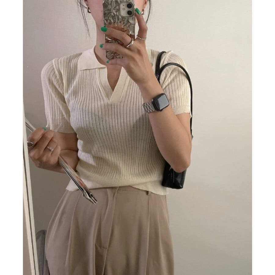デイリーで活用しやすいVネックカラーリブニットを紹介します。