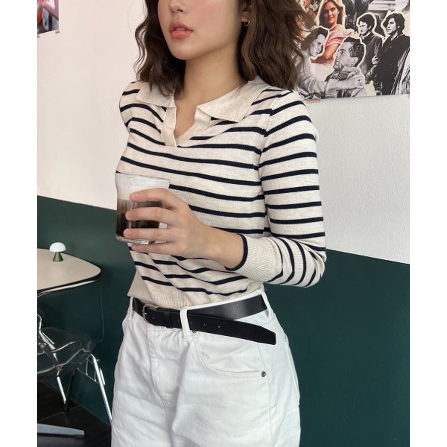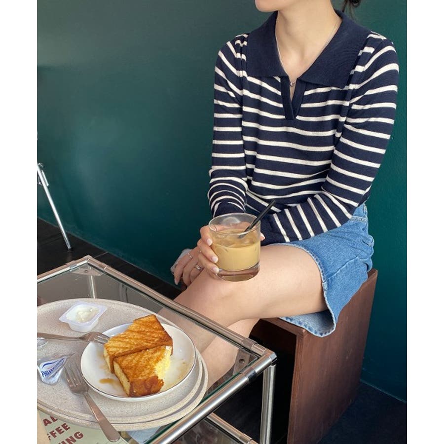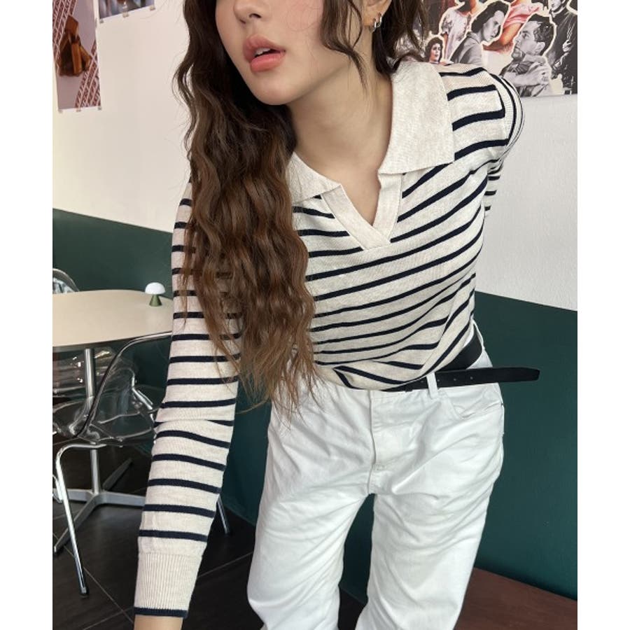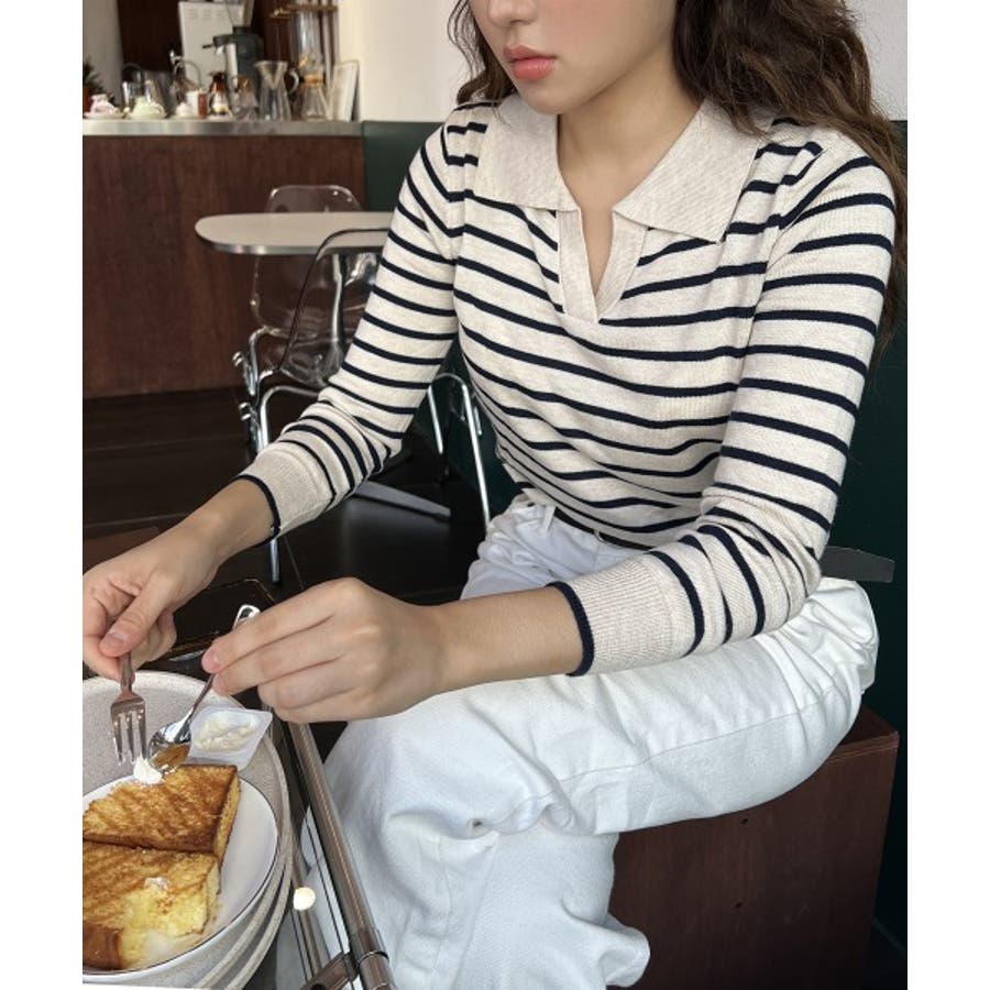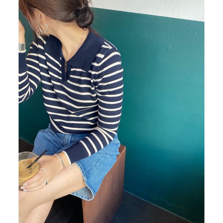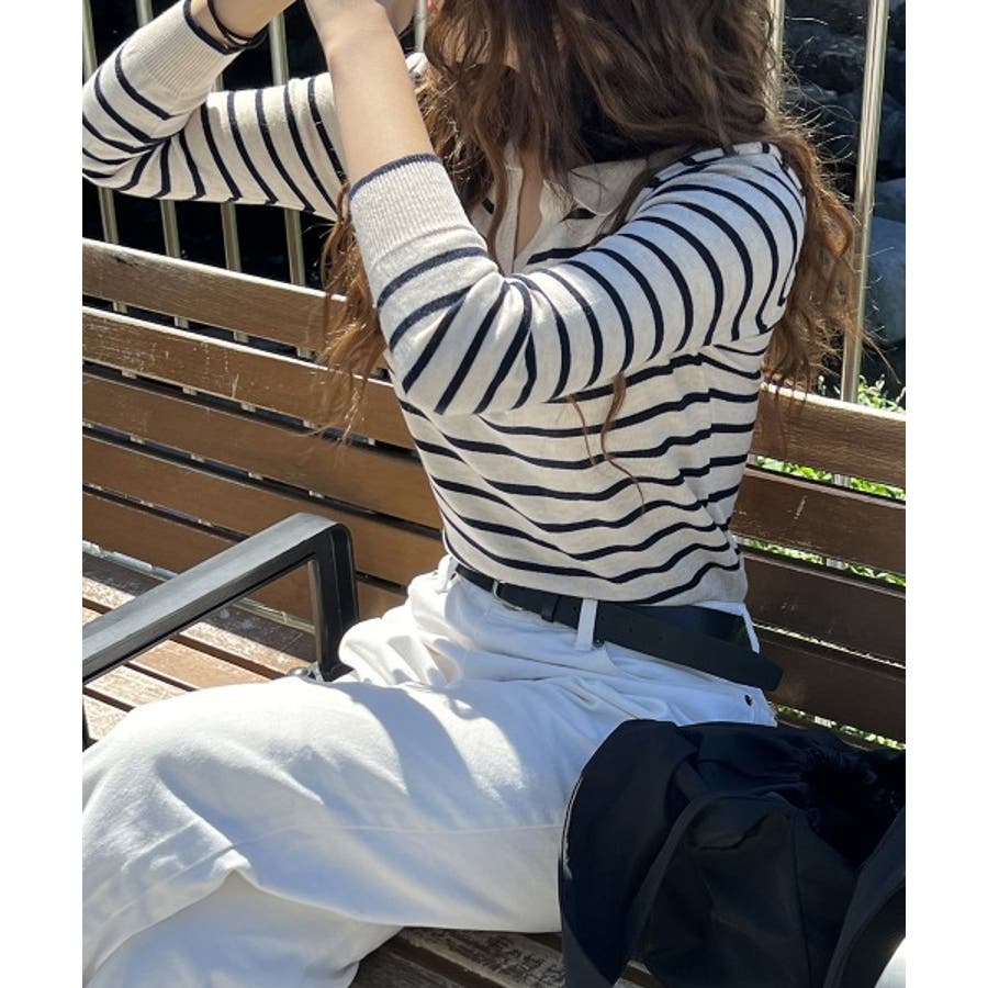 ストライプパターンとスリット仕様の襟デザインがお洒落な
