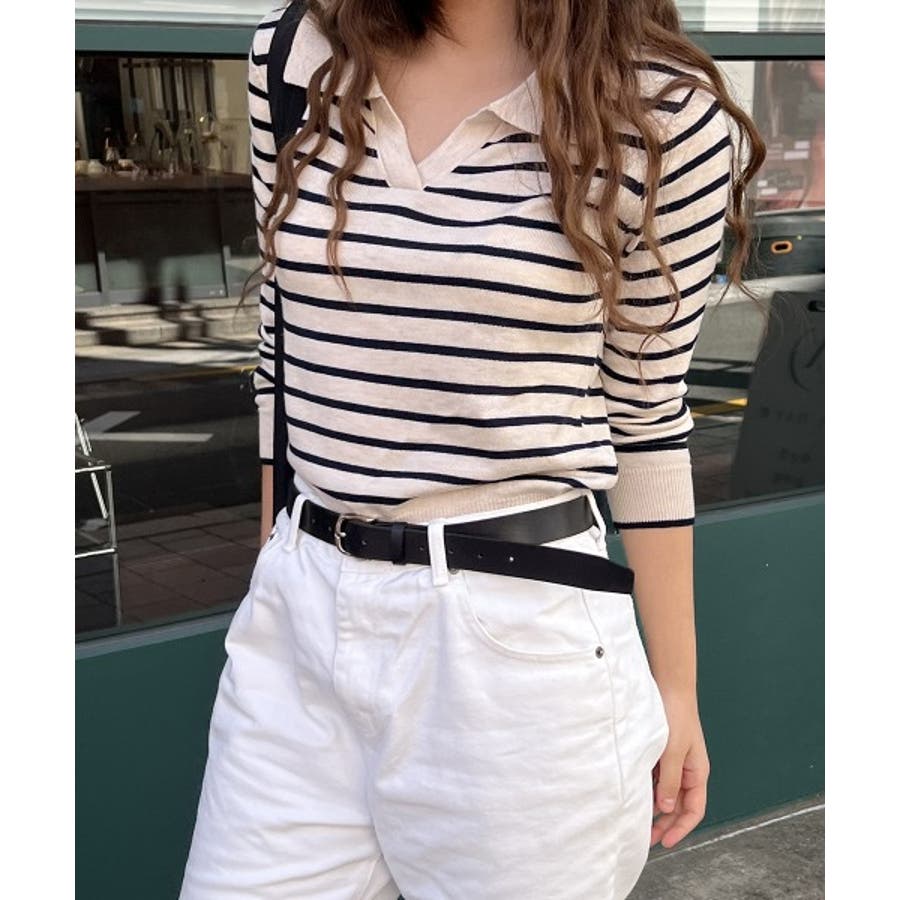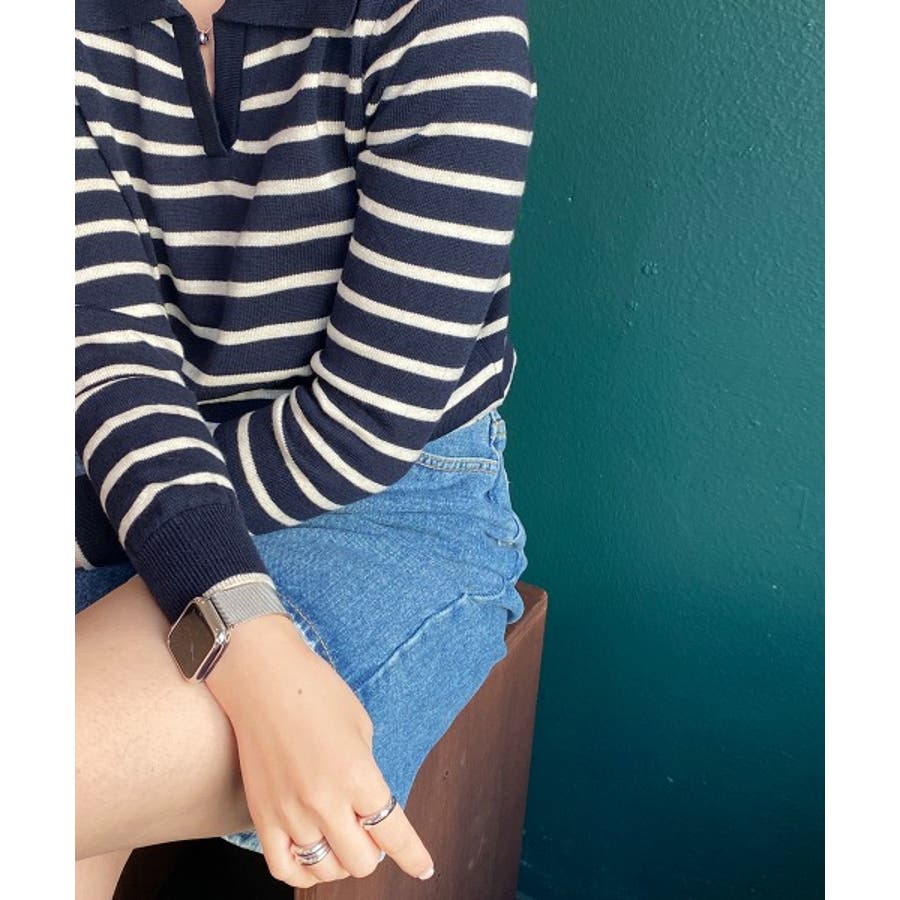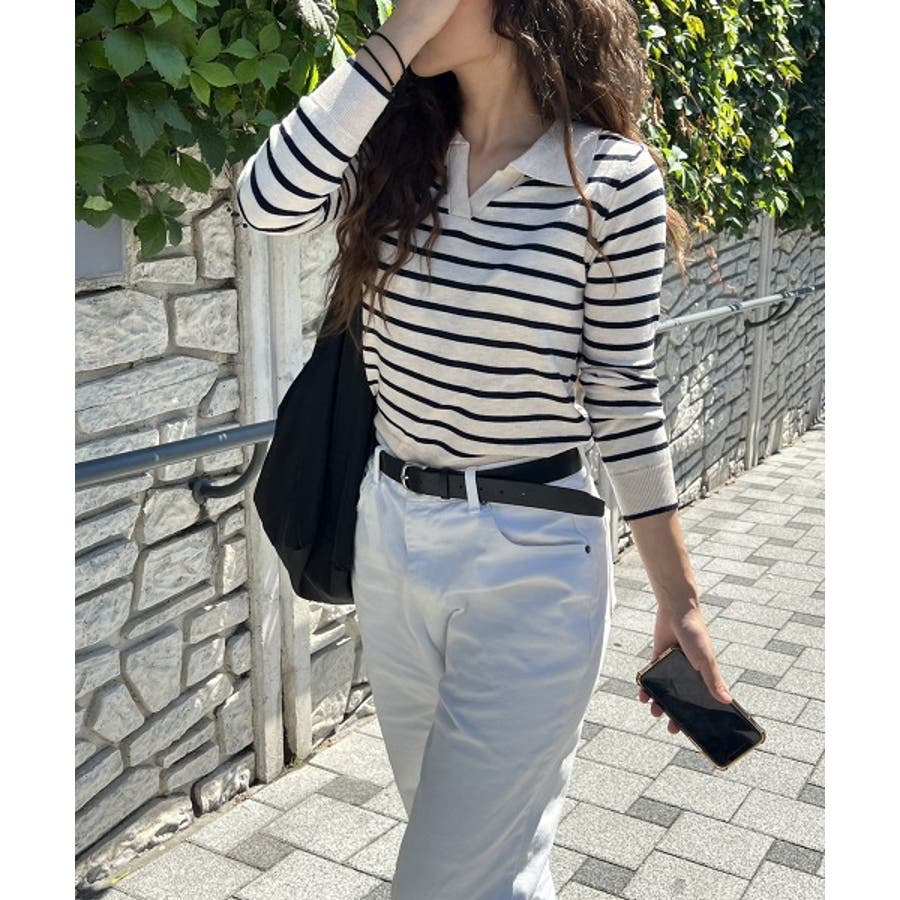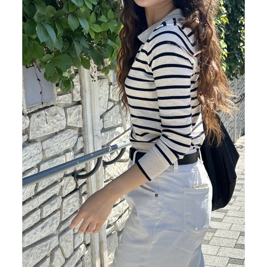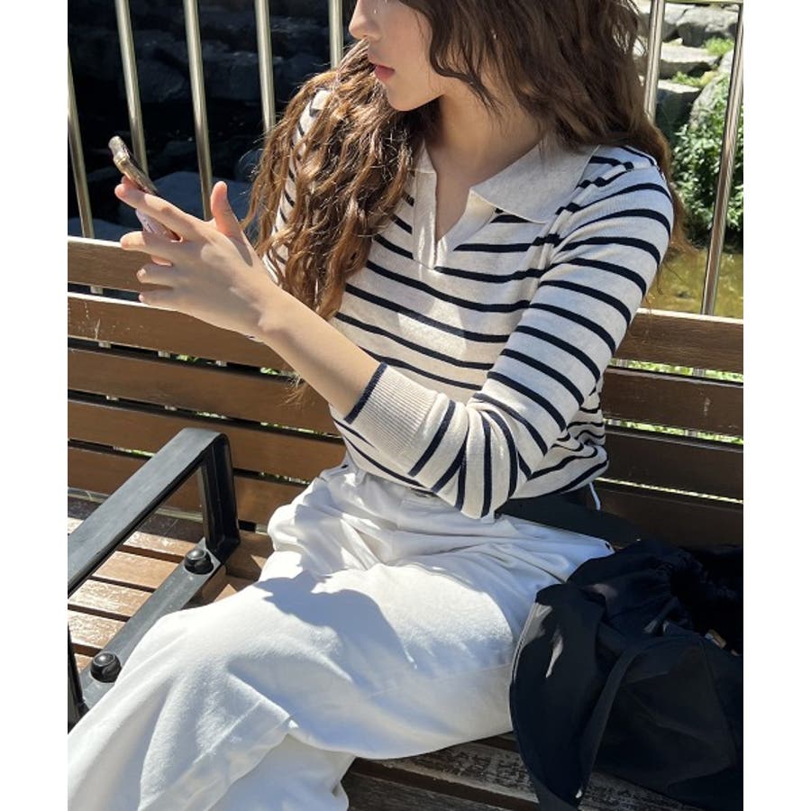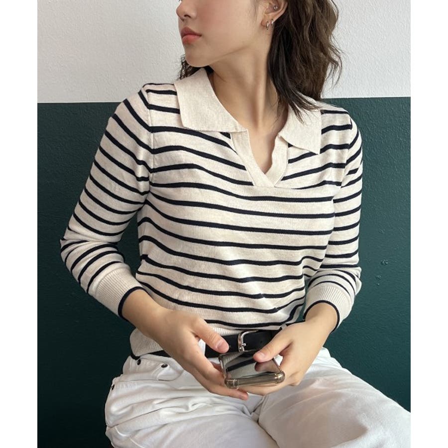 ストライプパターンとスリット仕様の襟デザインがお洒落な