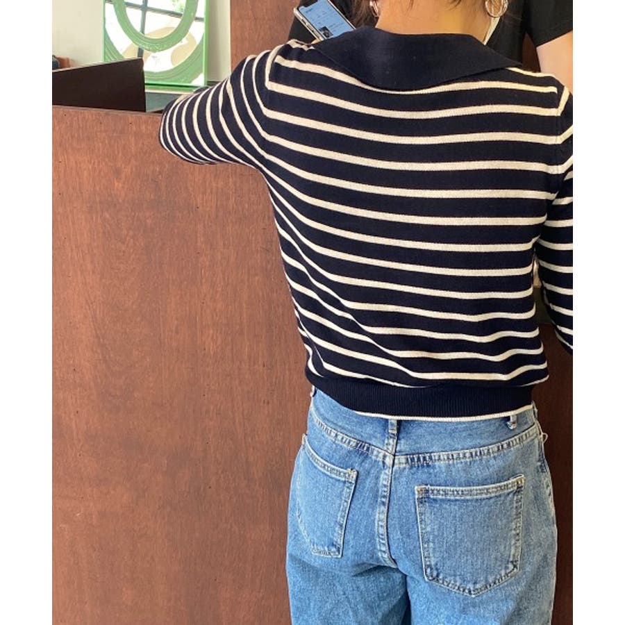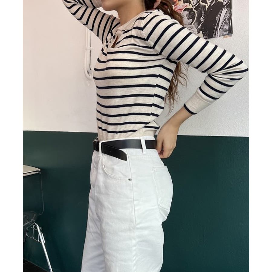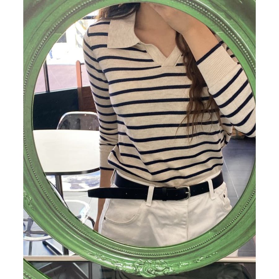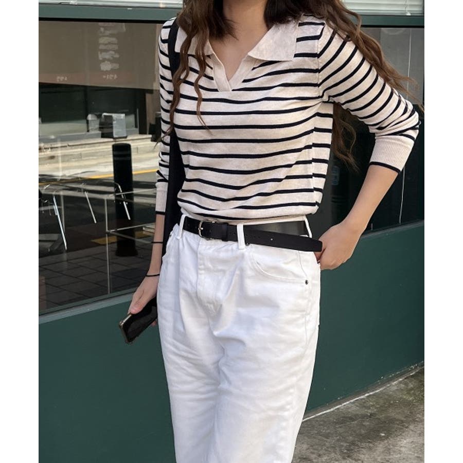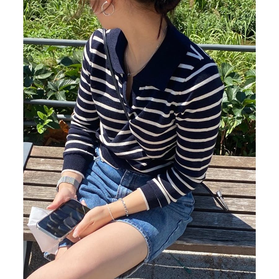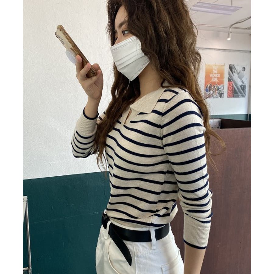 ストライプパターンとスリット仕様の襟デザインがお洒落な