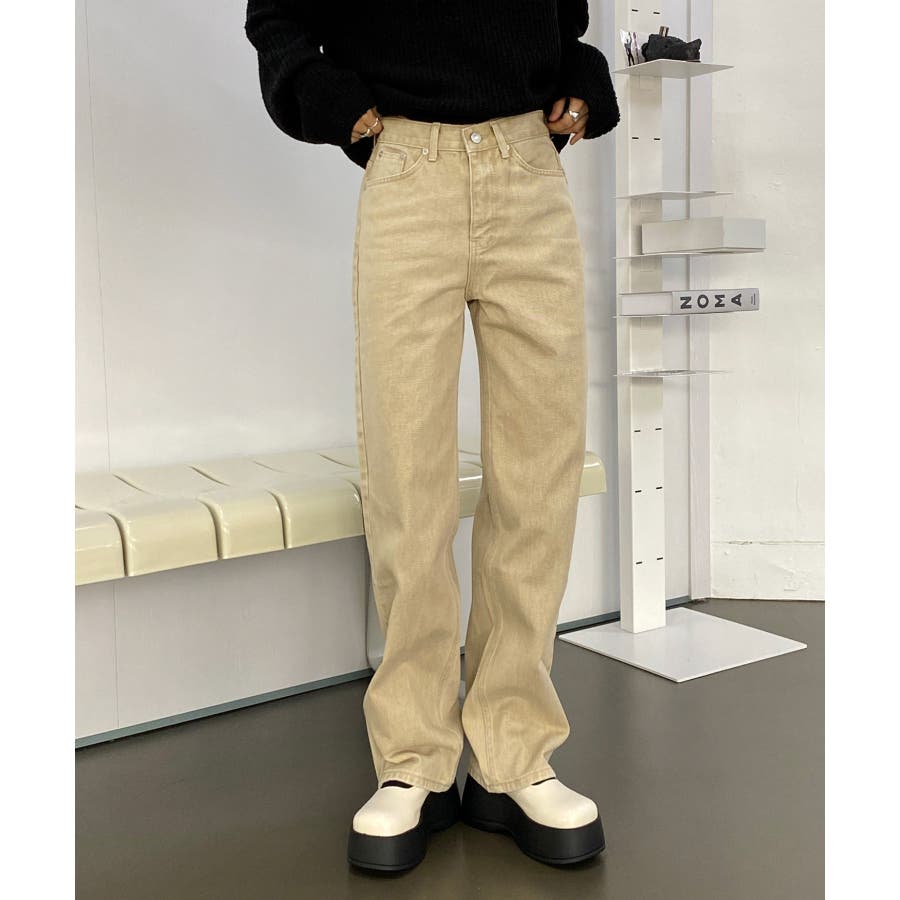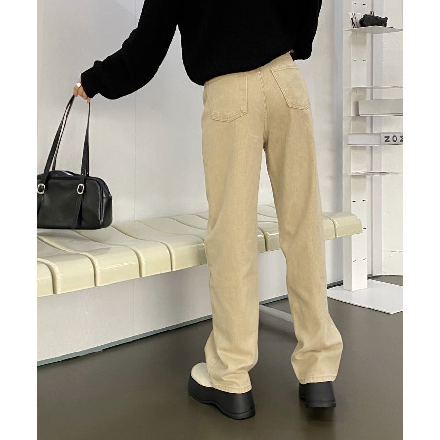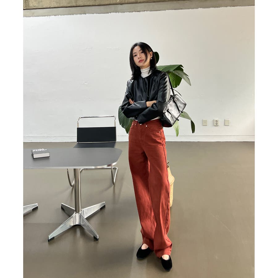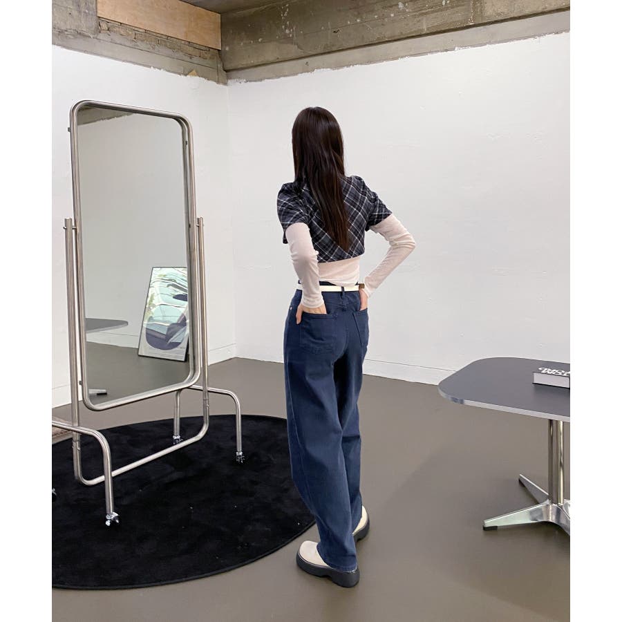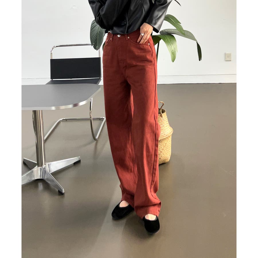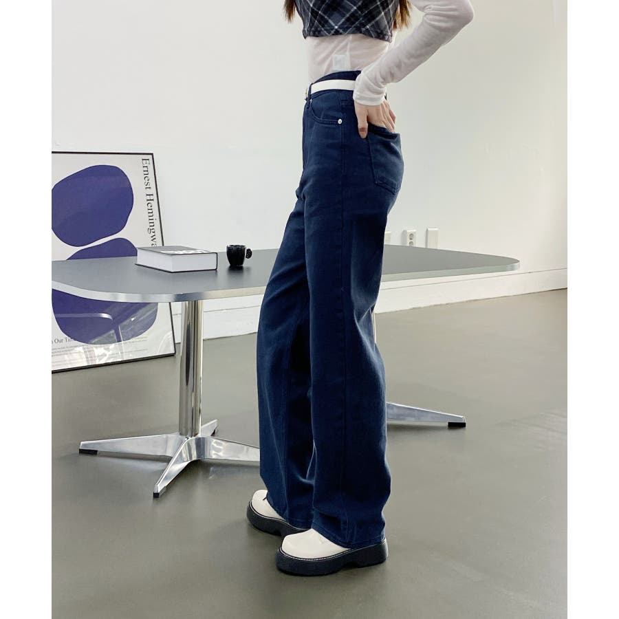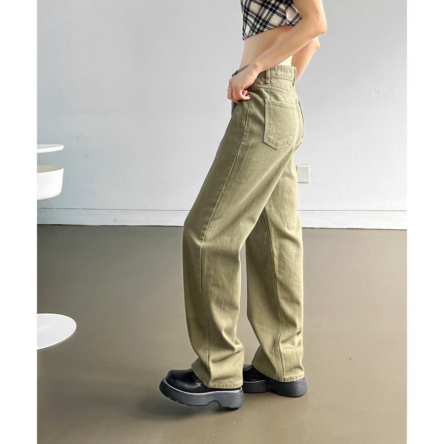 ストレートに落ちるワイドでデザインが脚のラインを綺麗に