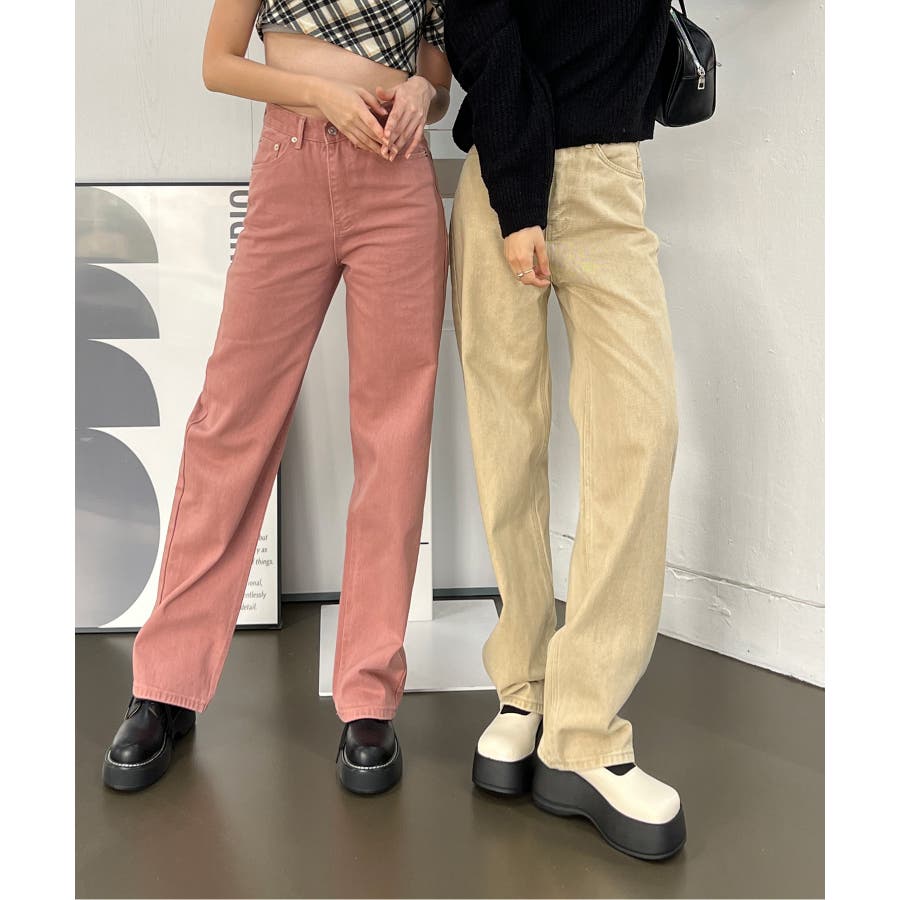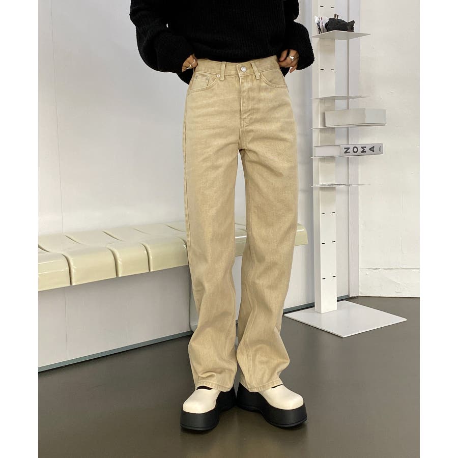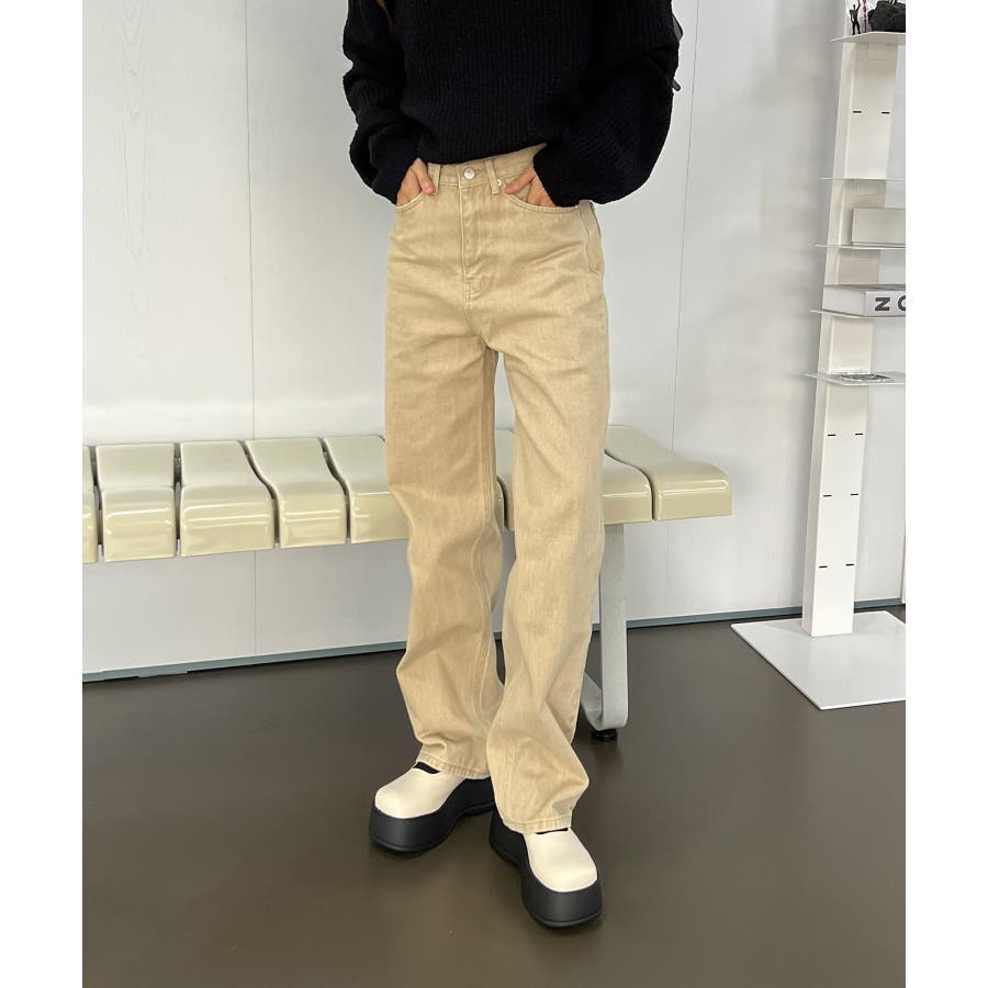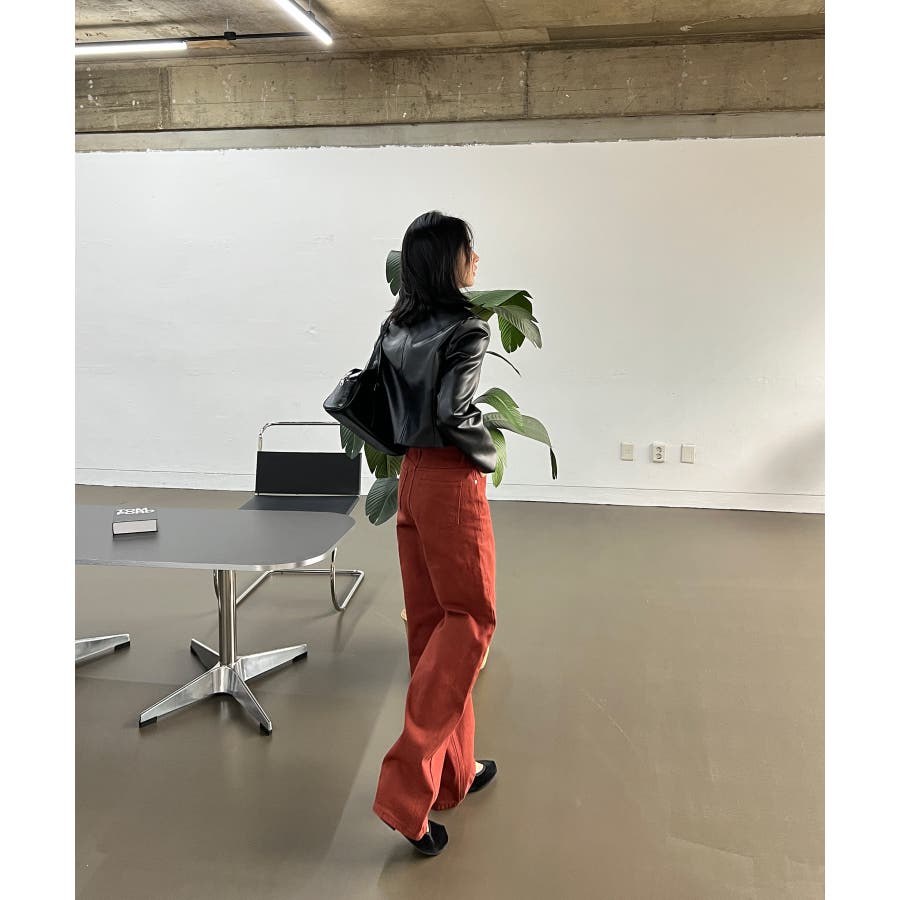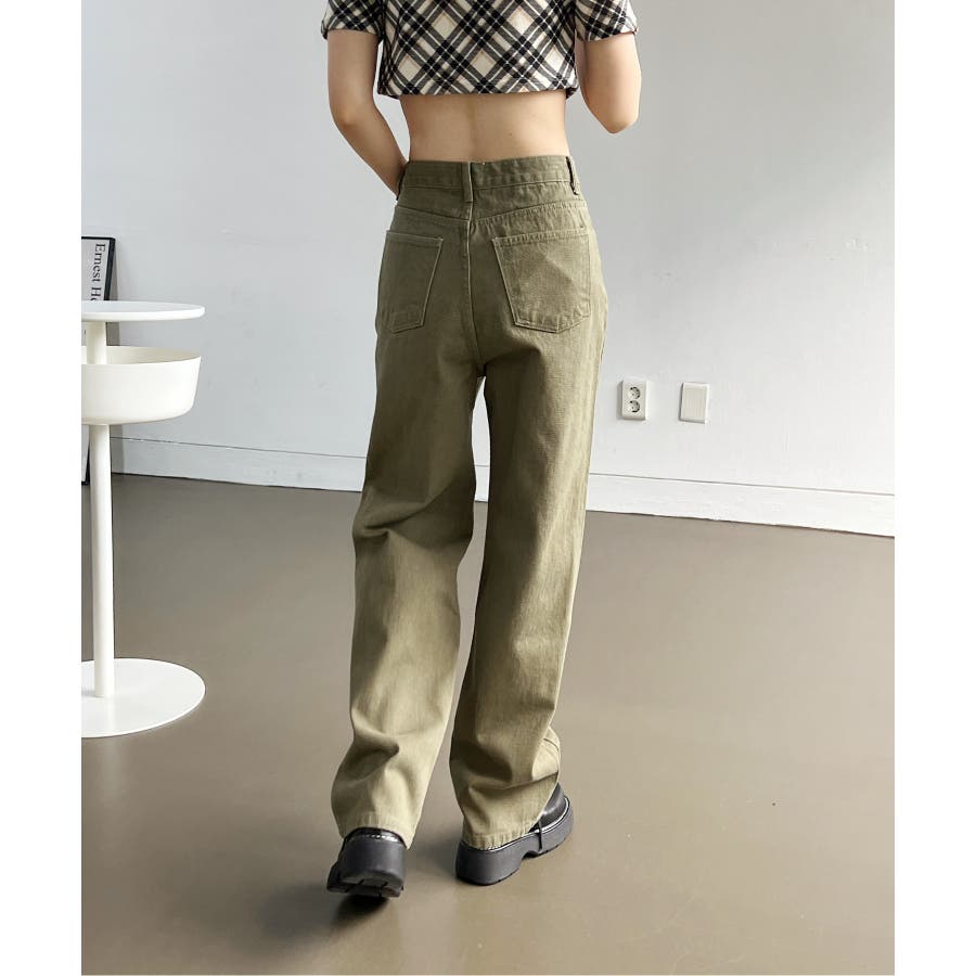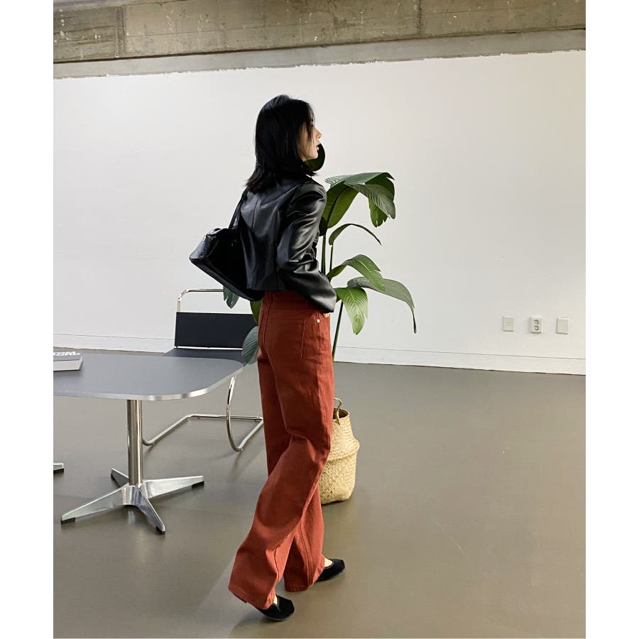 ストレートに落ちるワイドでデザインが脚のラインを綺麗に