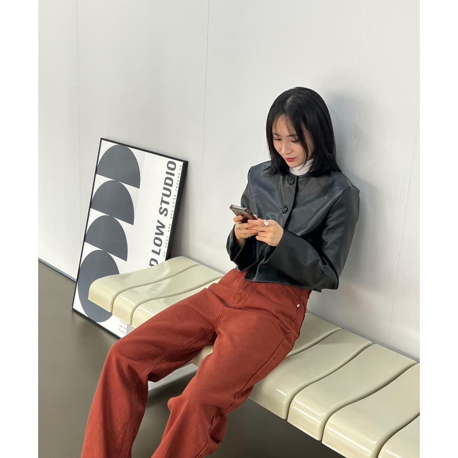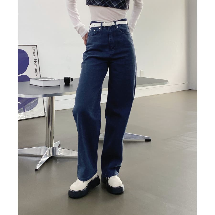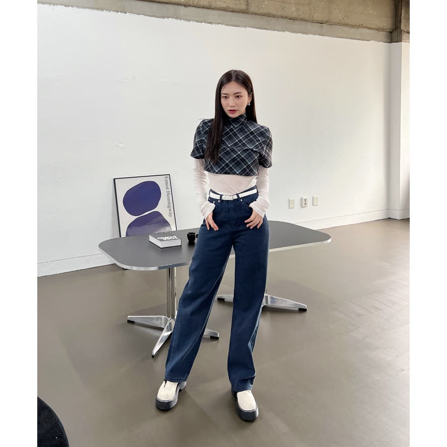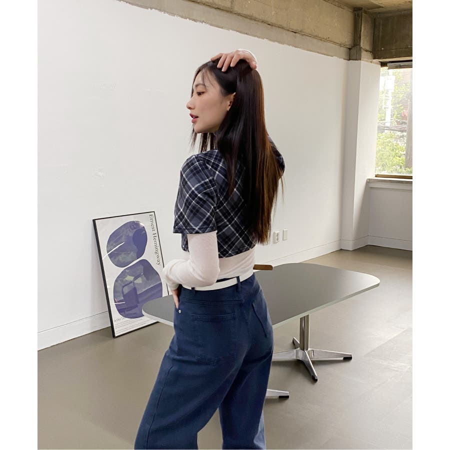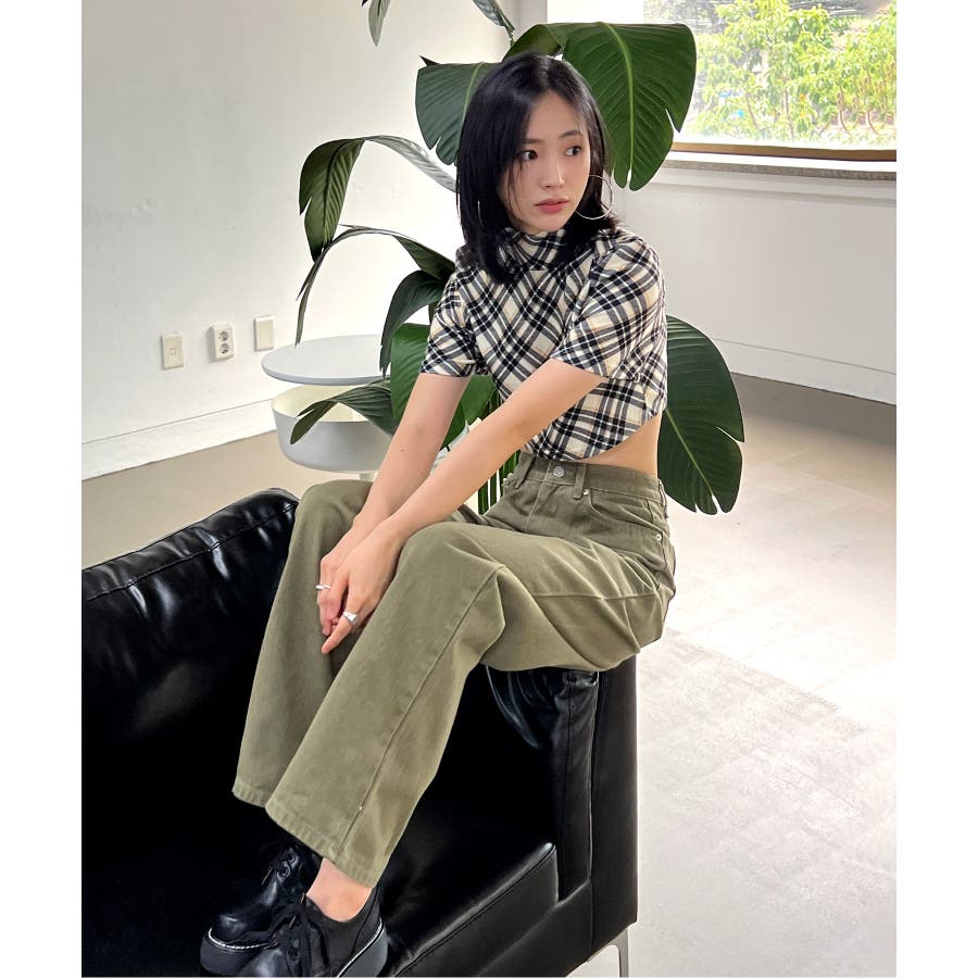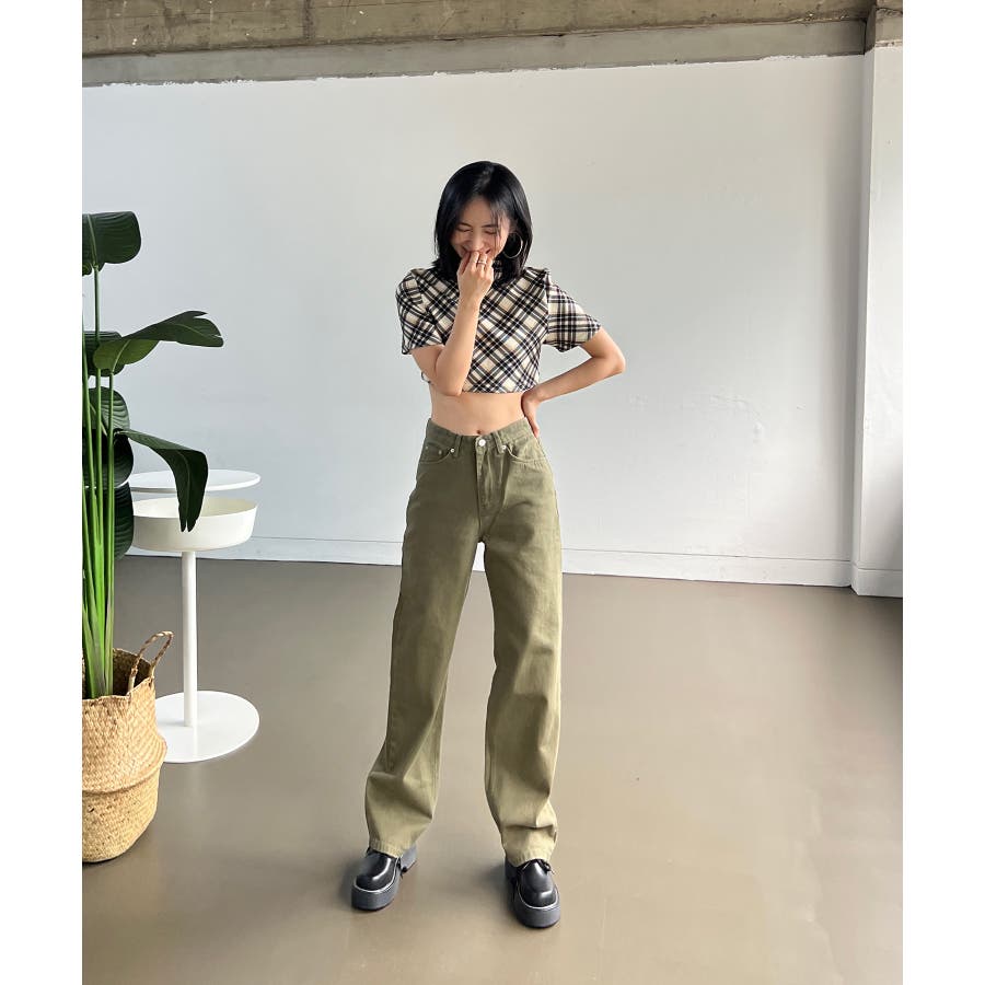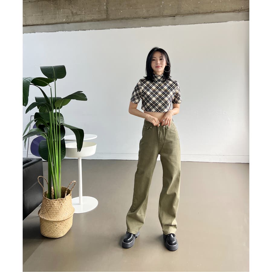 ストレートに落ちるワイドでデザインが脚のラインを綺麗に