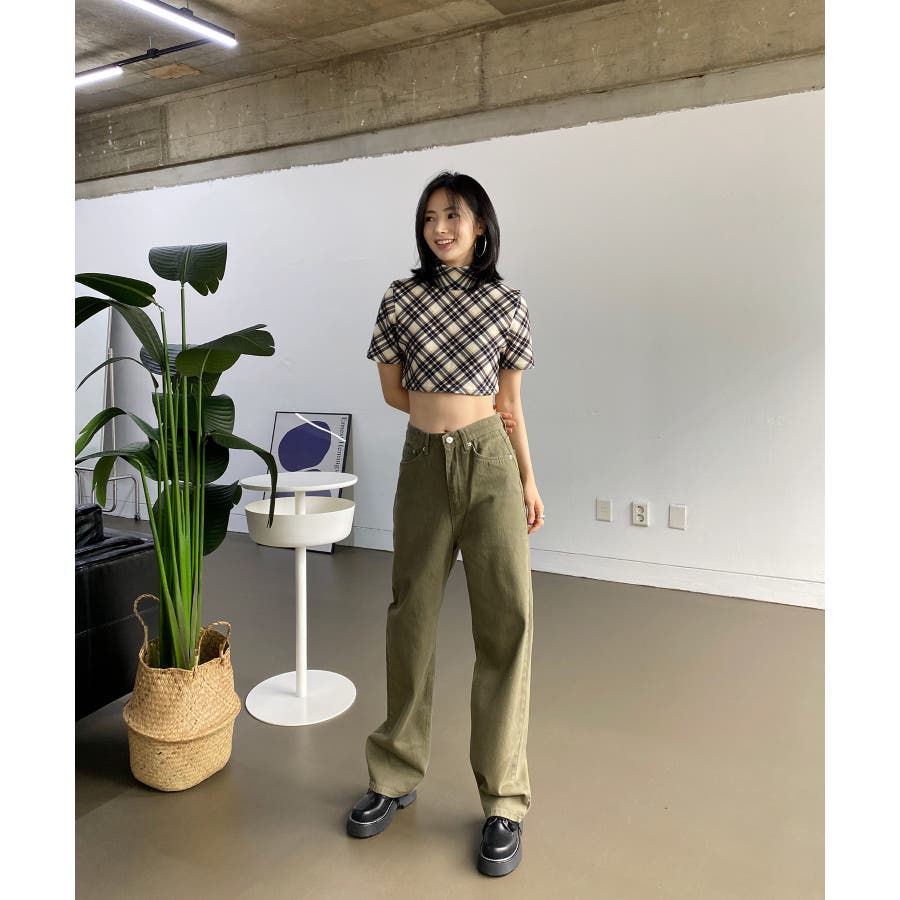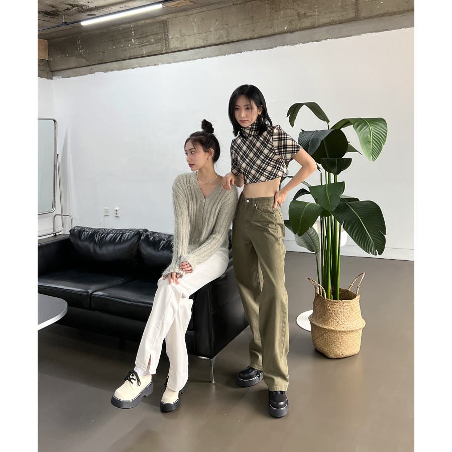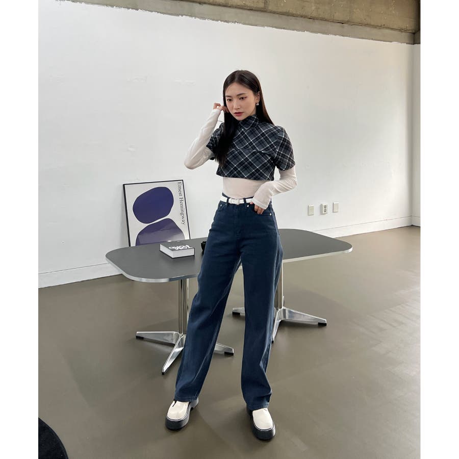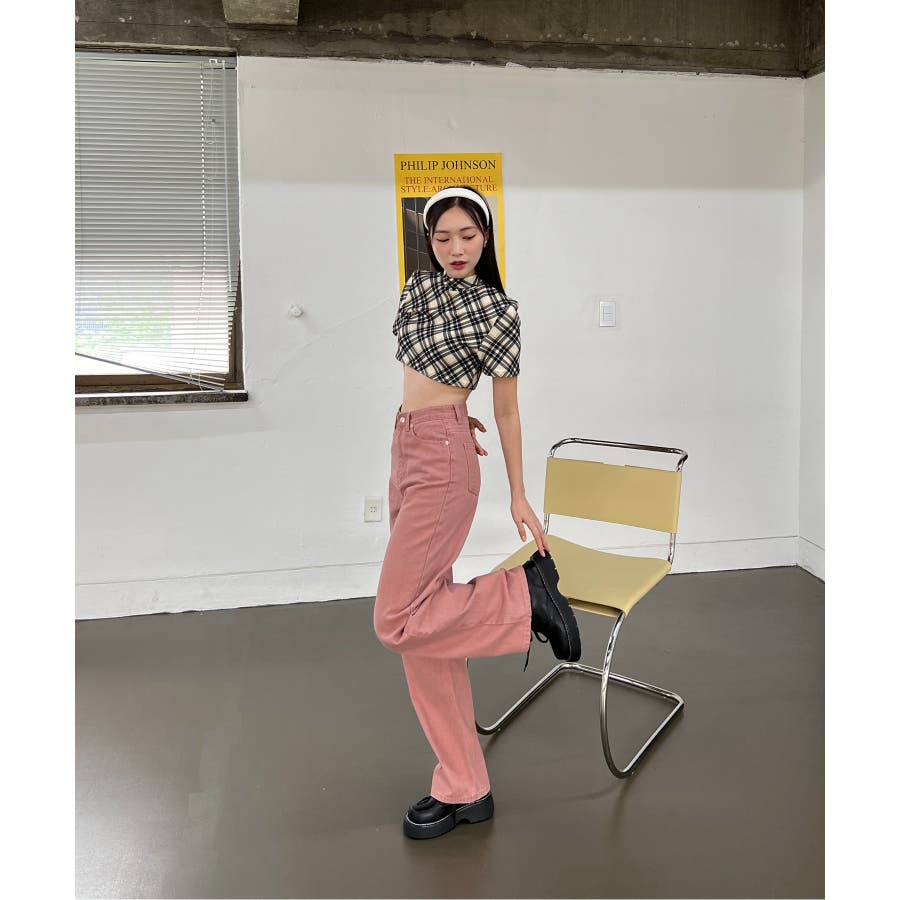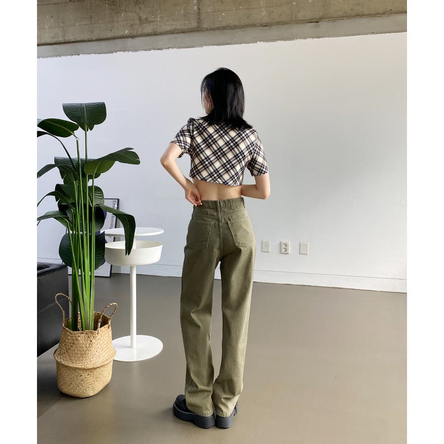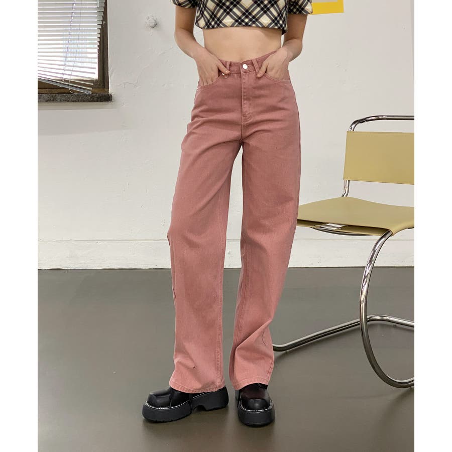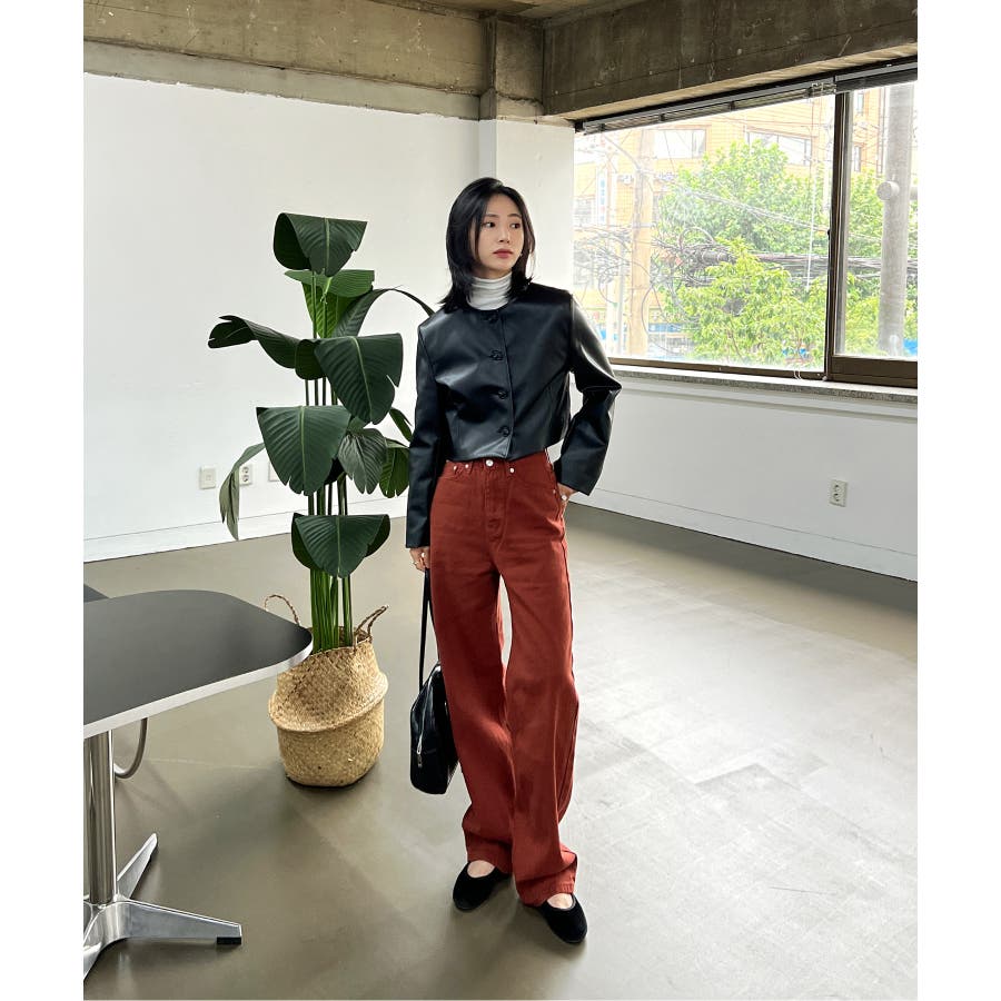 ストレートに落ちるワイドでデザインが脚のラインを綺麗に