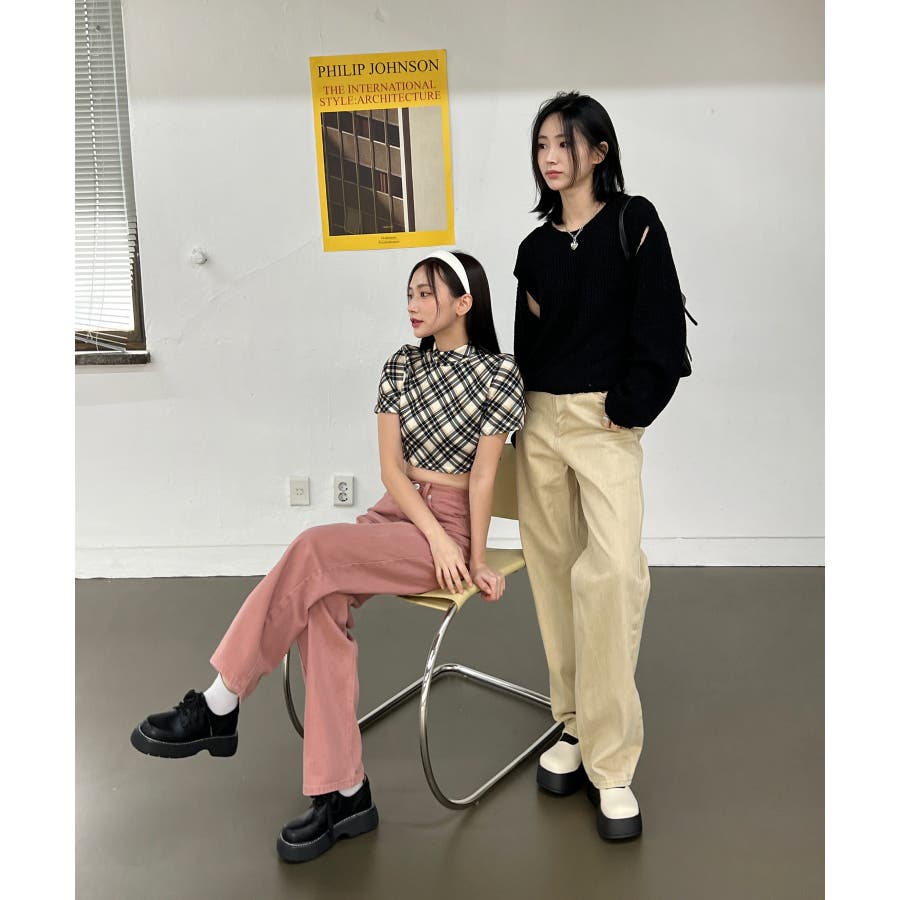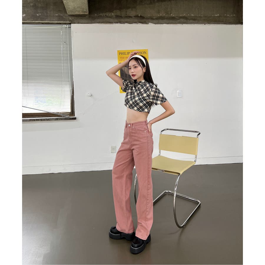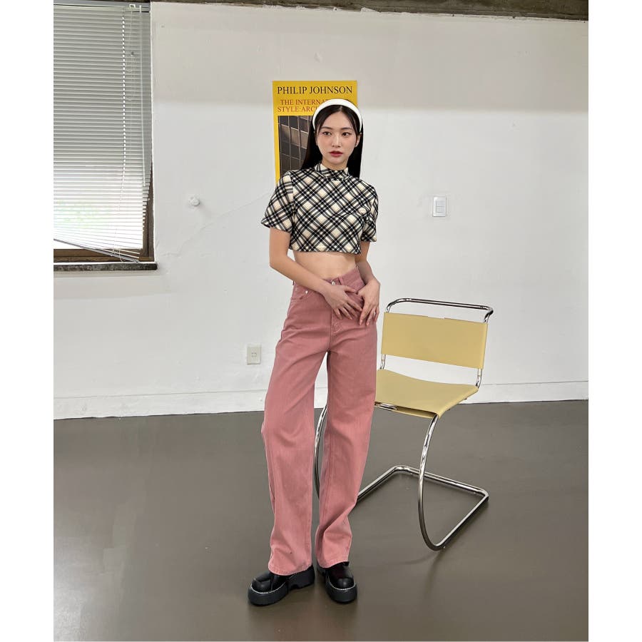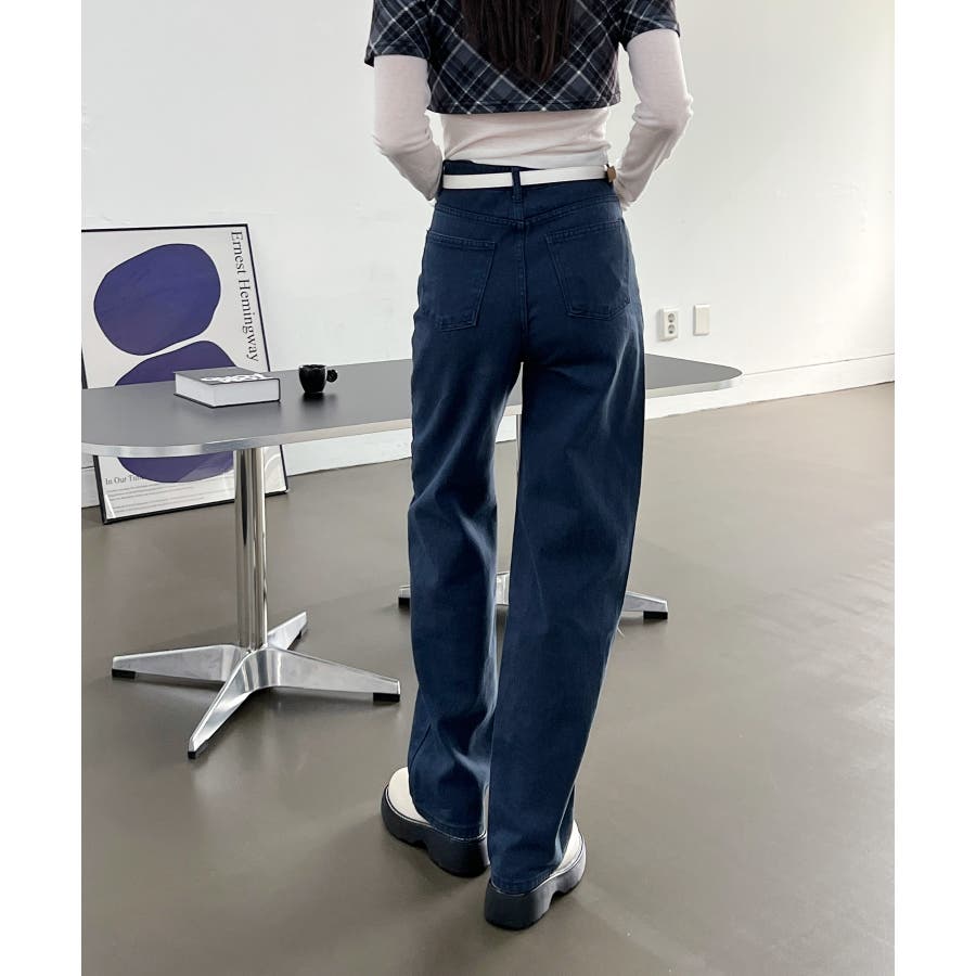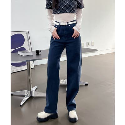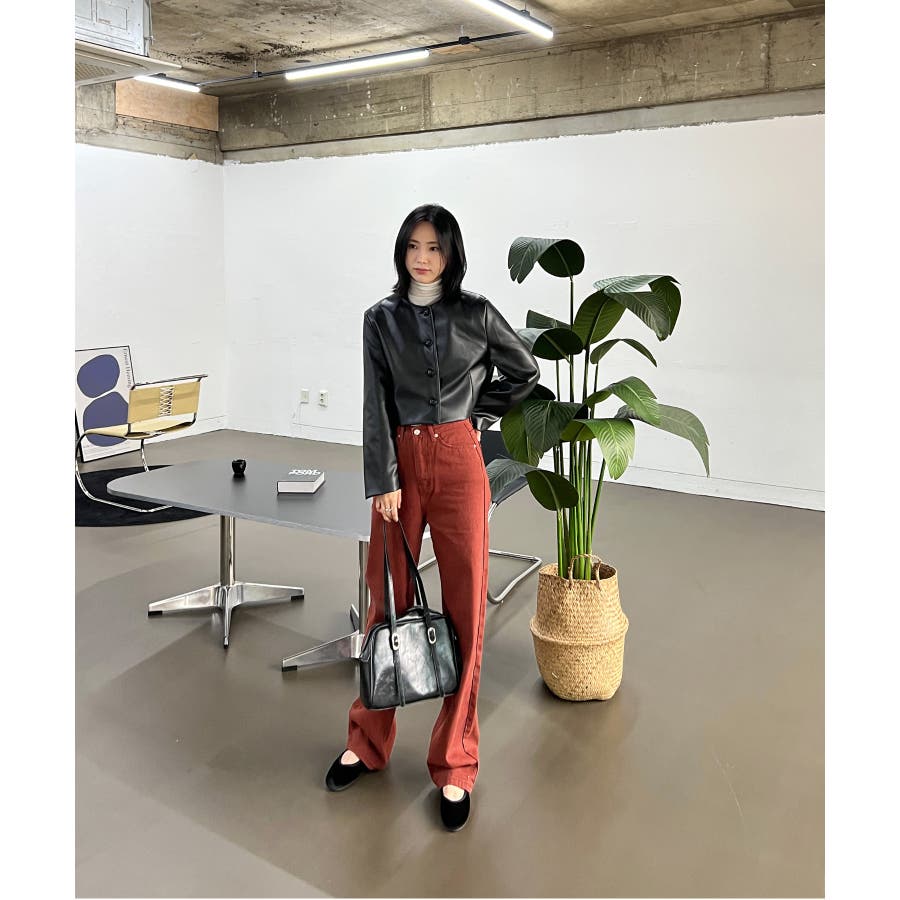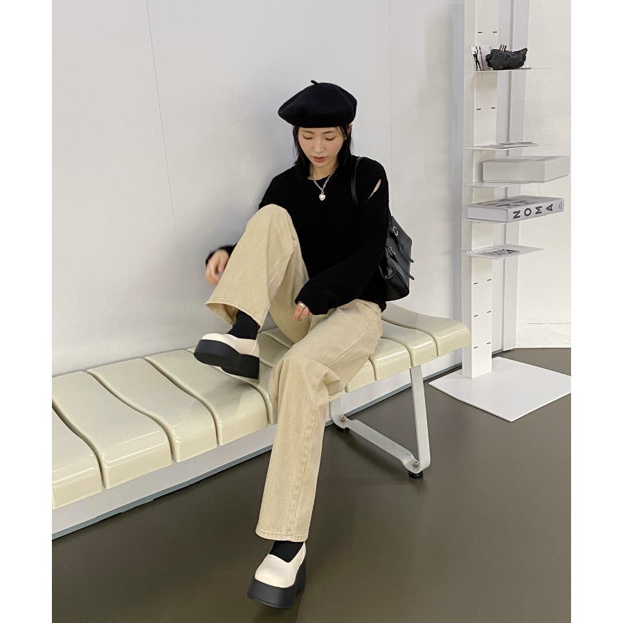 ストレートに落ちるワイドでデザインが脚のラインを綺麗に