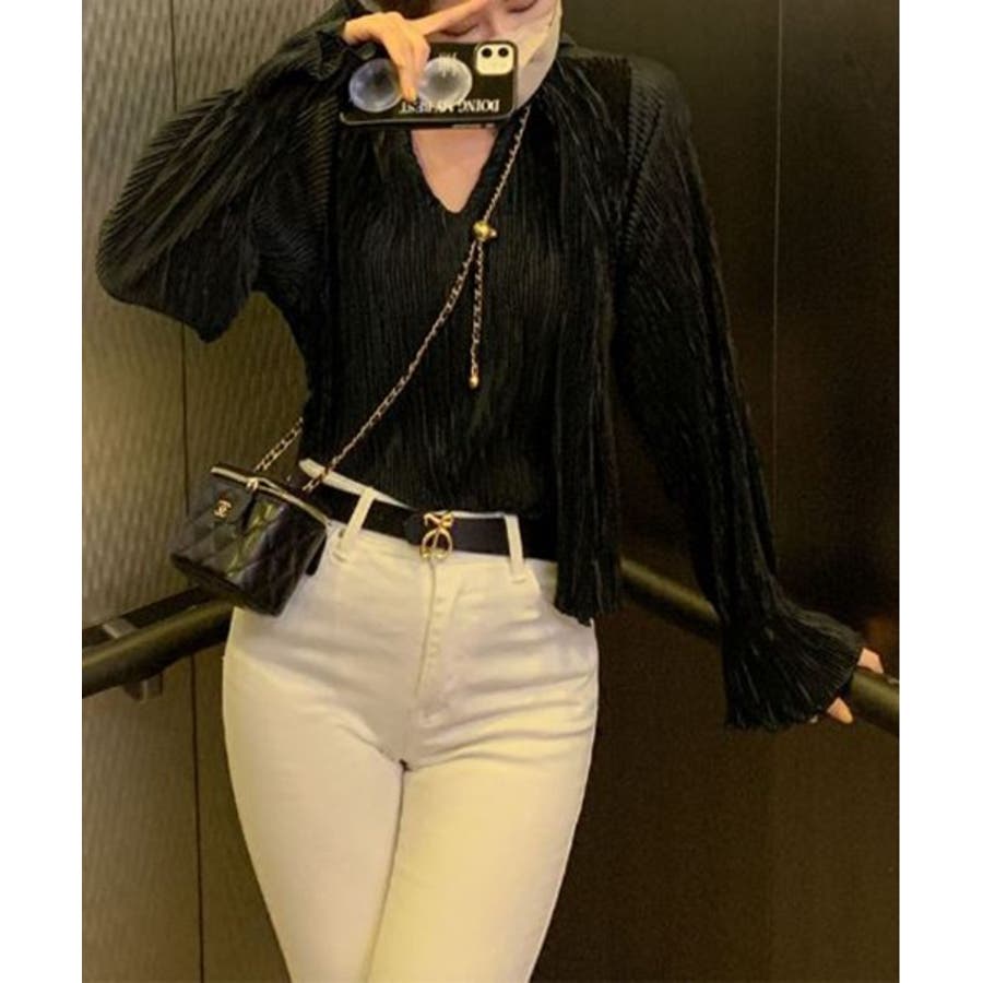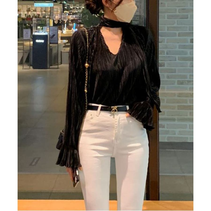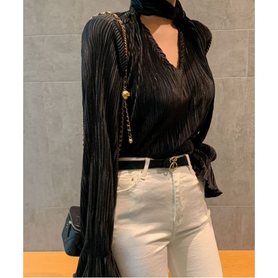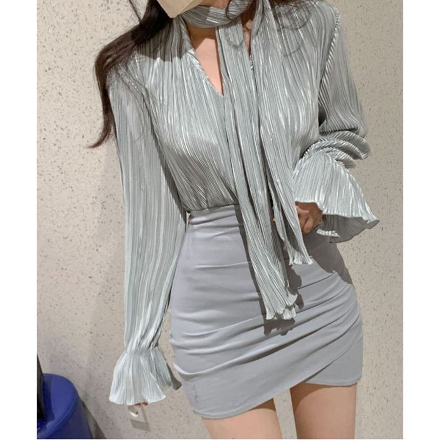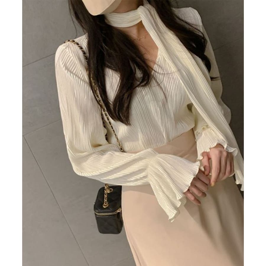 上品な雰囲気のリンクルタイブラウスを紹介します。