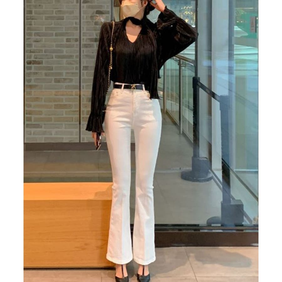 フェミニンでクラシックな雰囲気が好きな方はブーツカットのスラックスとジャケットを一緒に合わせることをおすすめいたします!