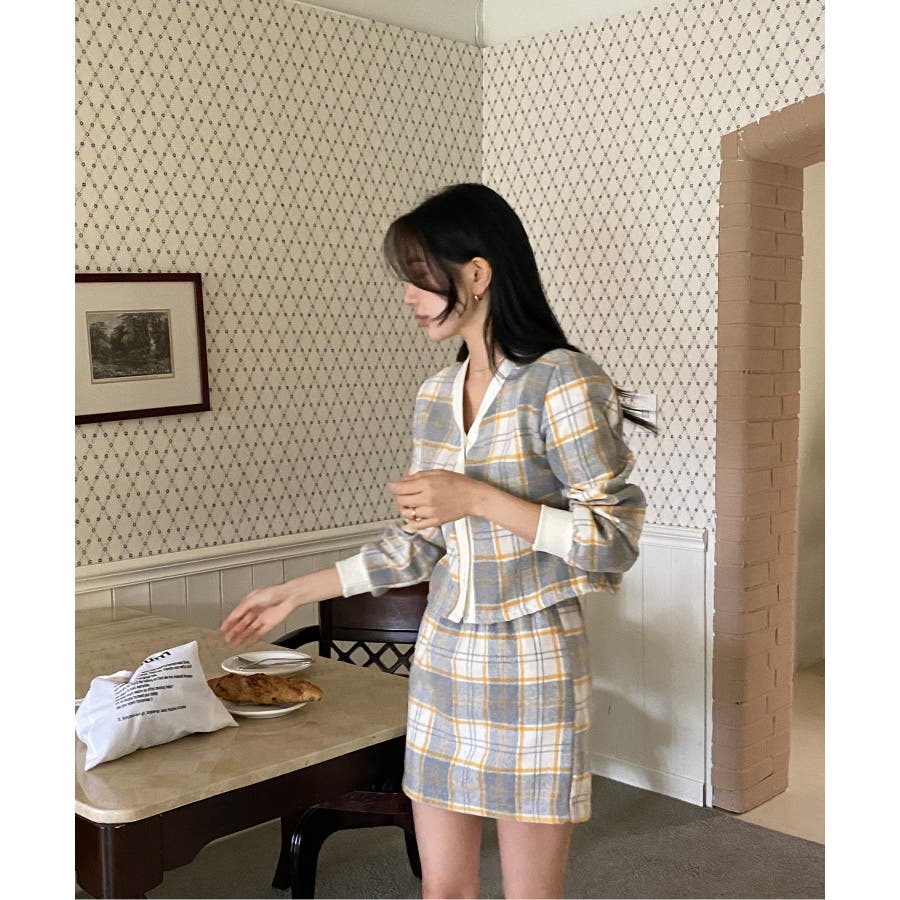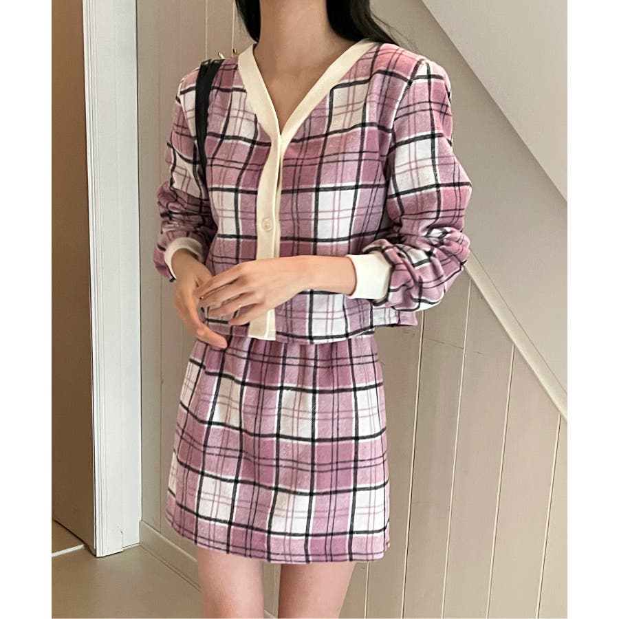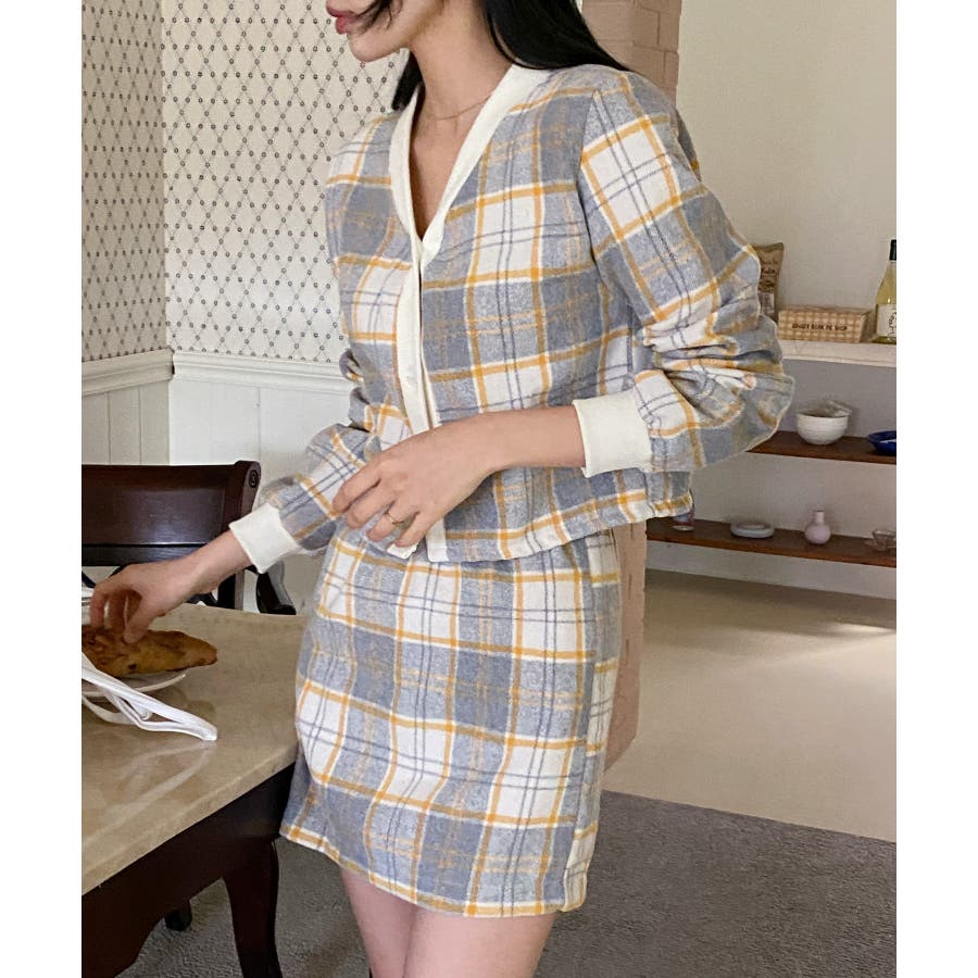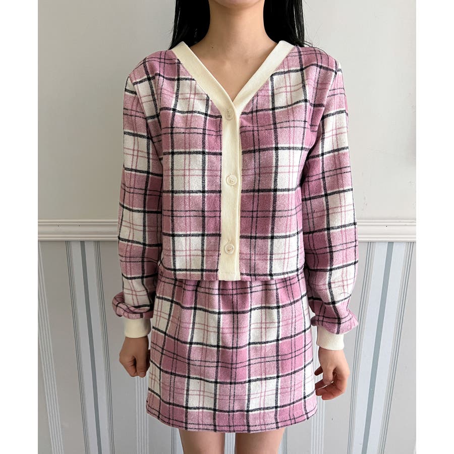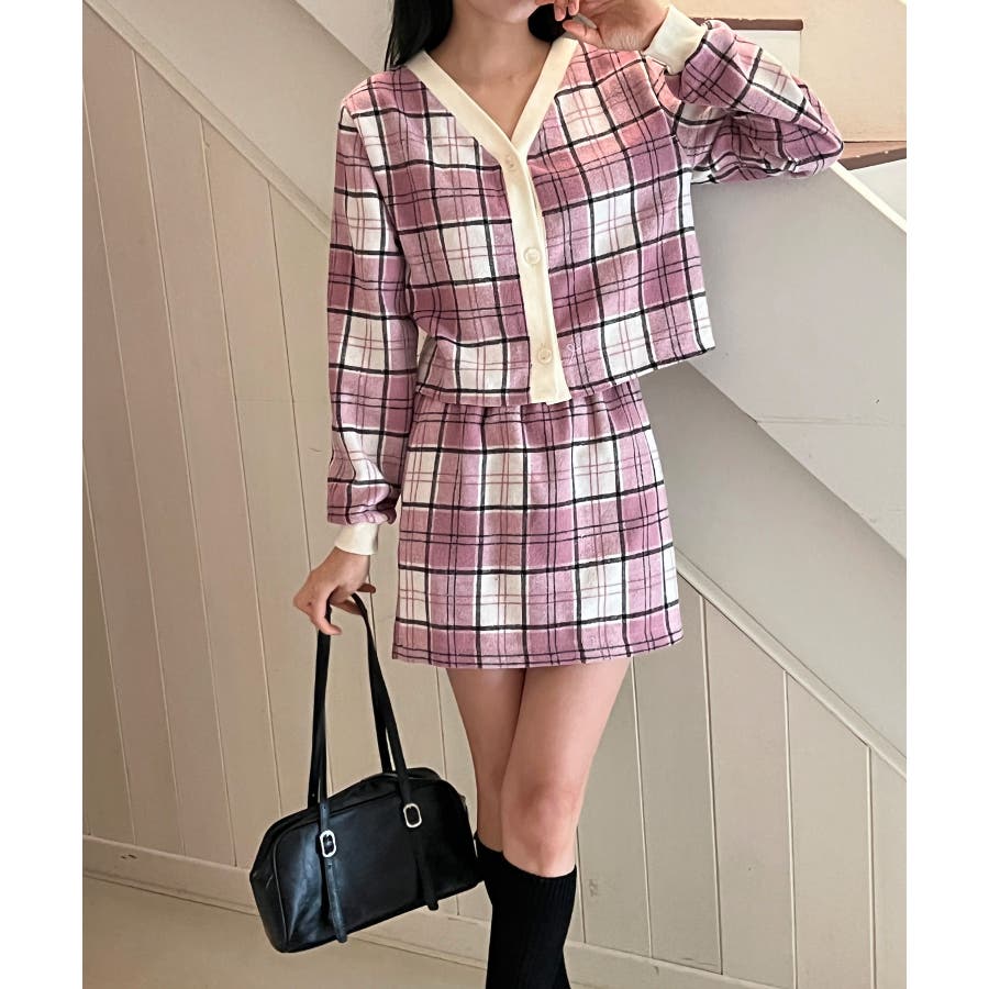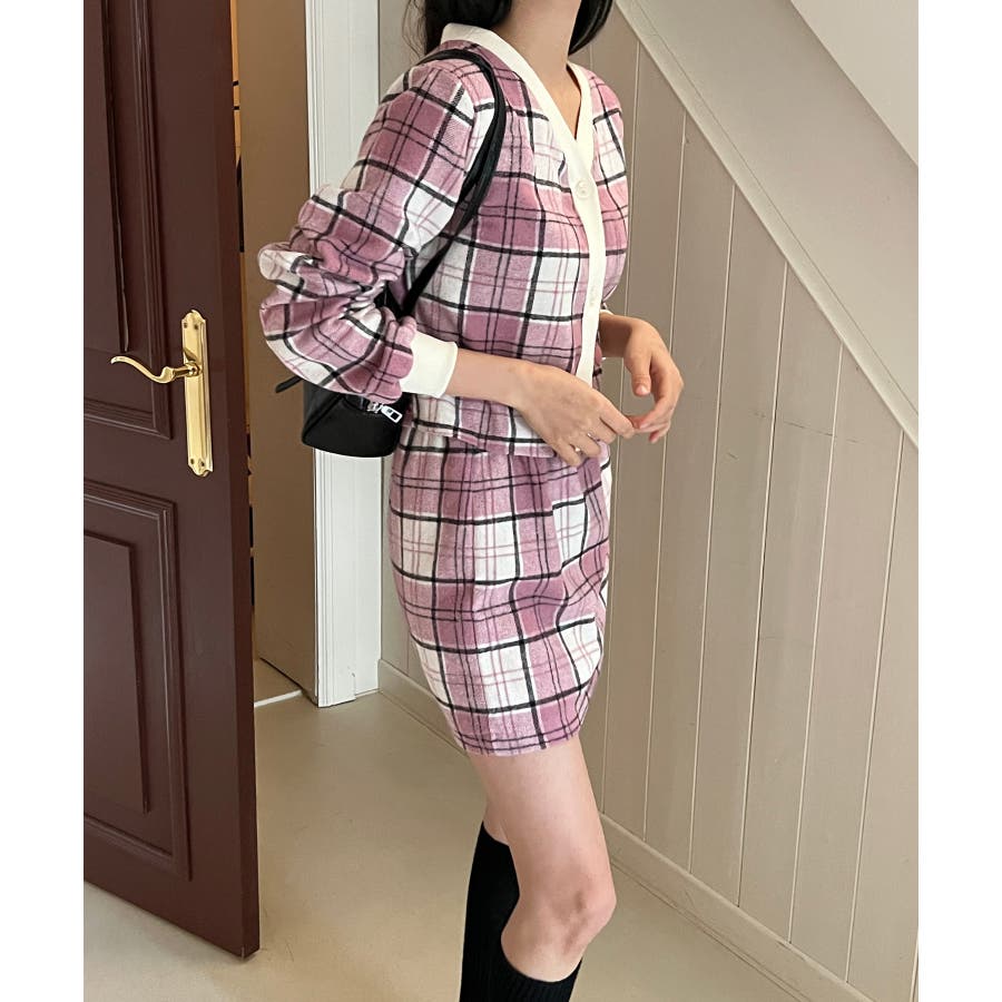 チェックカーディガンスカートセットアップ
