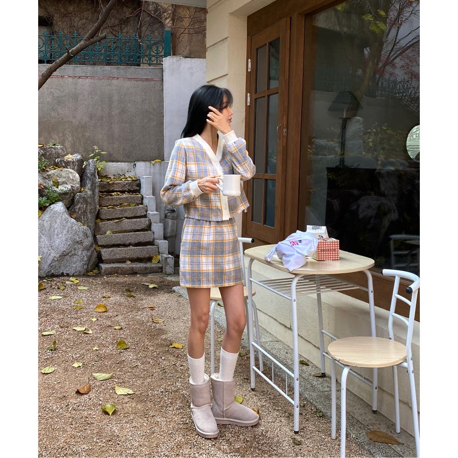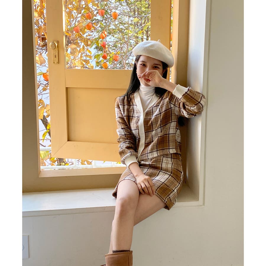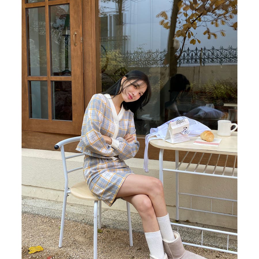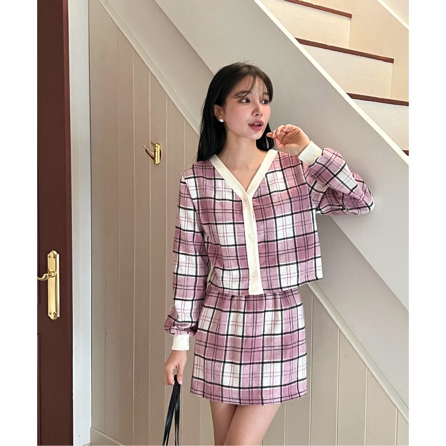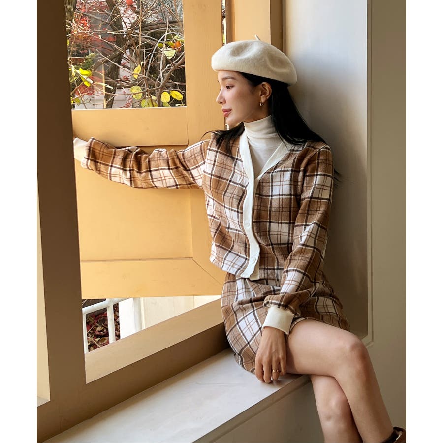 チェックカーディガンスカートセットアップ