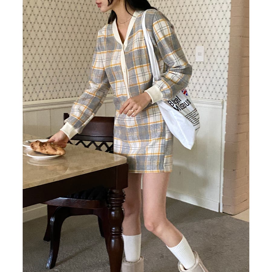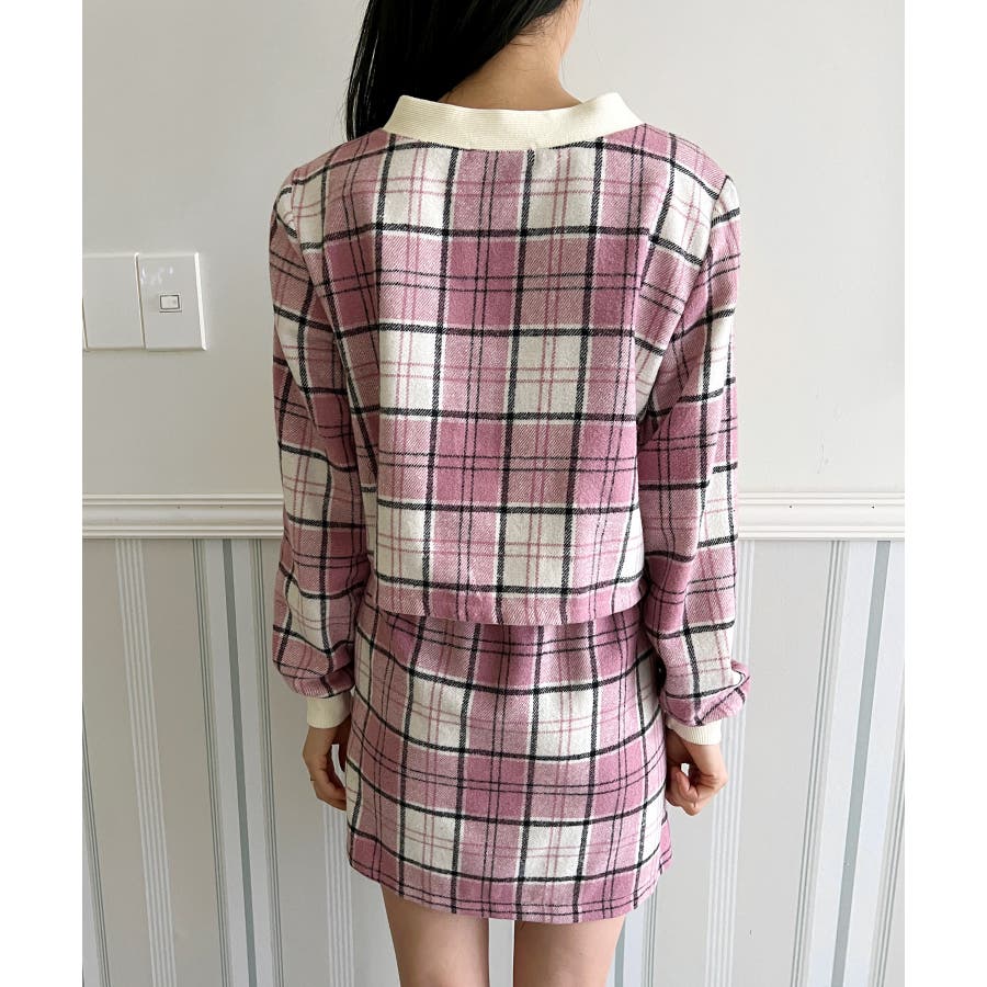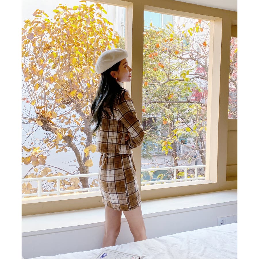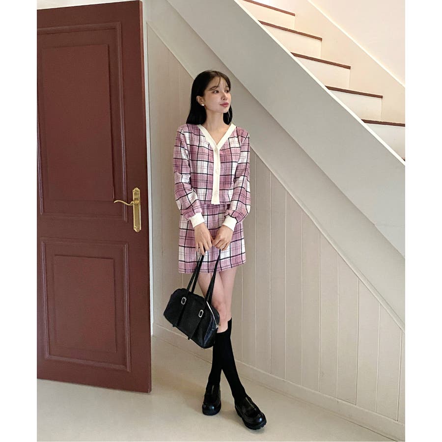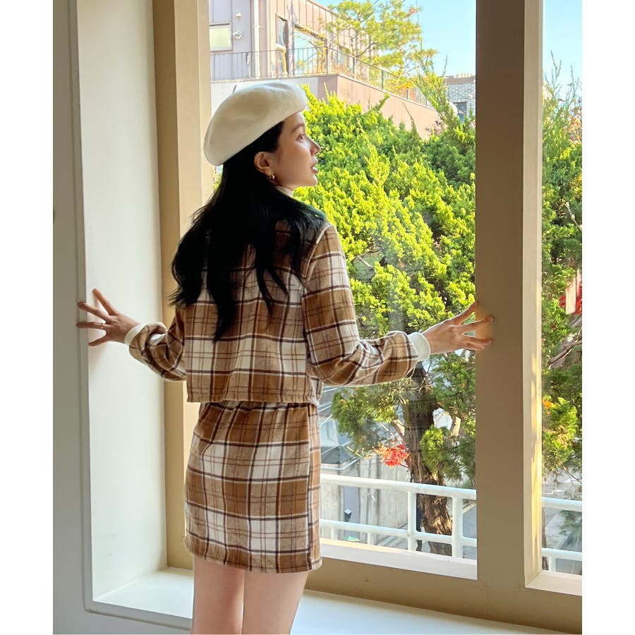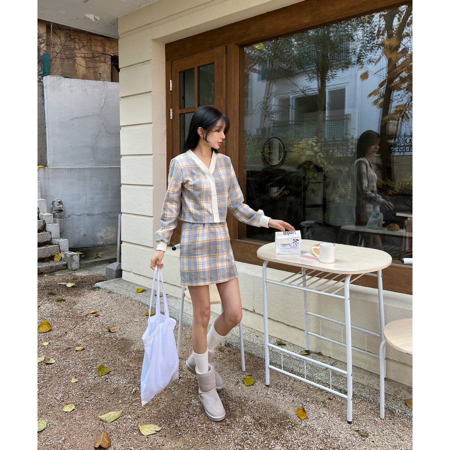 チェックカーディガンスカートセットアップ