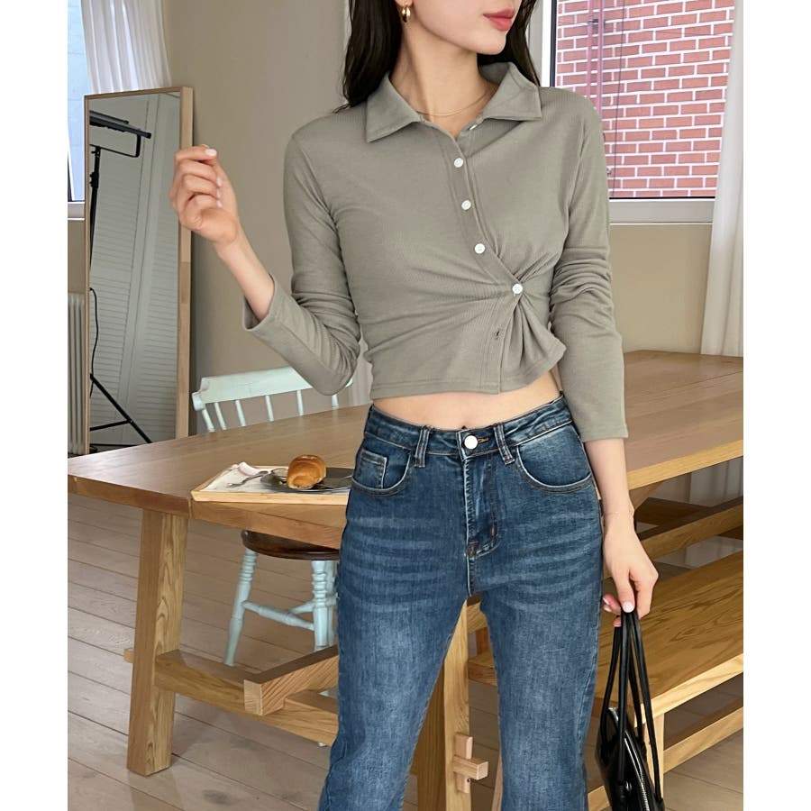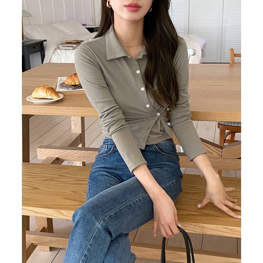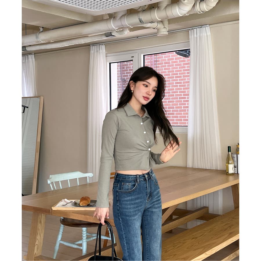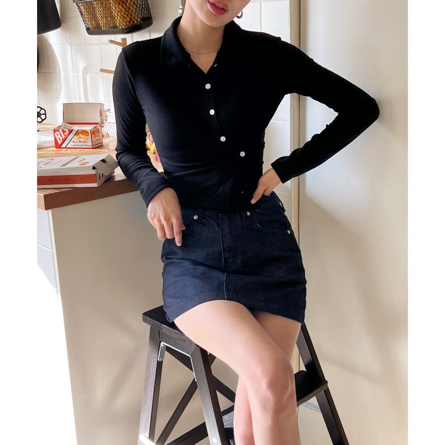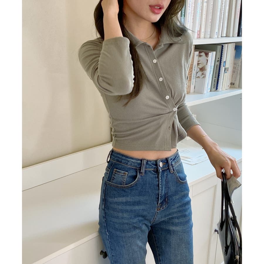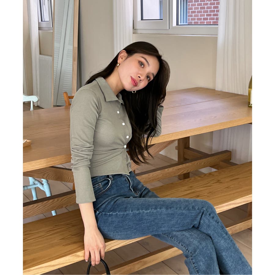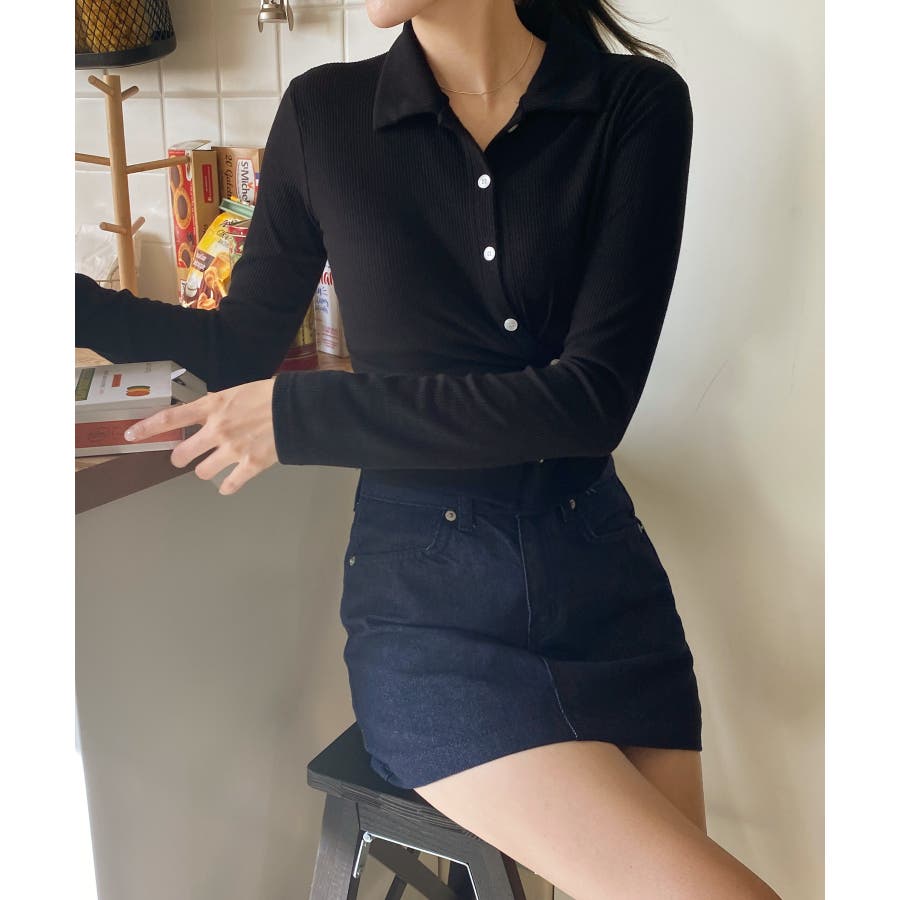 すっきりとした襟のデザインで、サイドボタン仕様で