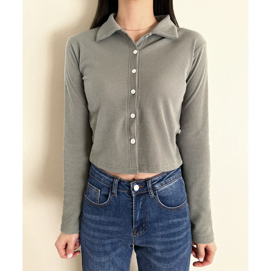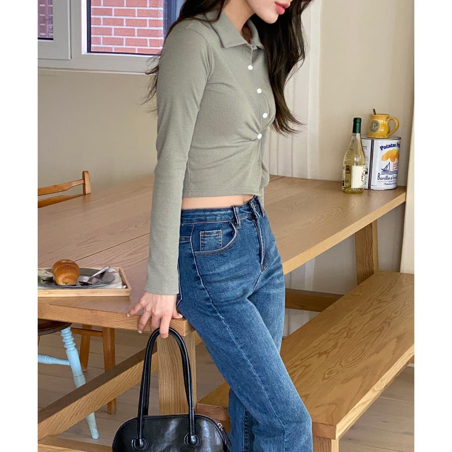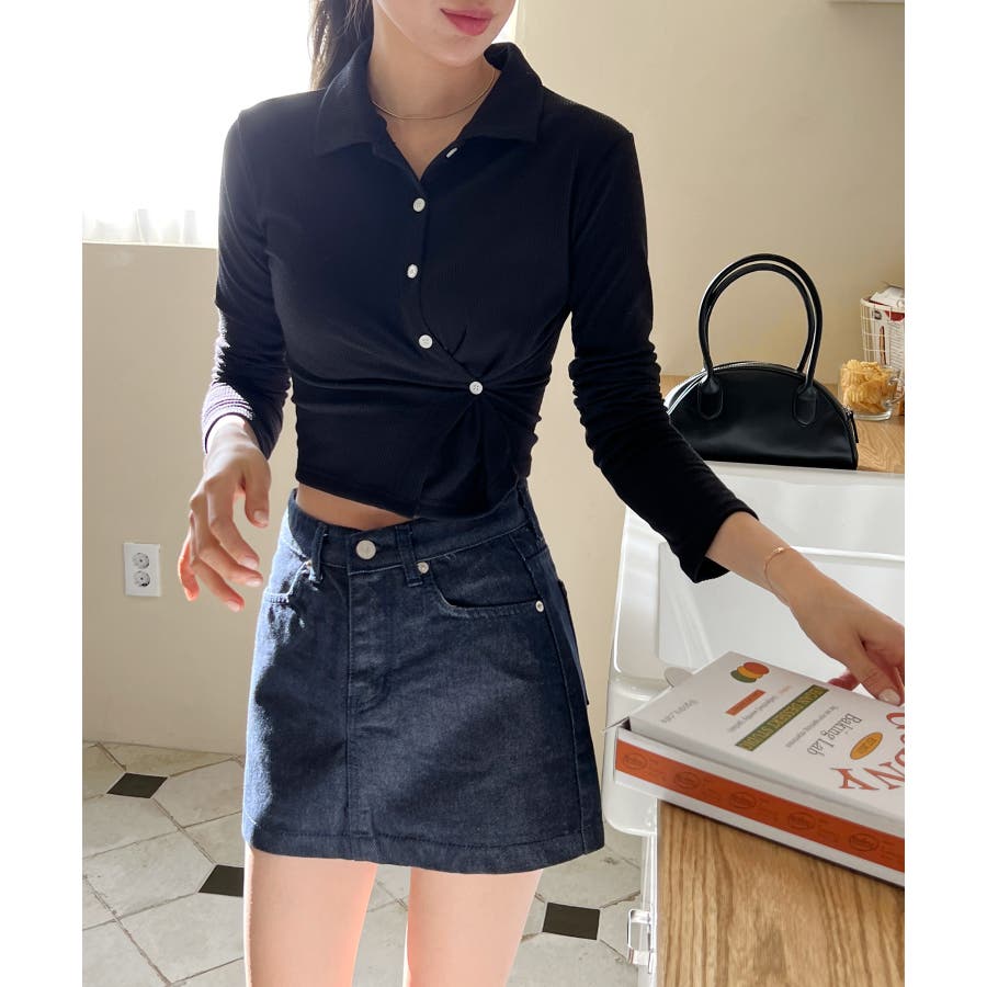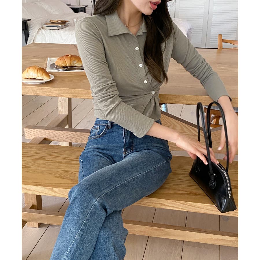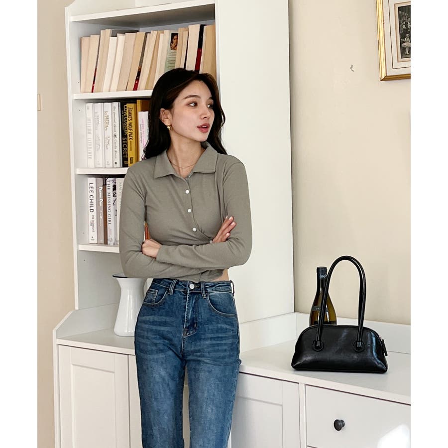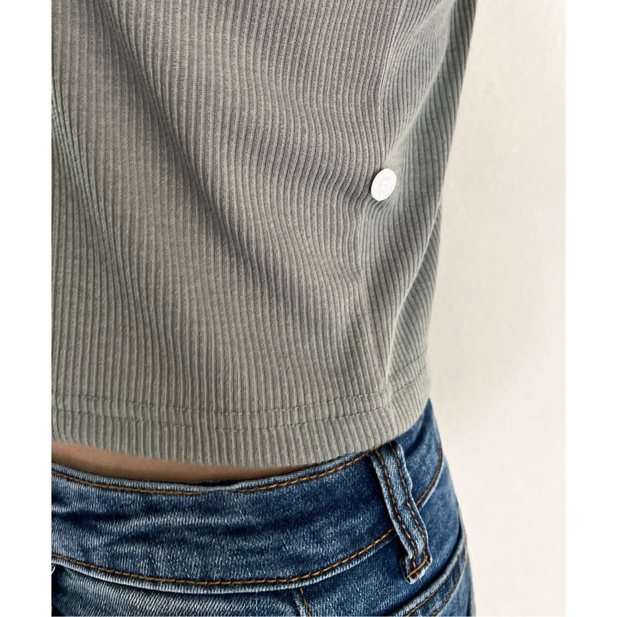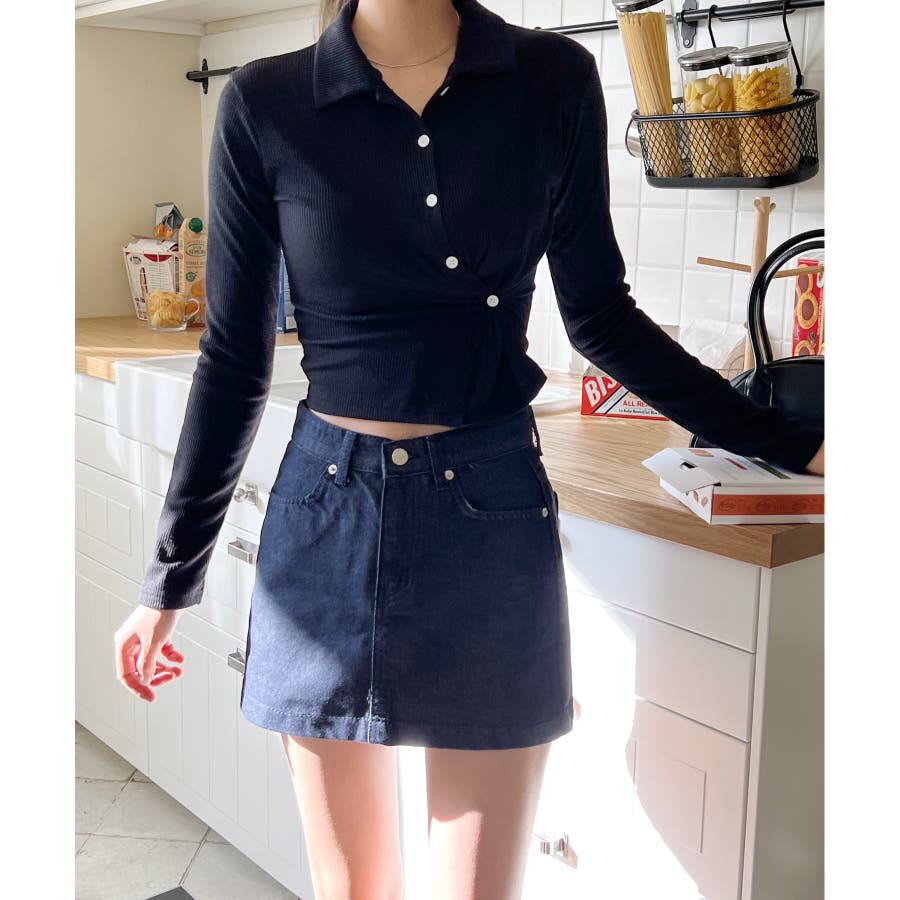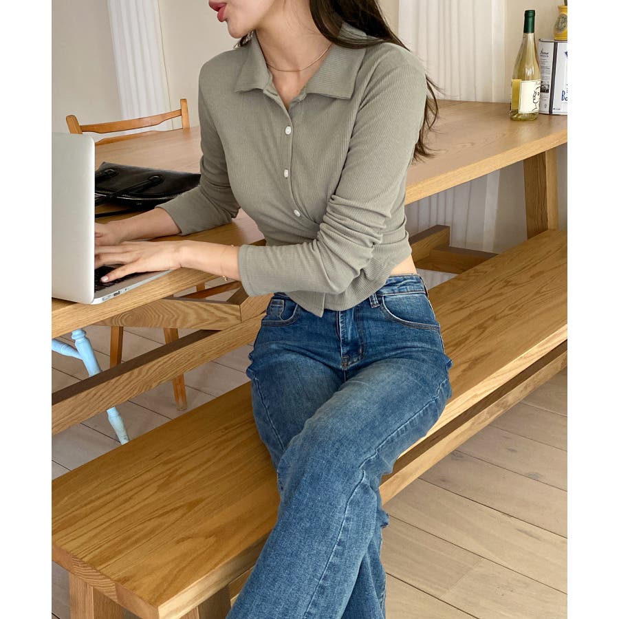 すっきりとした襟のデザインで、サイドボタン仕様で