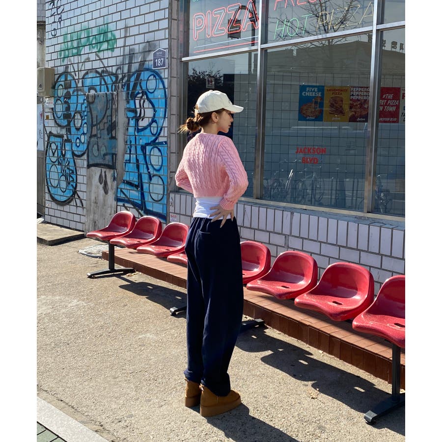 丈感もオヘソの下くらいでハイウエストズボンを履くとめっちゃスタイル良く見えます!