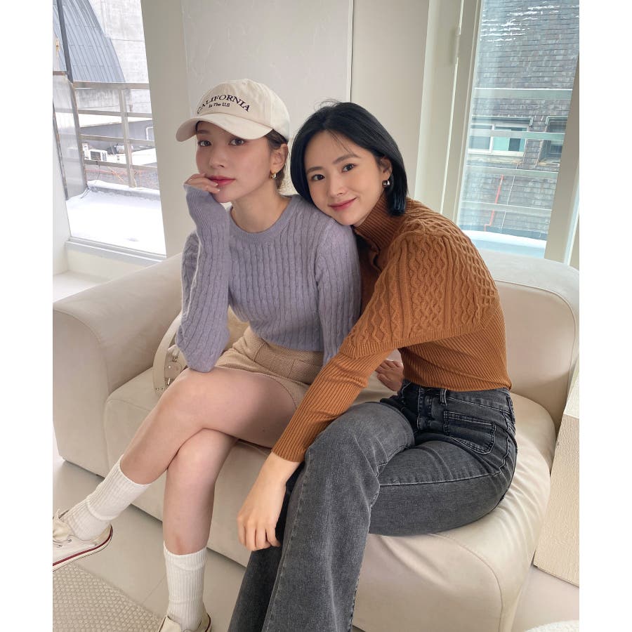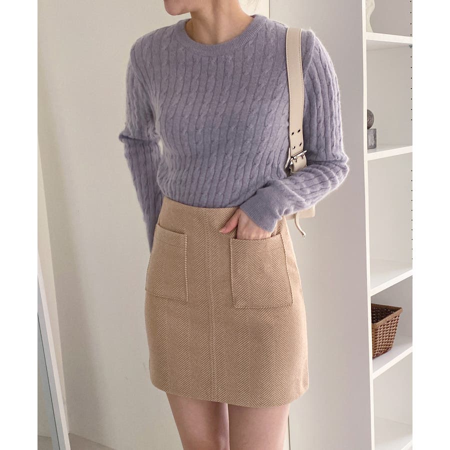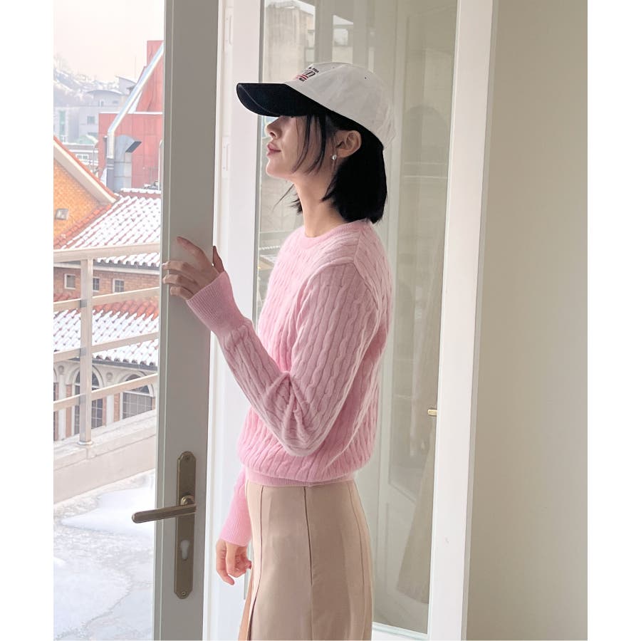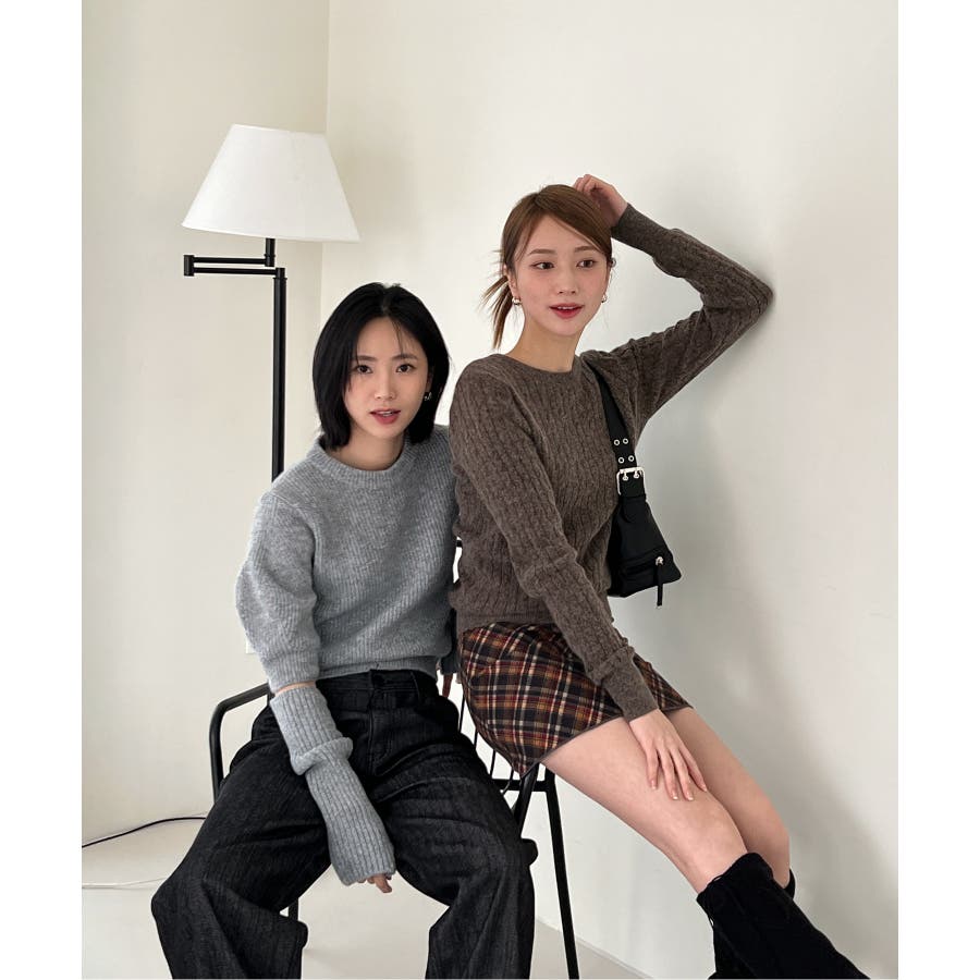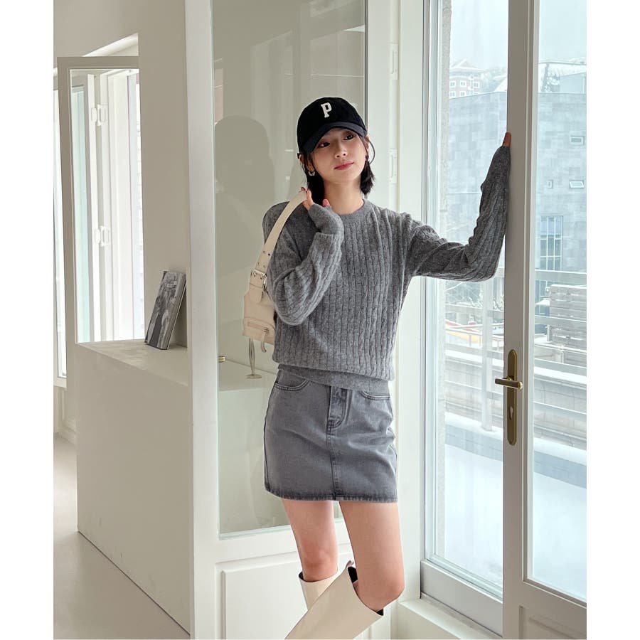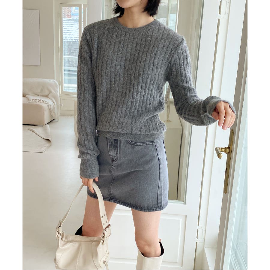 ベーシックラウンドケーブルニット