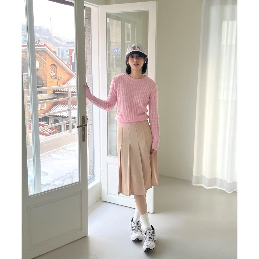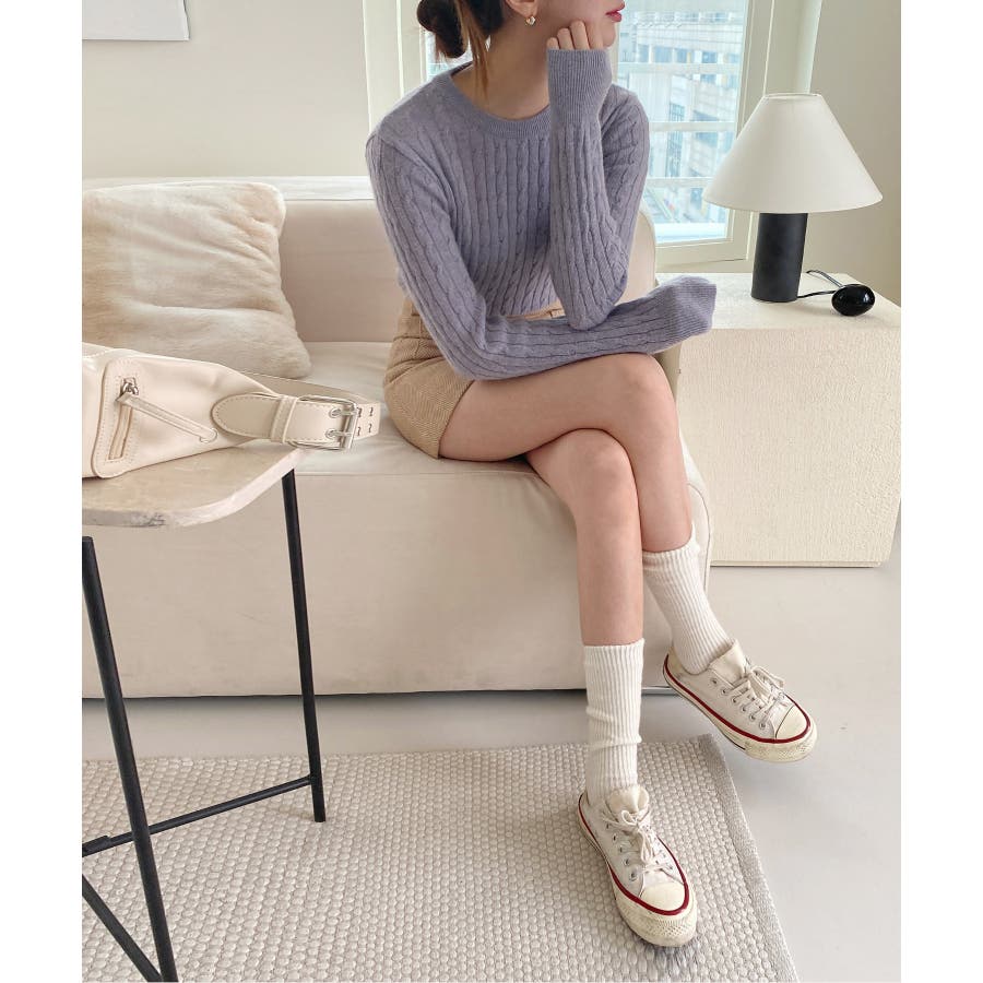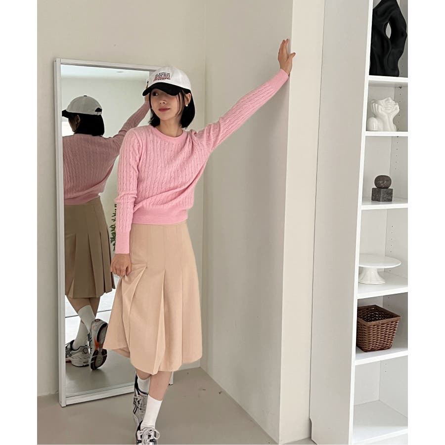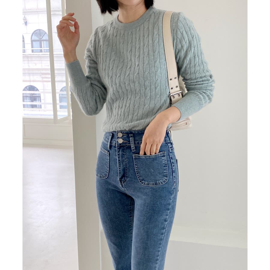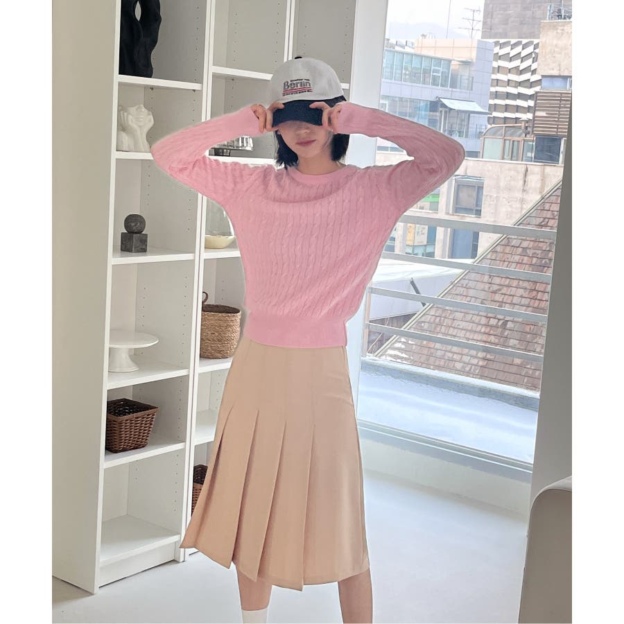 ベーシックラウンドケーブルニット