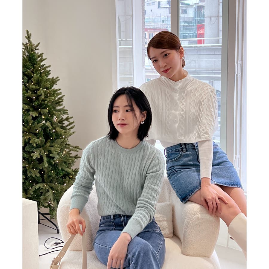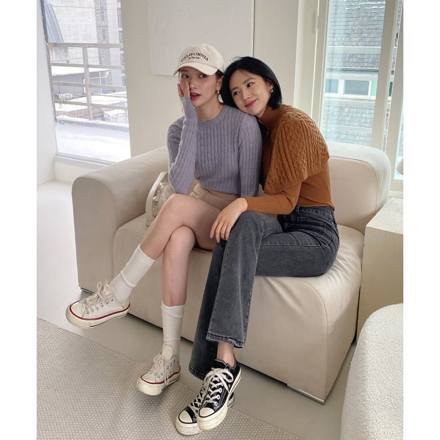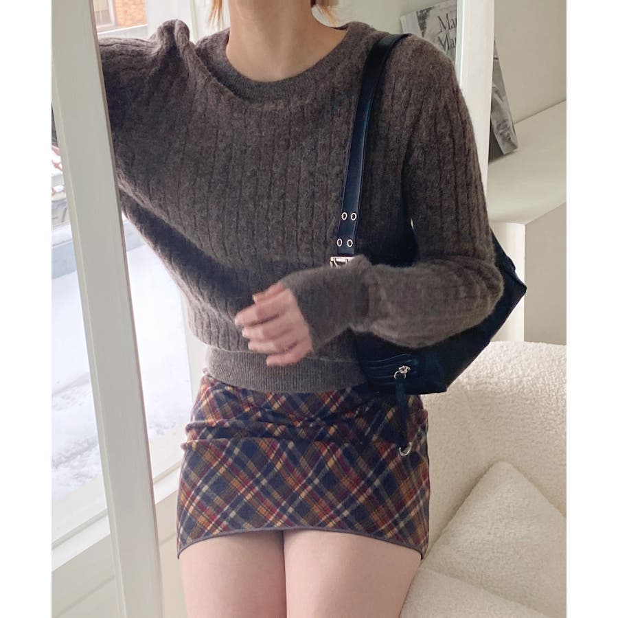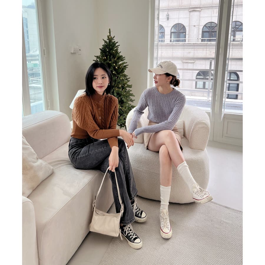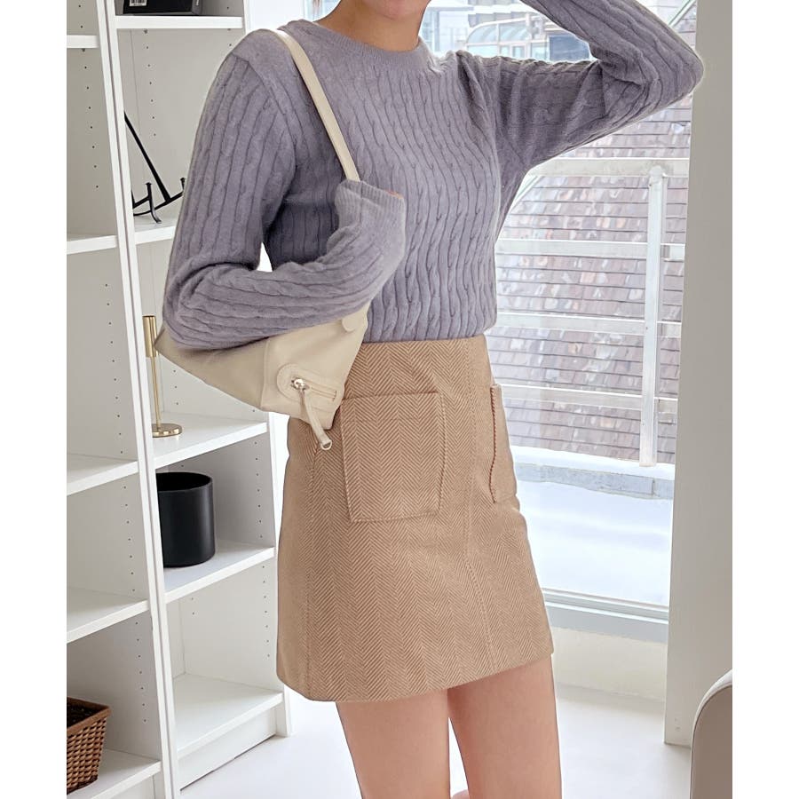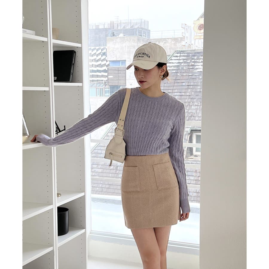 ベーシックラウンドケーブルニット