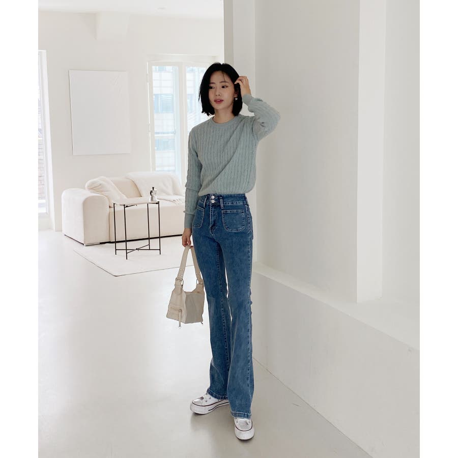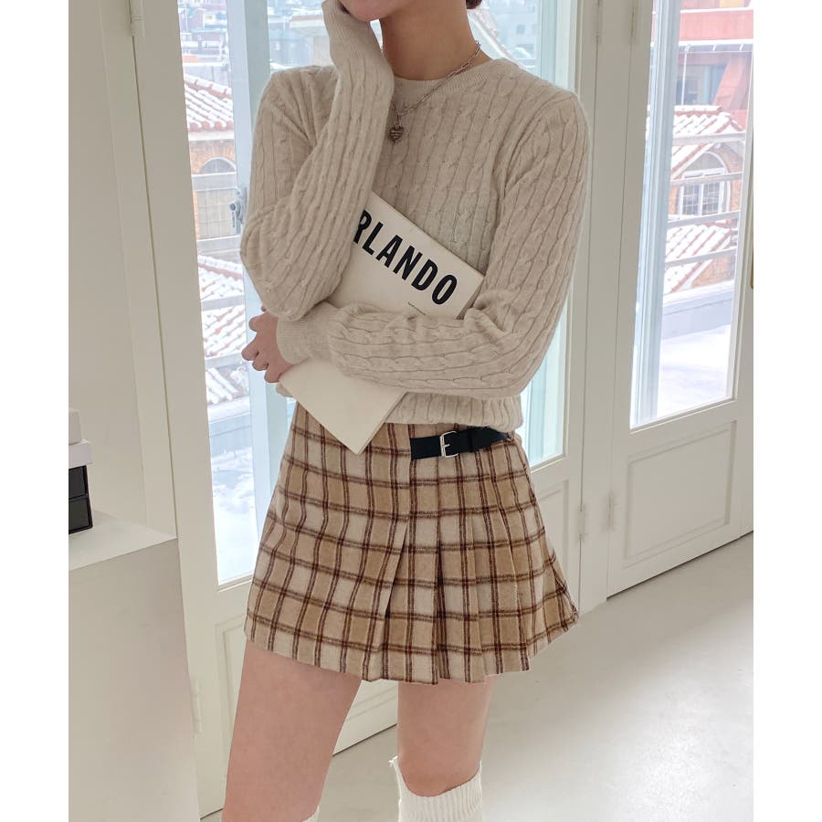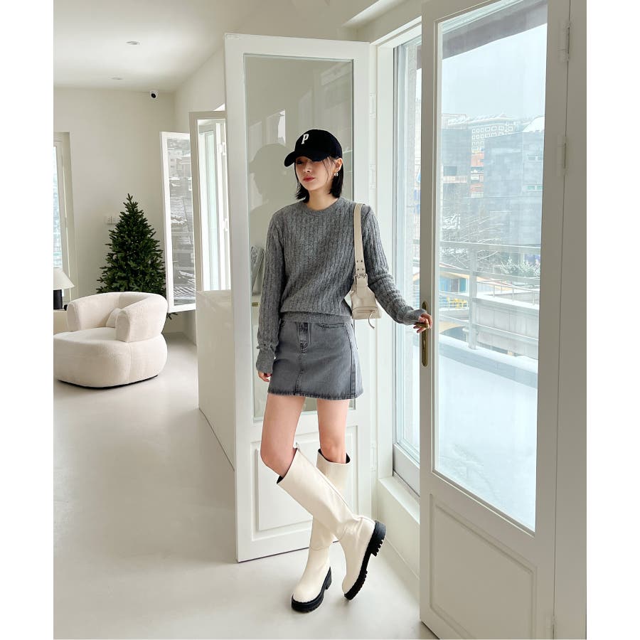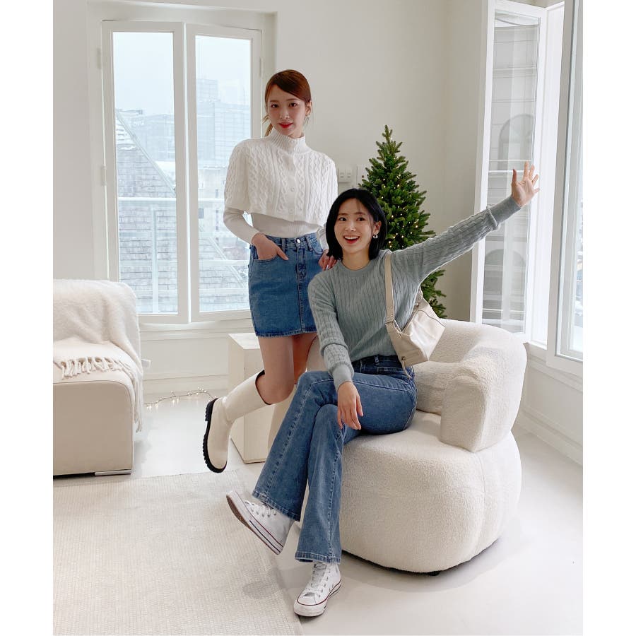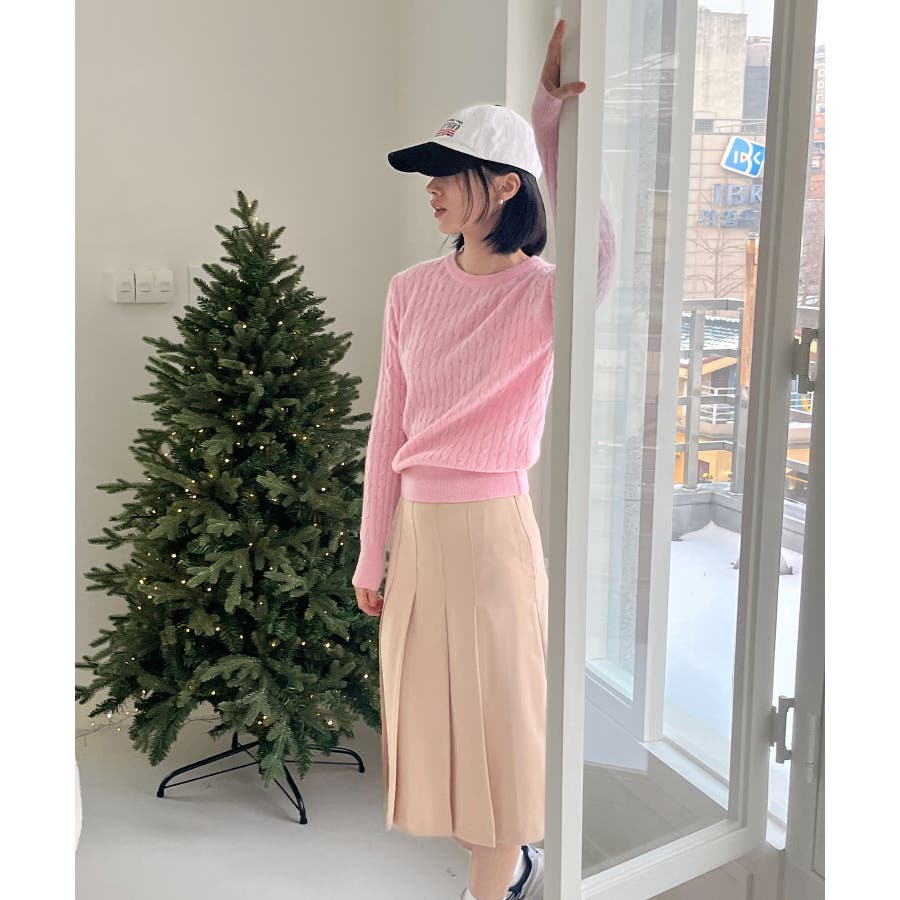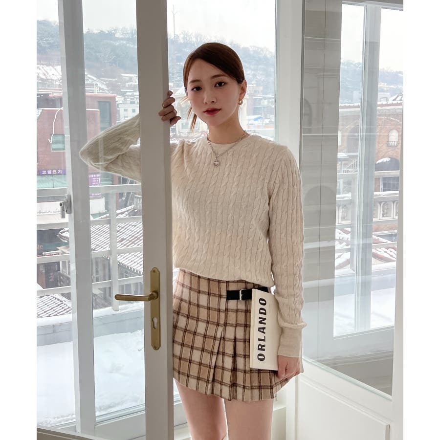 ベーシックラウンドケーブルニット
