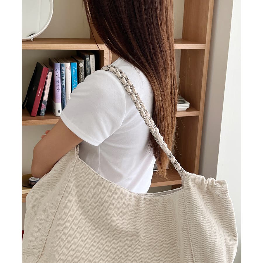 デニム生地にチェーンストラップがポイントのビッグバックを紹介します。