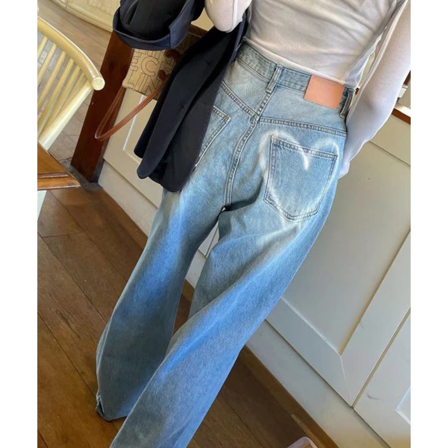 ハートウォッシングポイントを加えたワイドデニムパンツです:)
