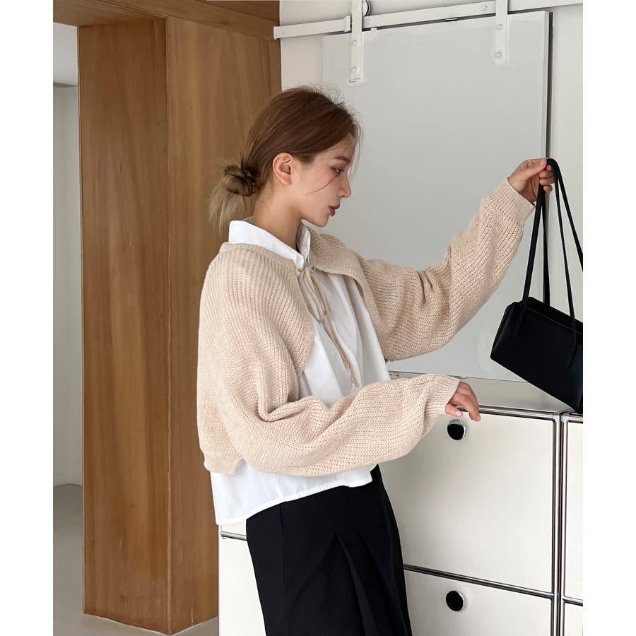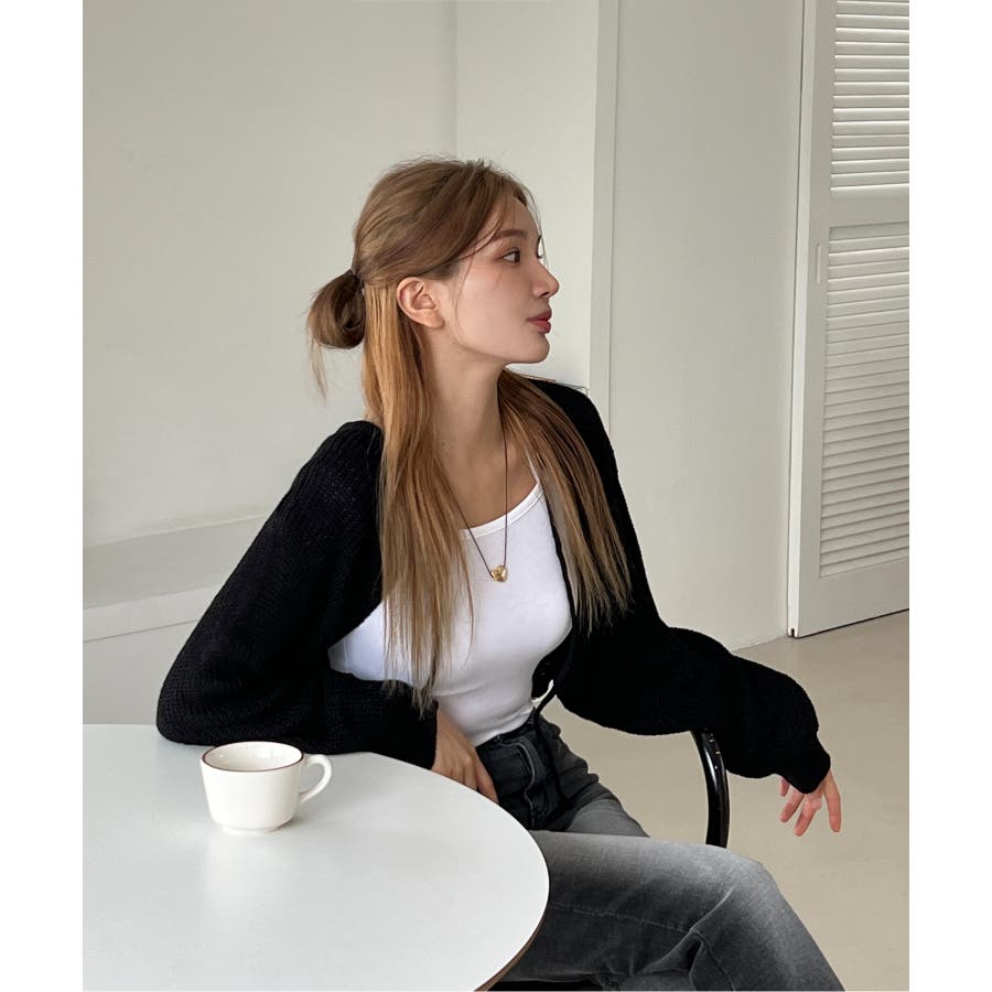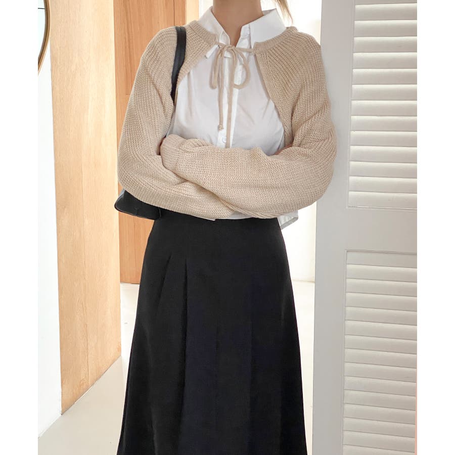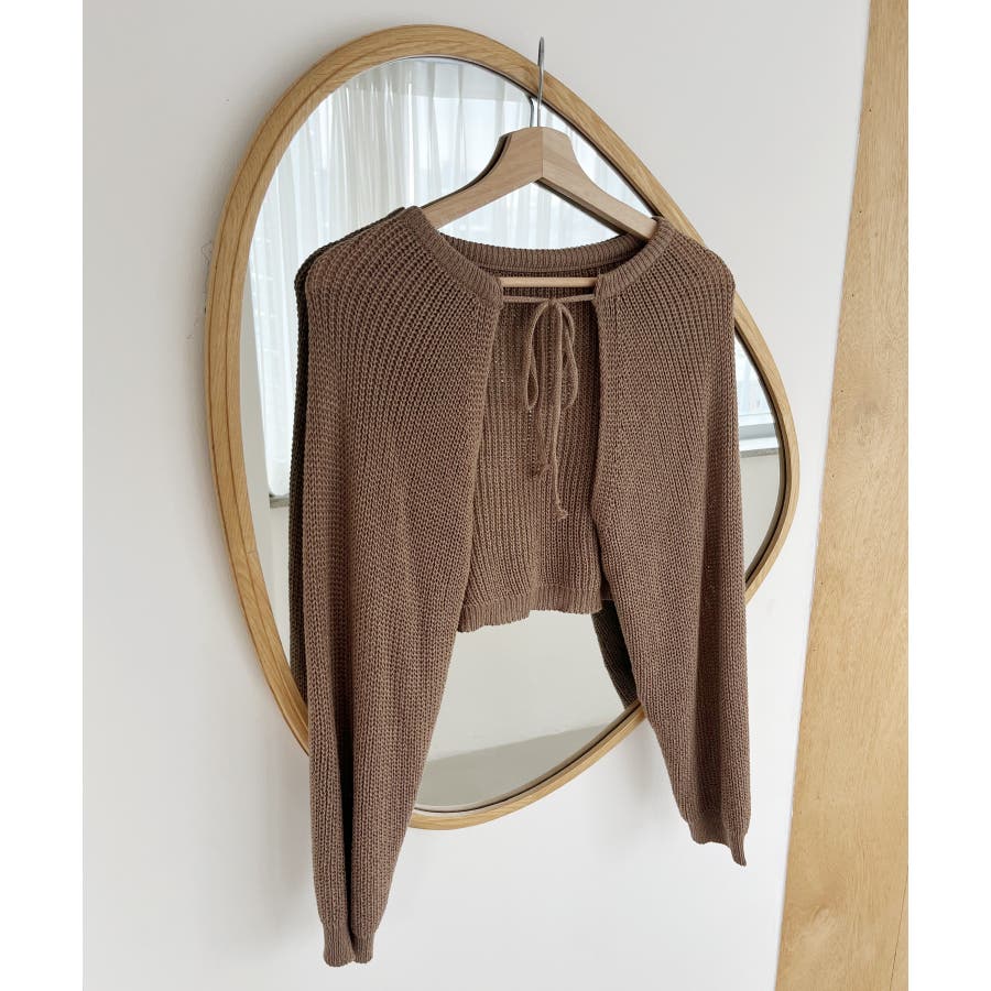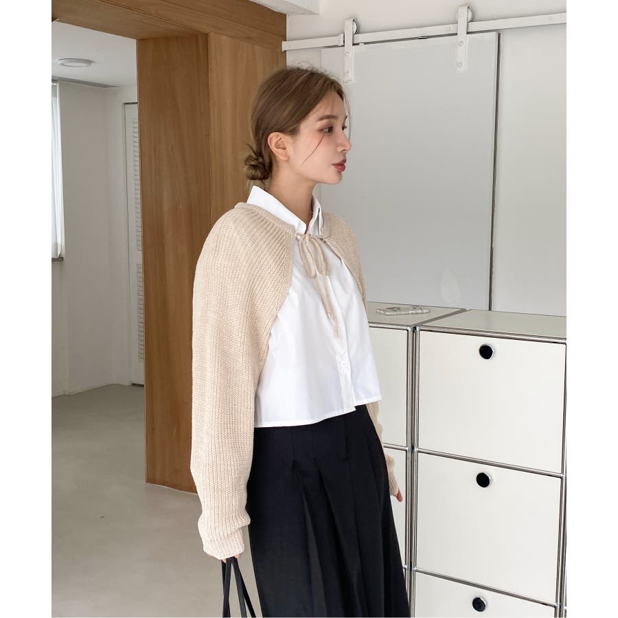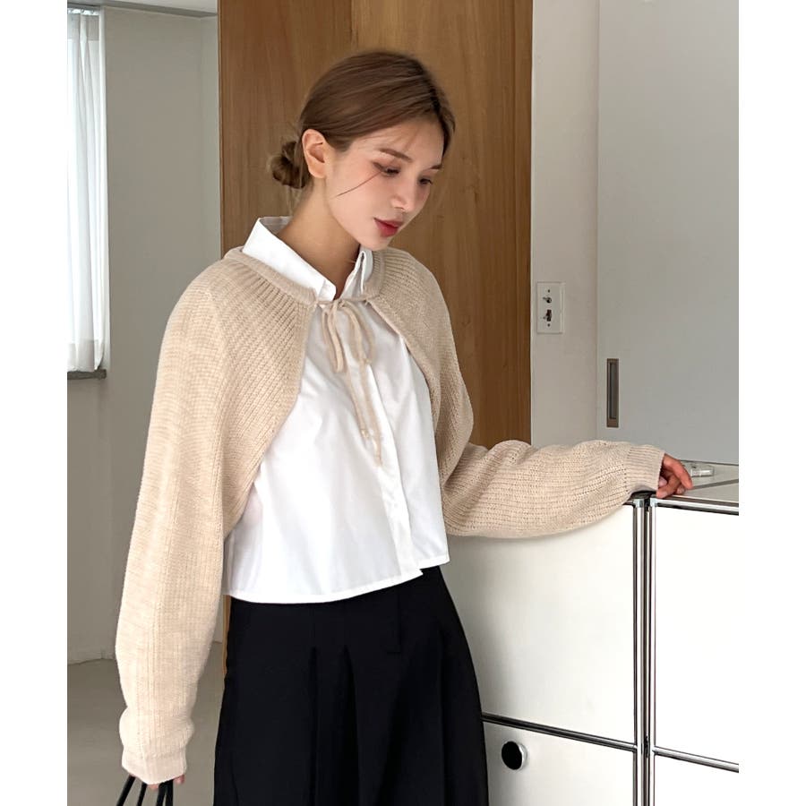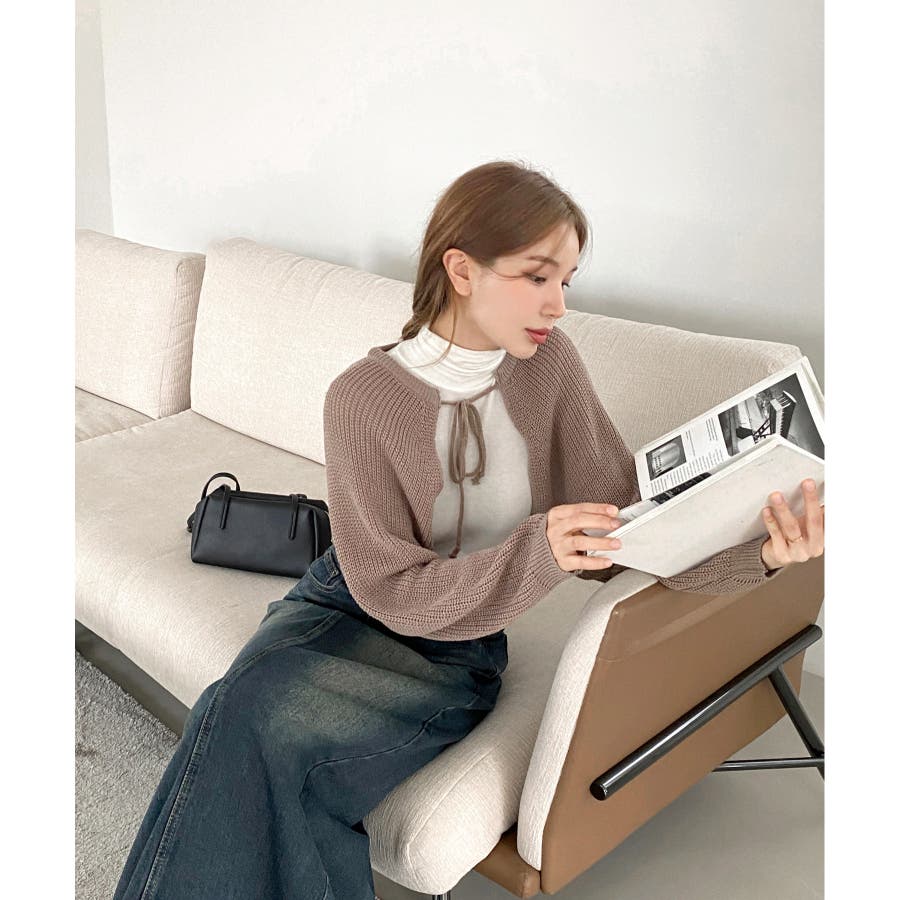 女性らしくてラブリーなボレロカーディガンを紹介します。