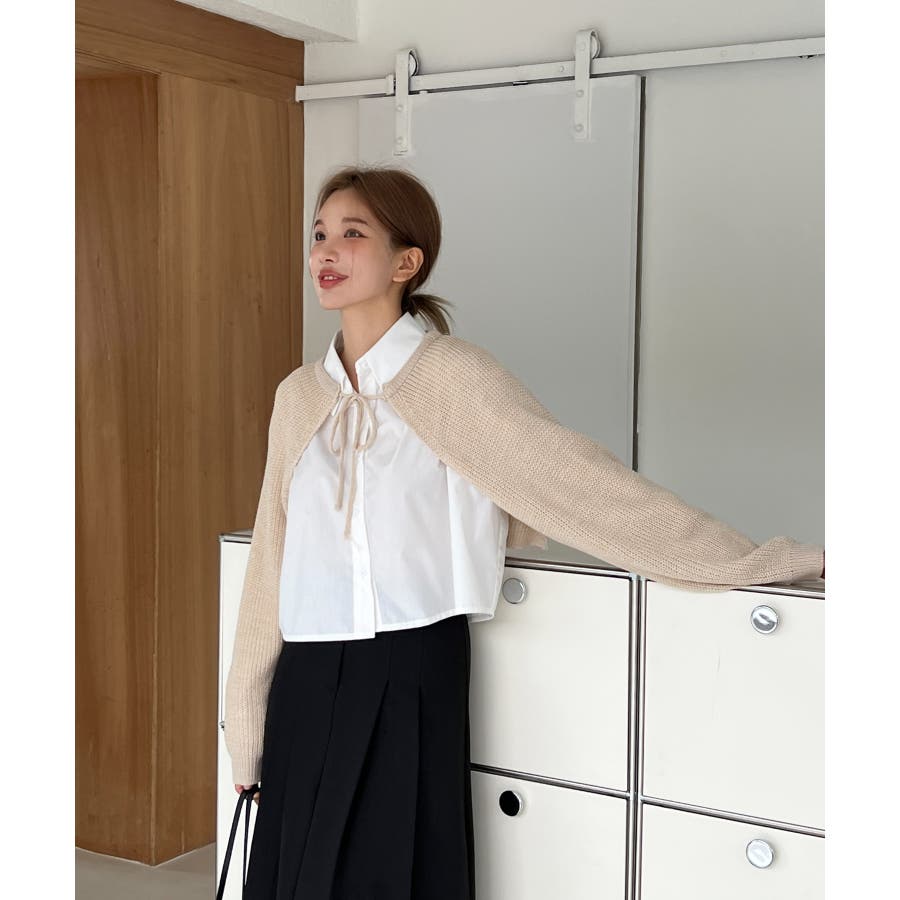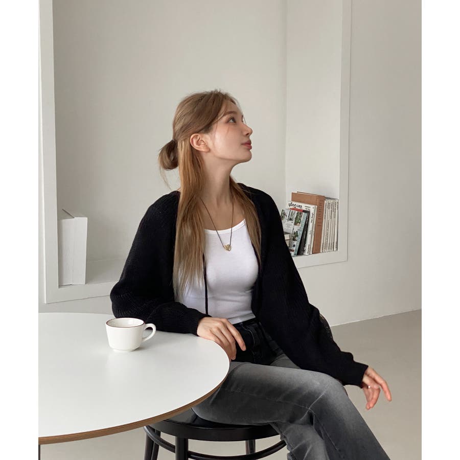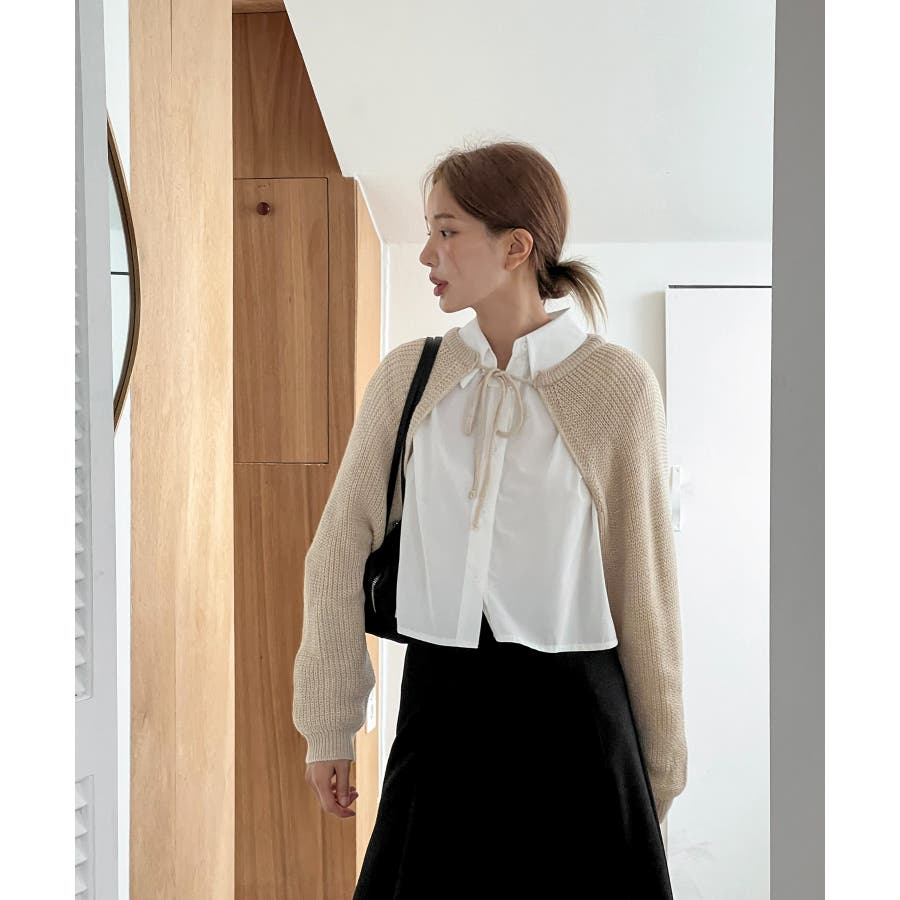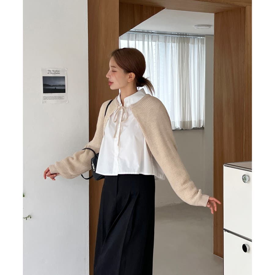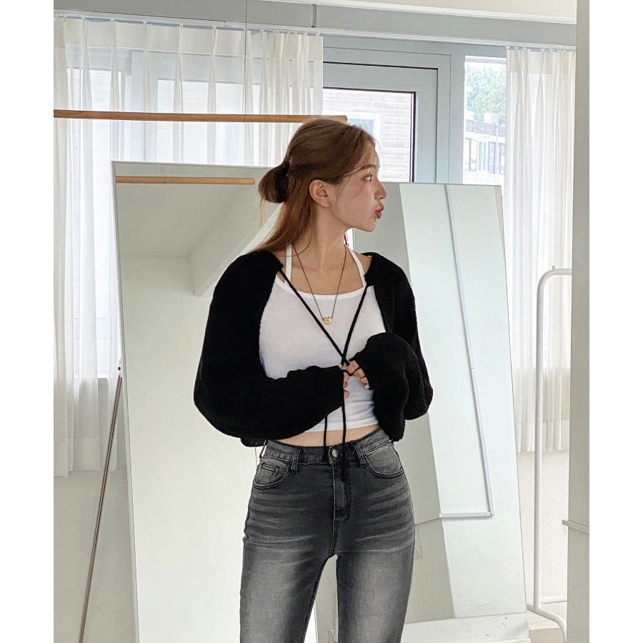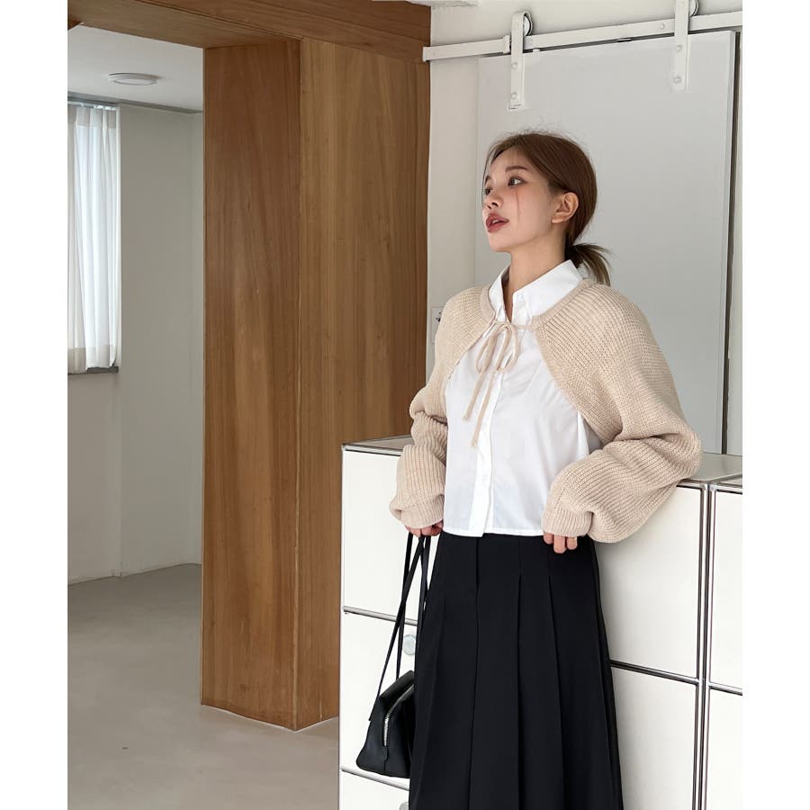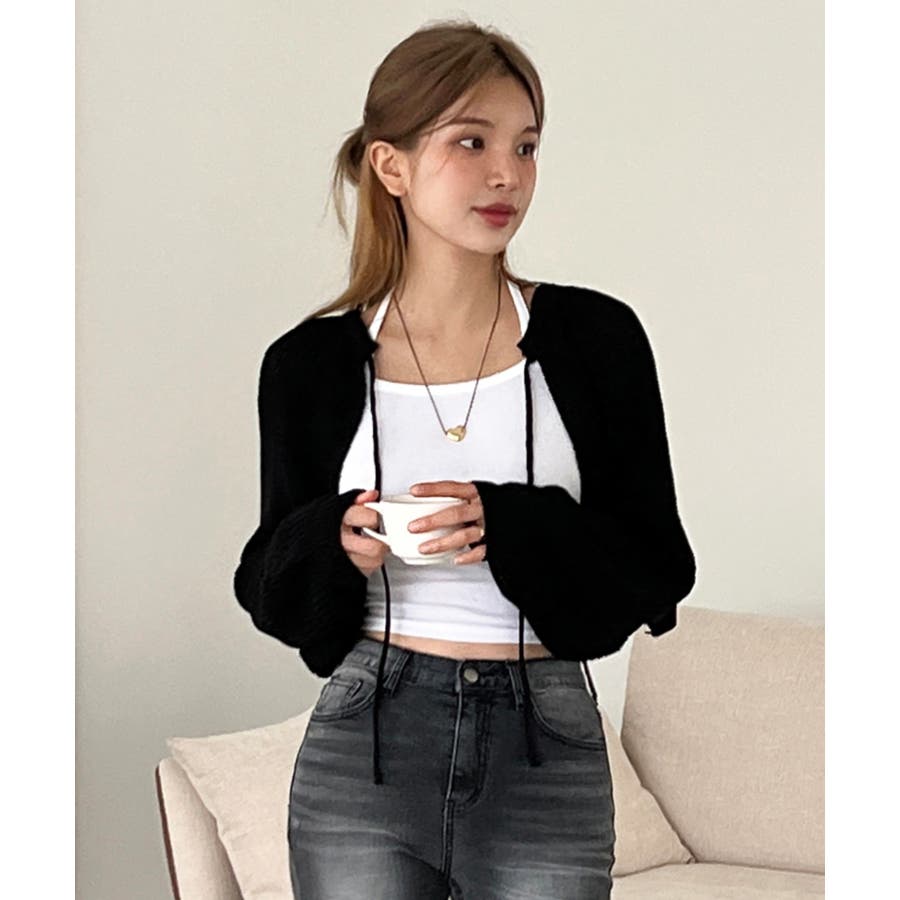 女性らしくてラブリーなボレロカーディガンを紹介します。
