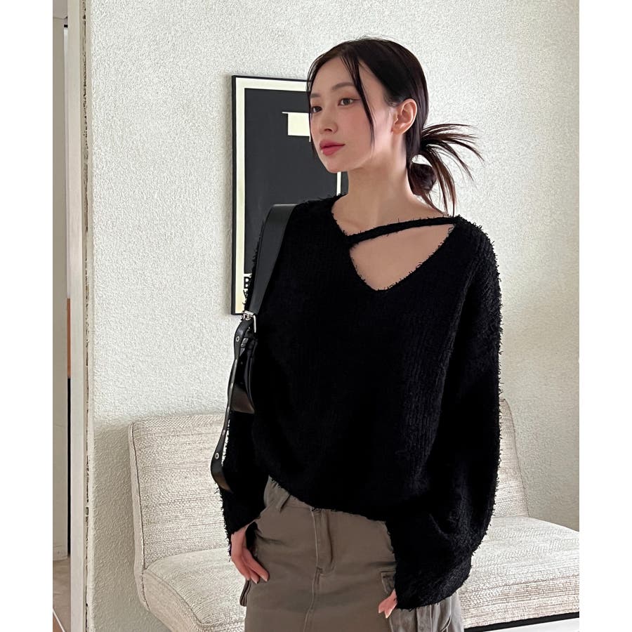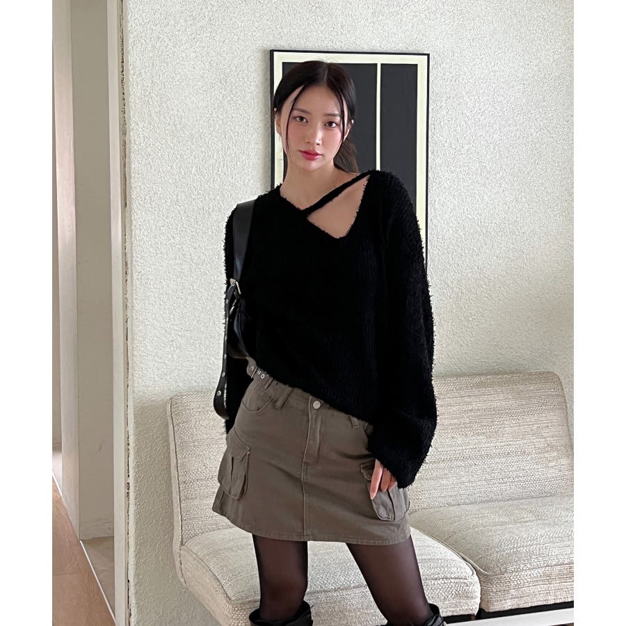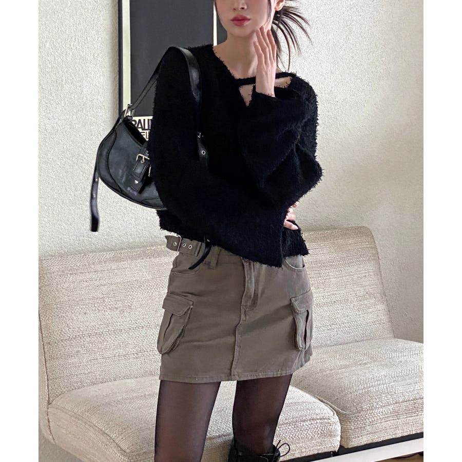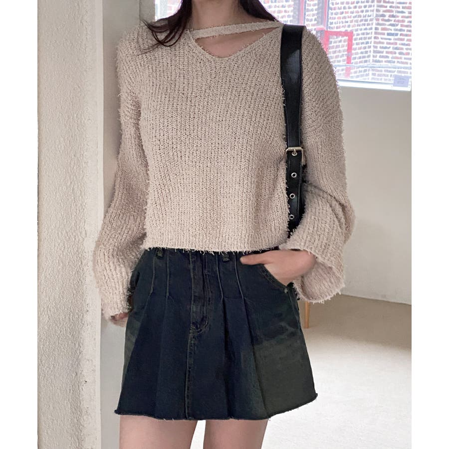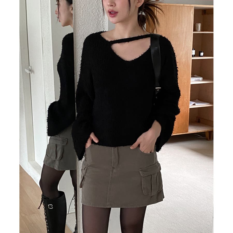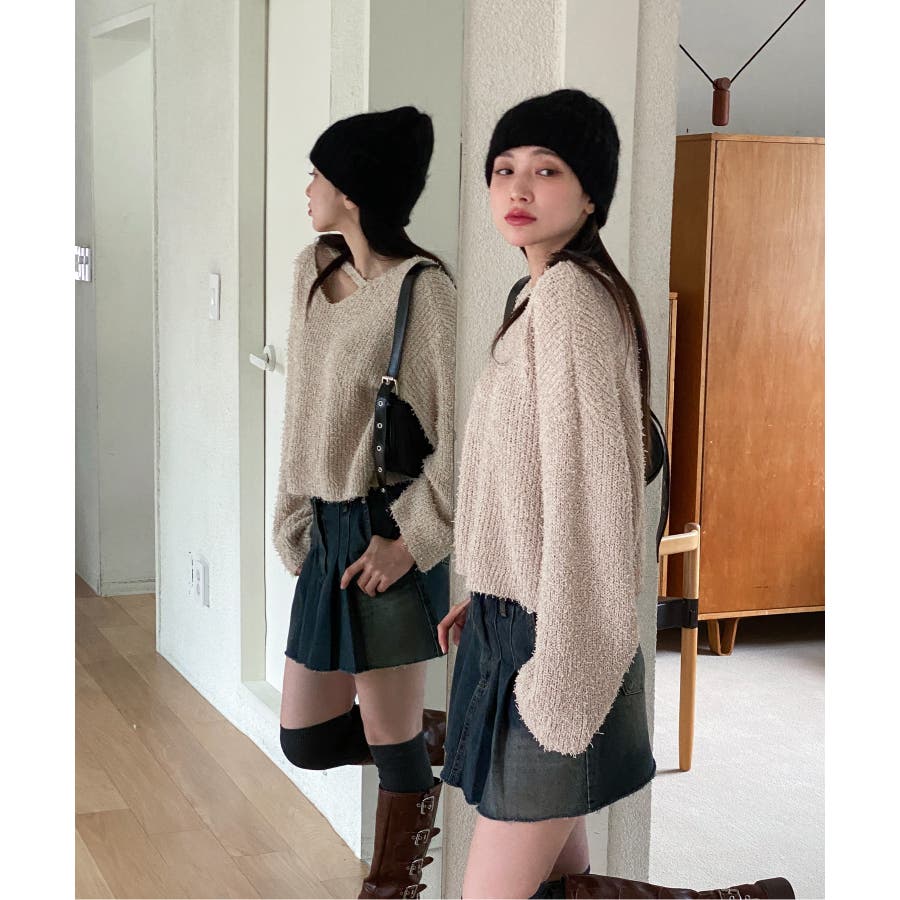 柔らかい肌触りと斜めのスリットがお洒落なニットを紹介します。