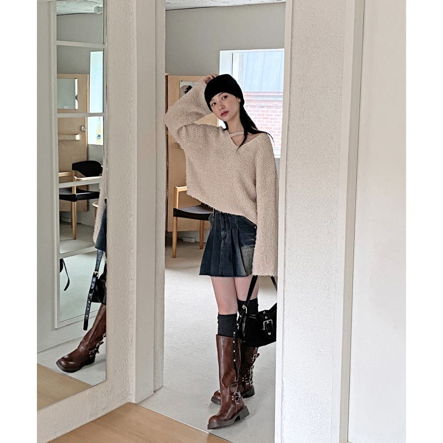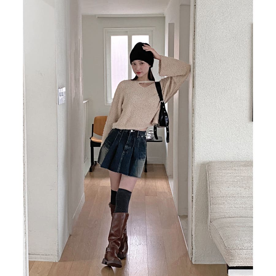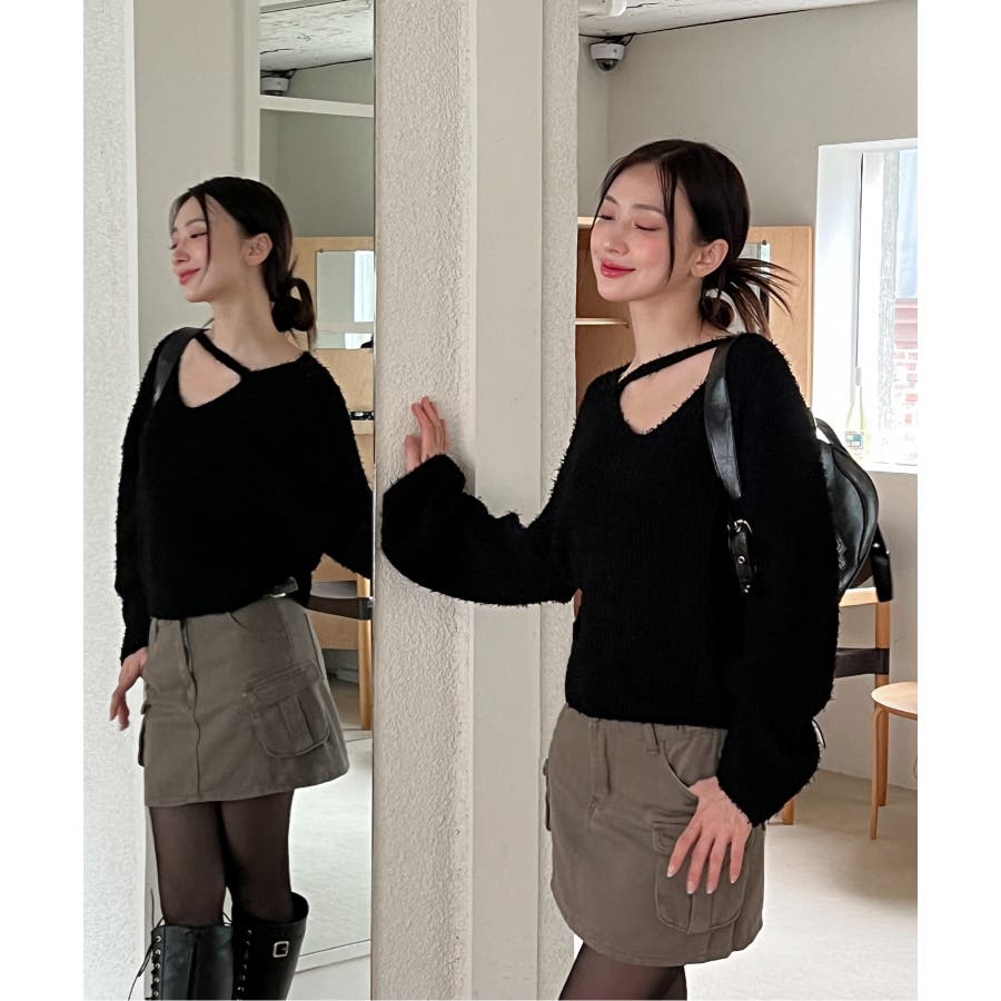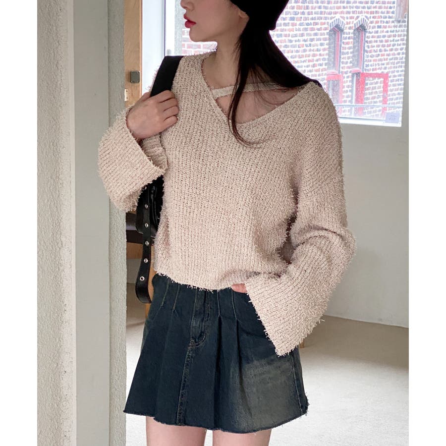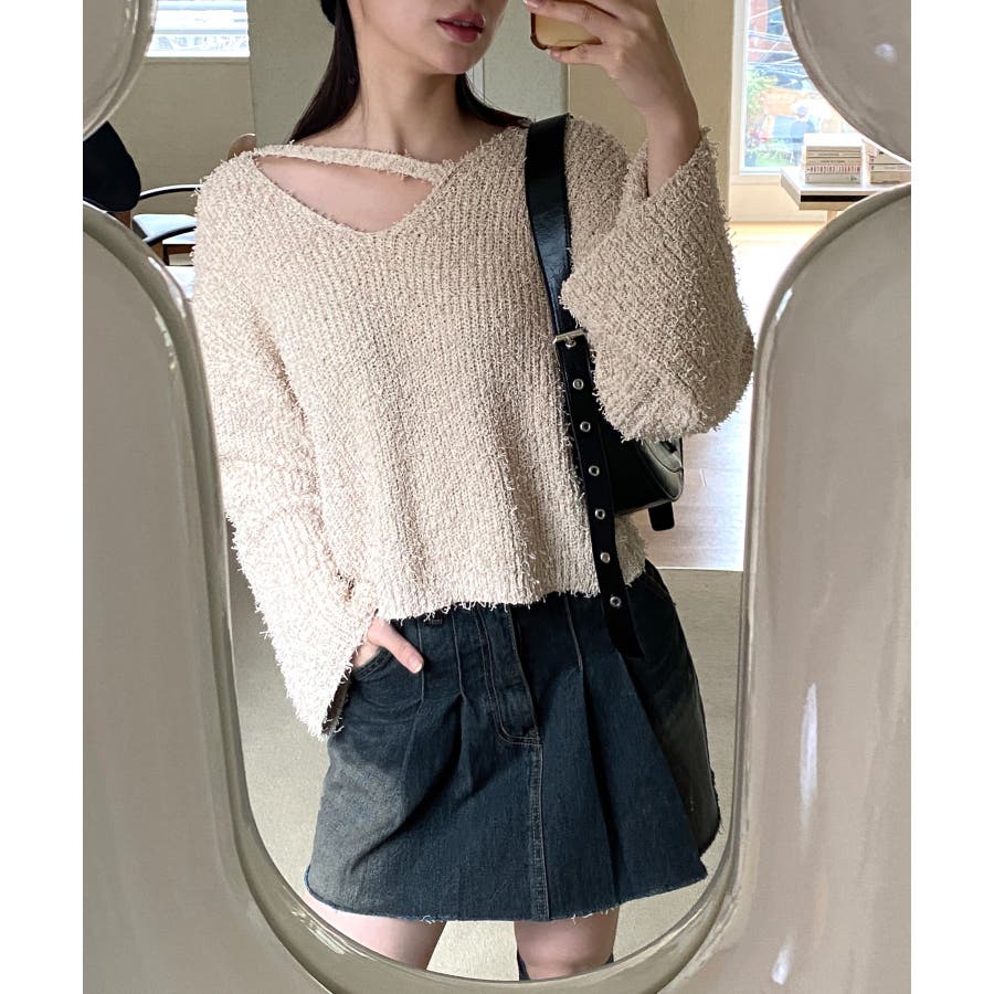 柔らかい肌触りと斜めのスリットがお洒落なニットを紹介します。