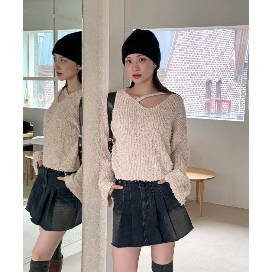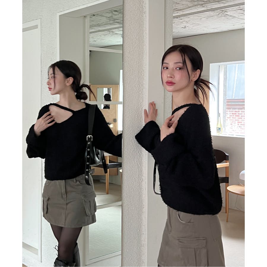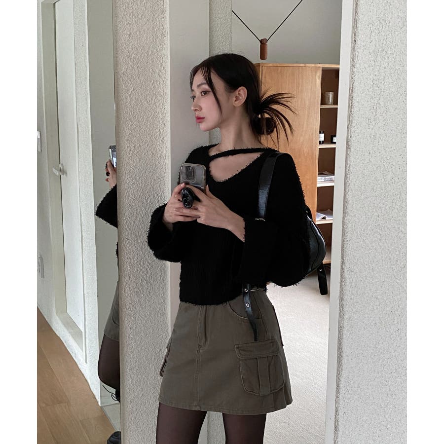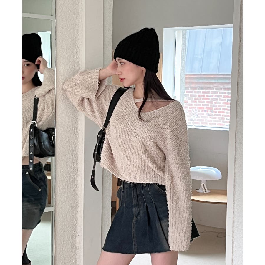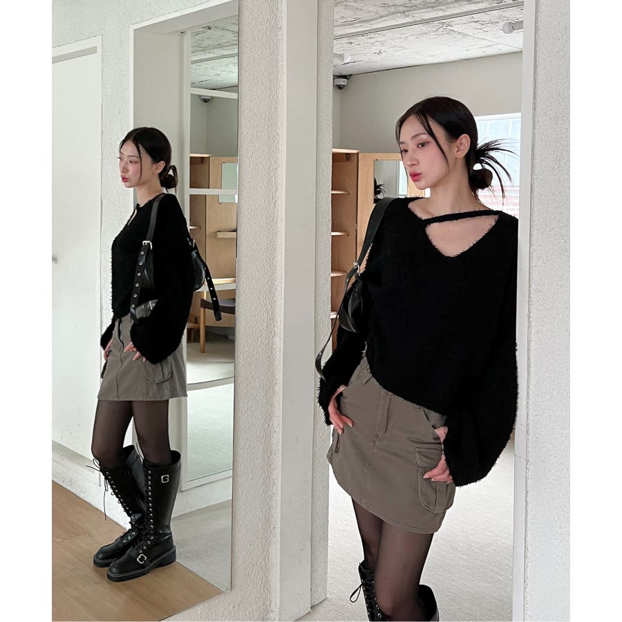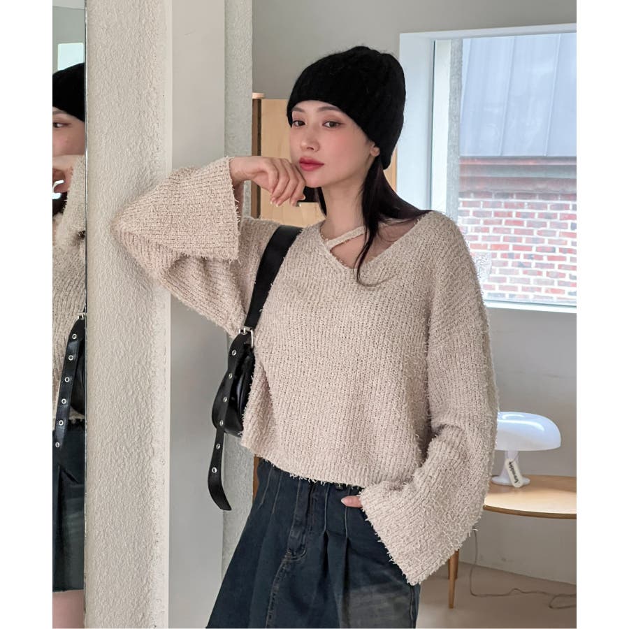 柔らかい肌触りと斜めのスリットがお洒落なニットを紹介します。