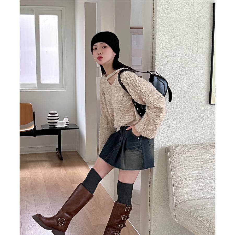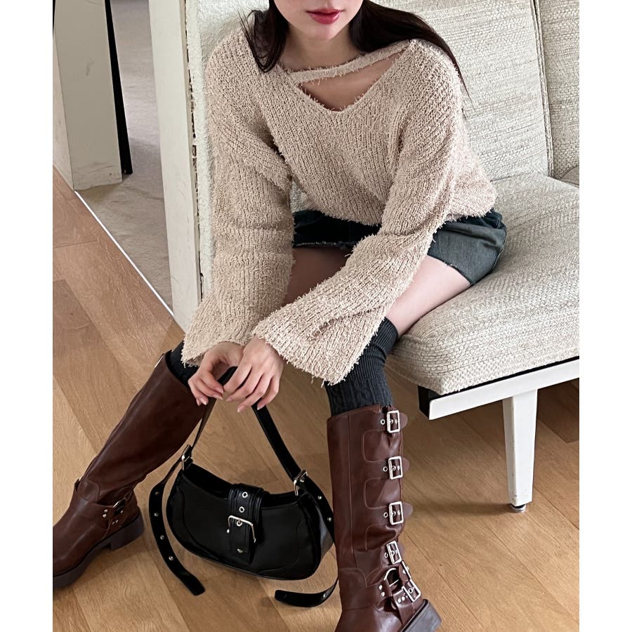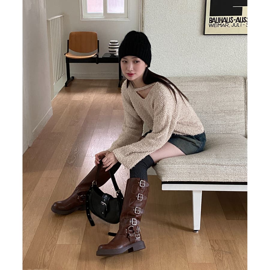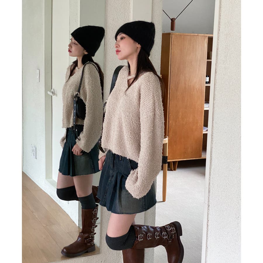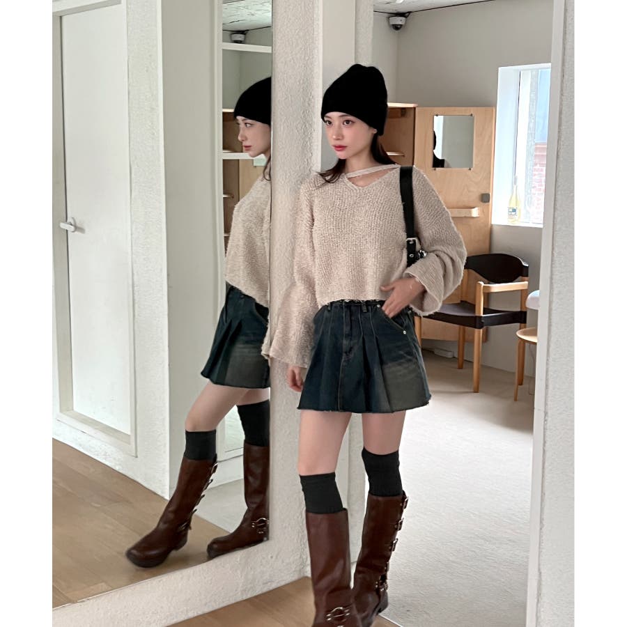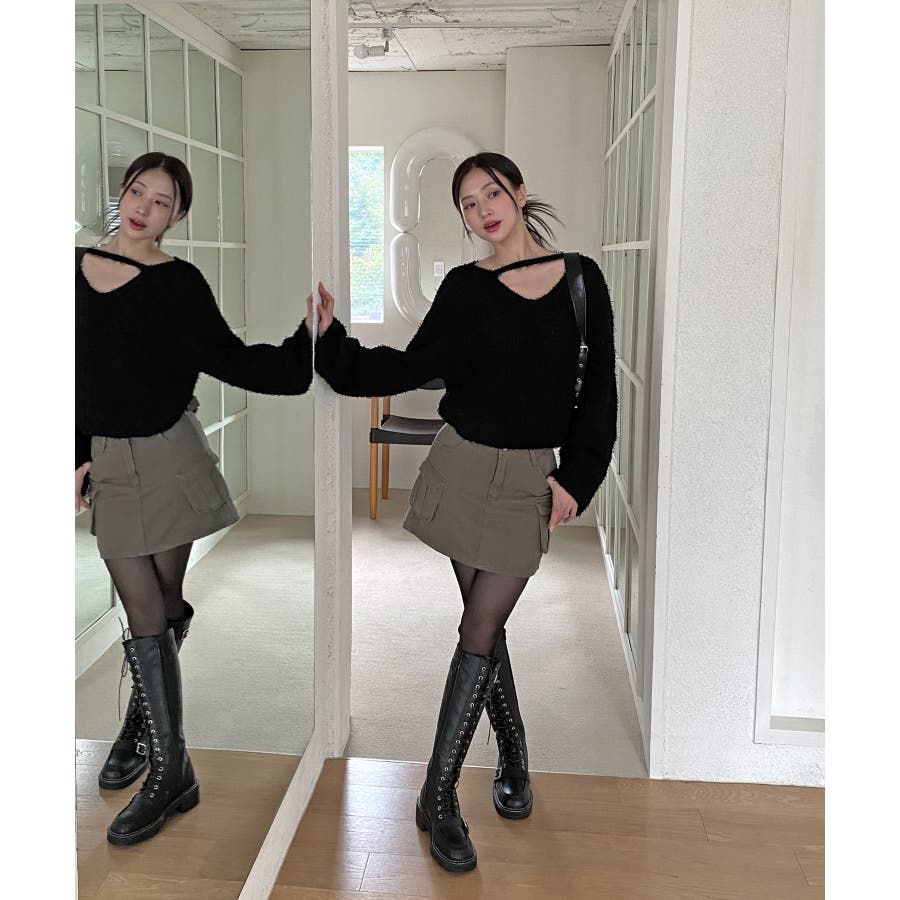 柔らかい肌触りと斜めのスリットがお洒落なニットを紹介します。