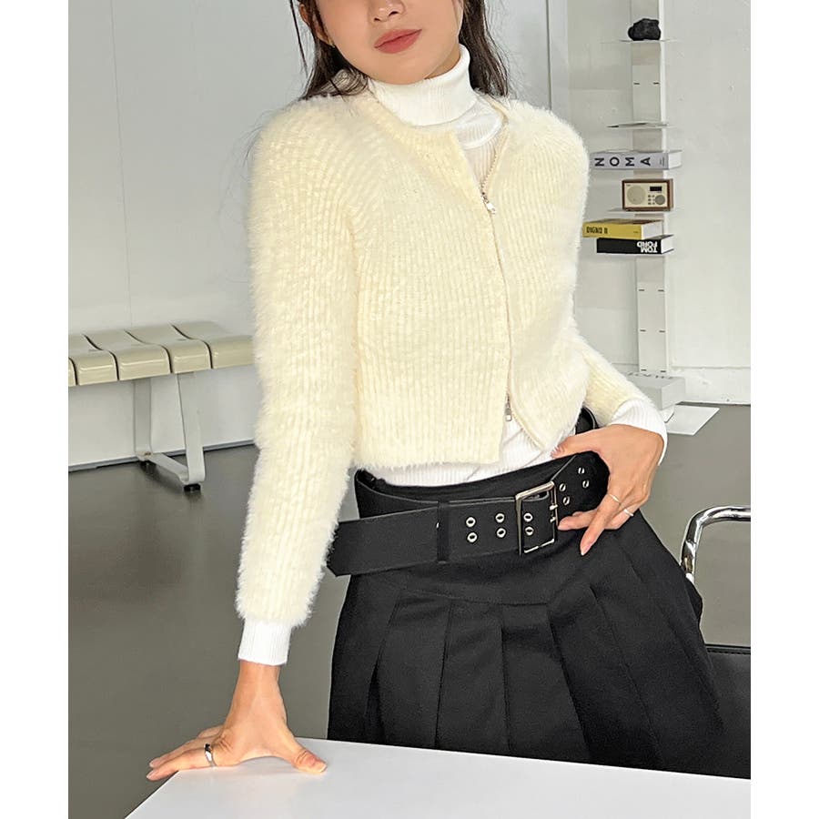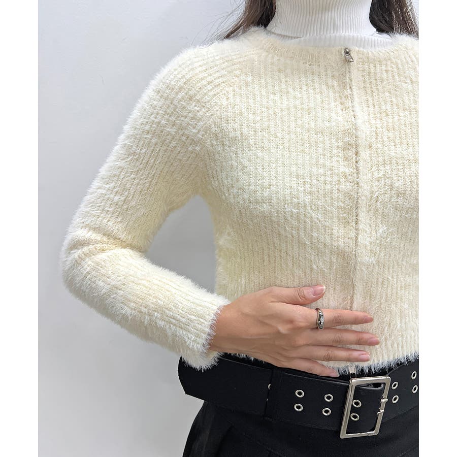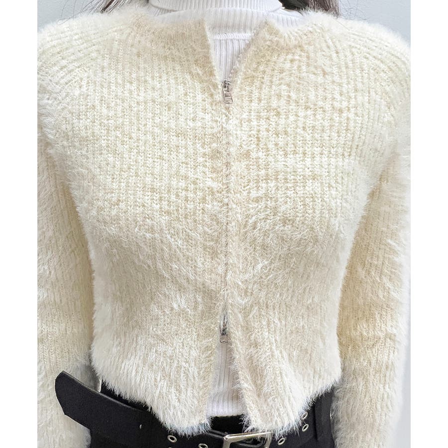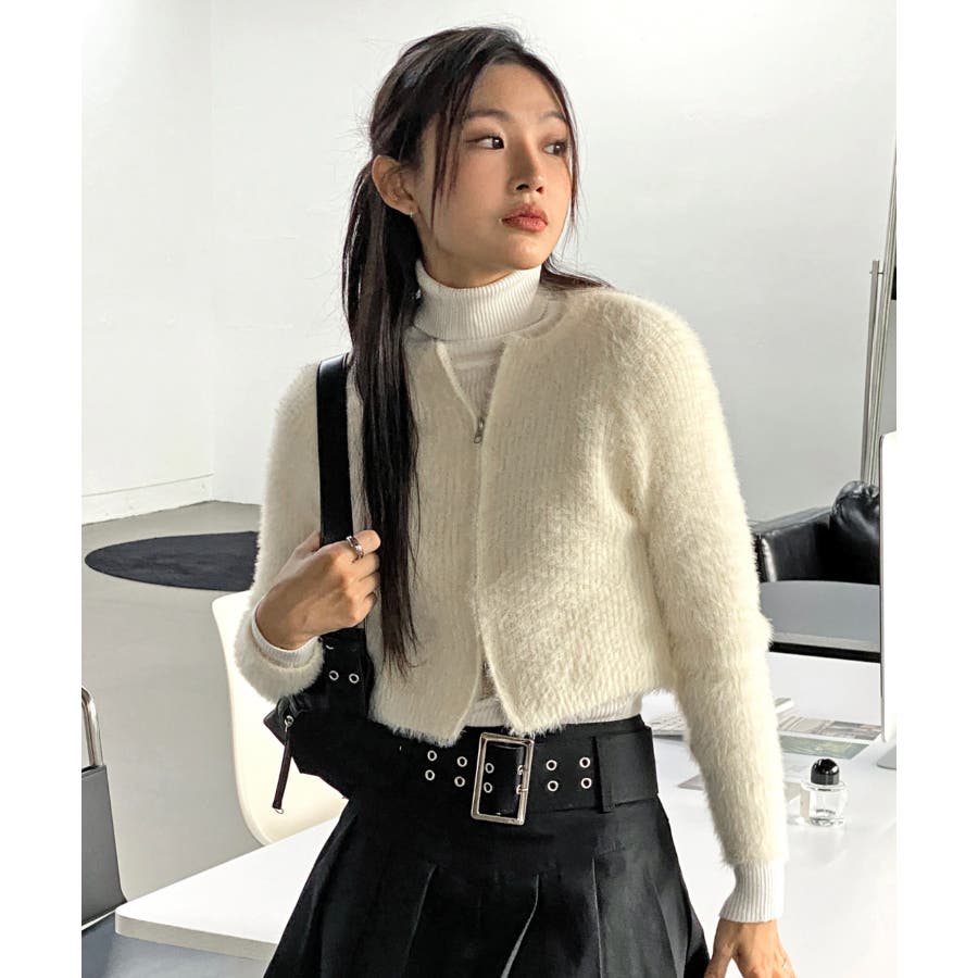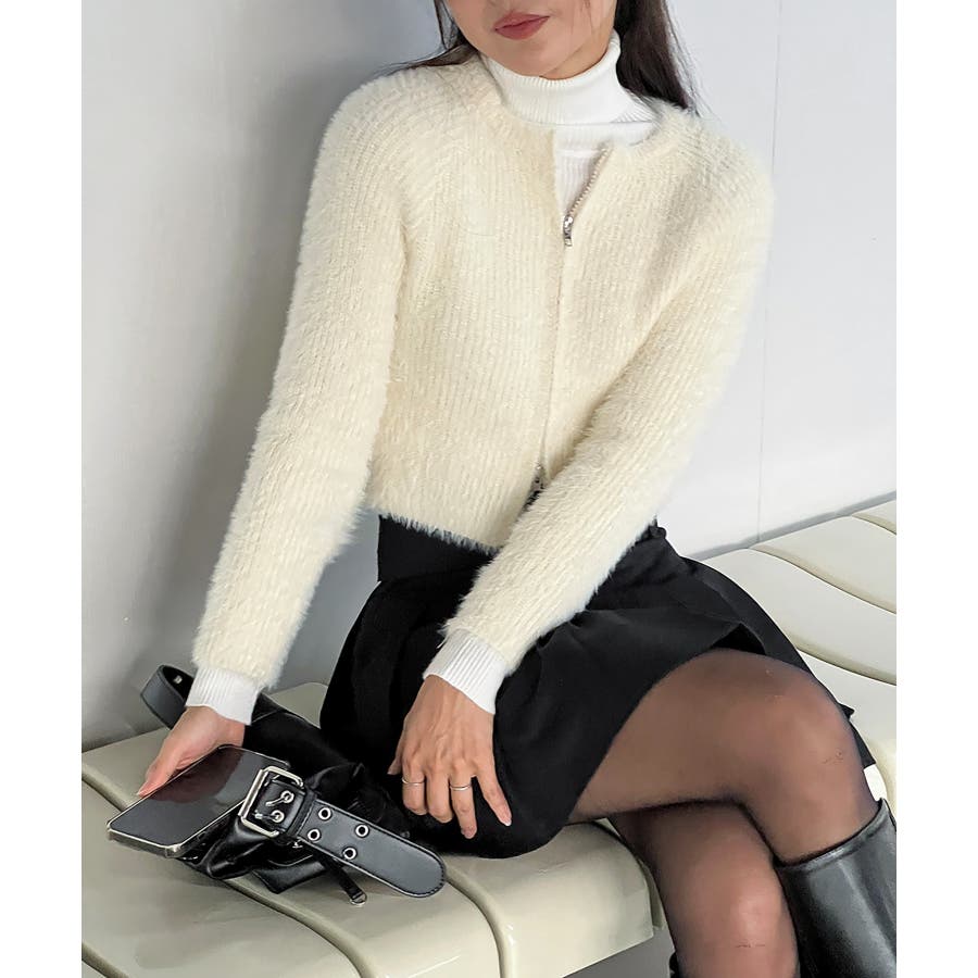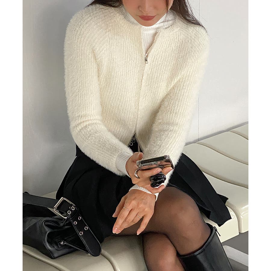 アンゴラ風ジッパーカーディガン