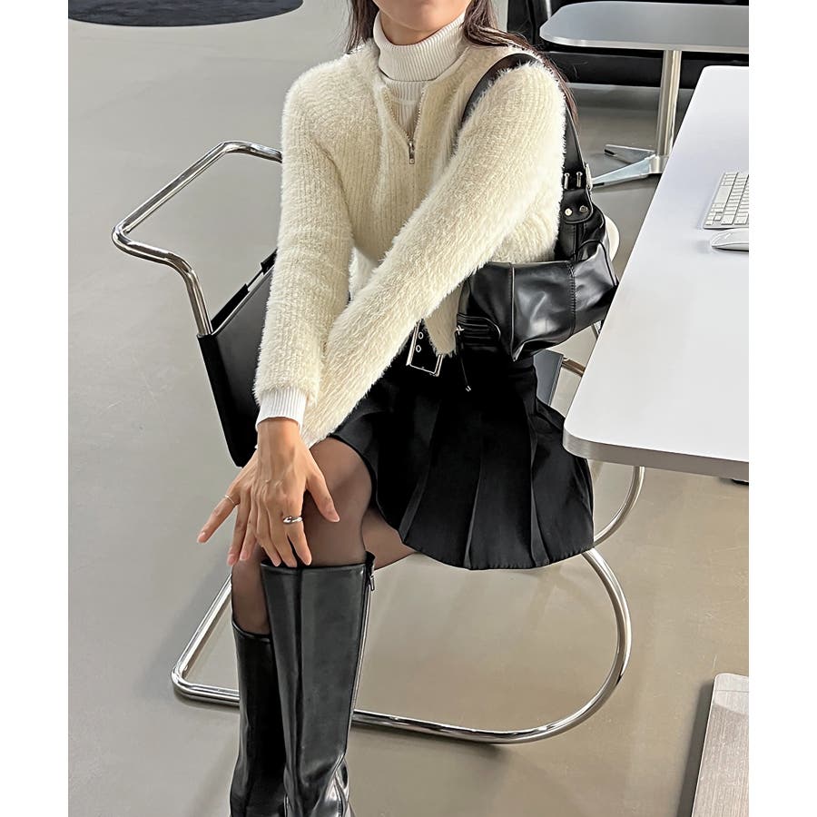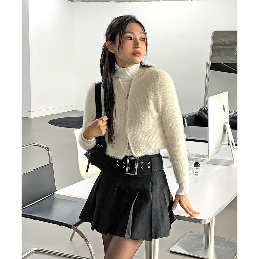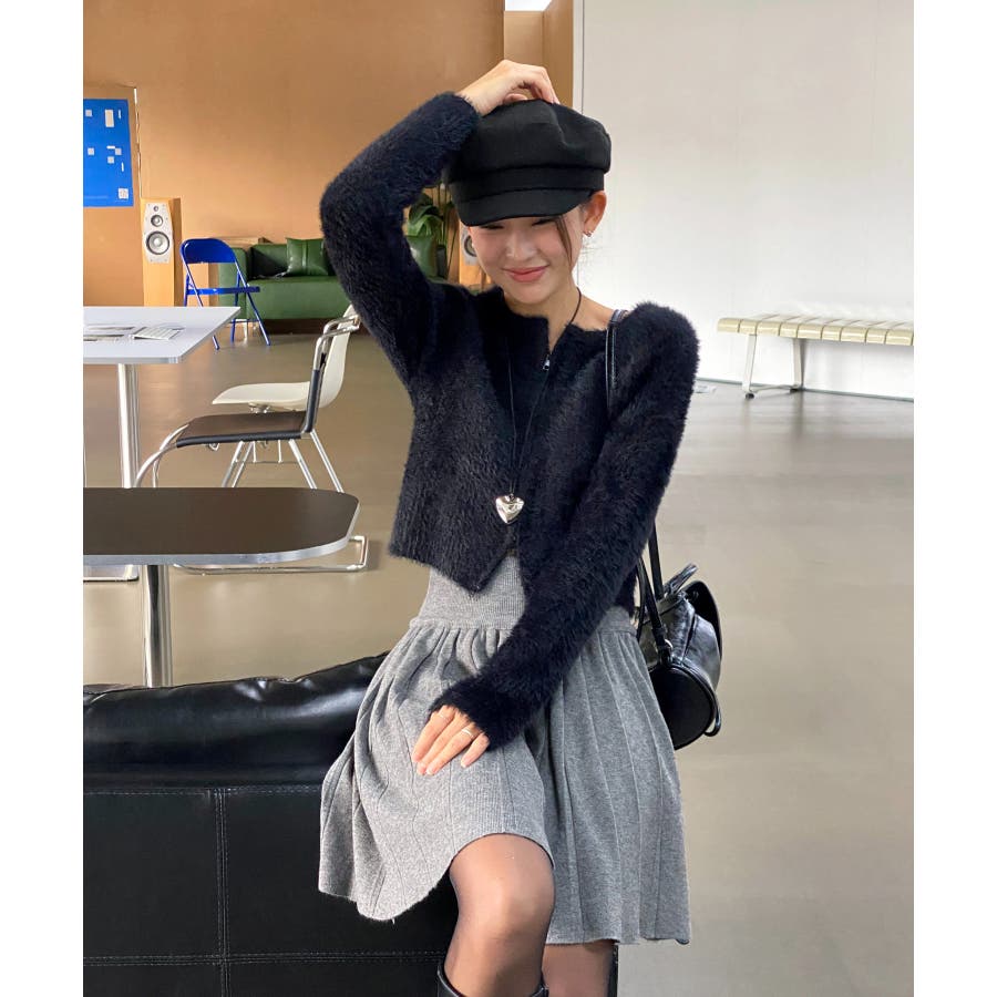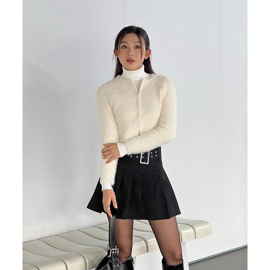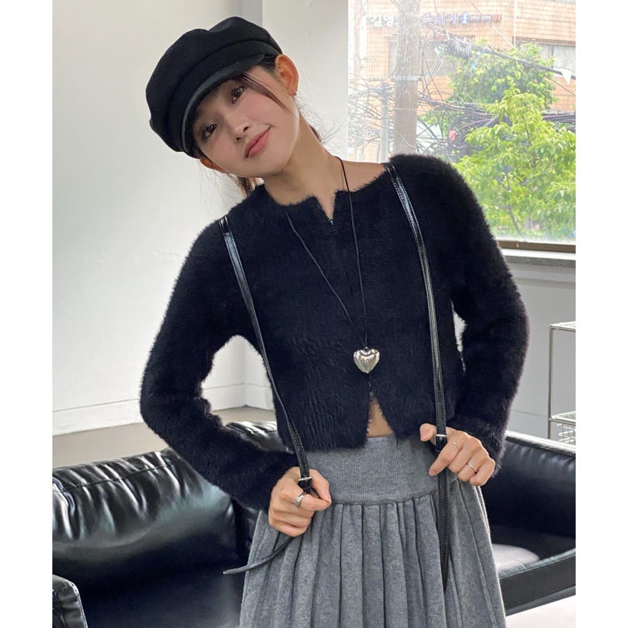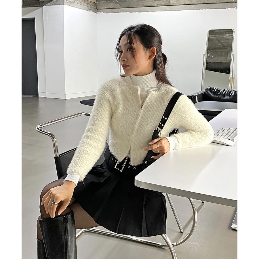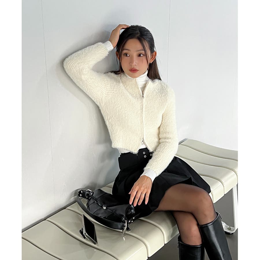 アンゴラ風ジッパーカーディガン