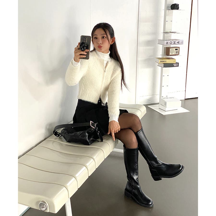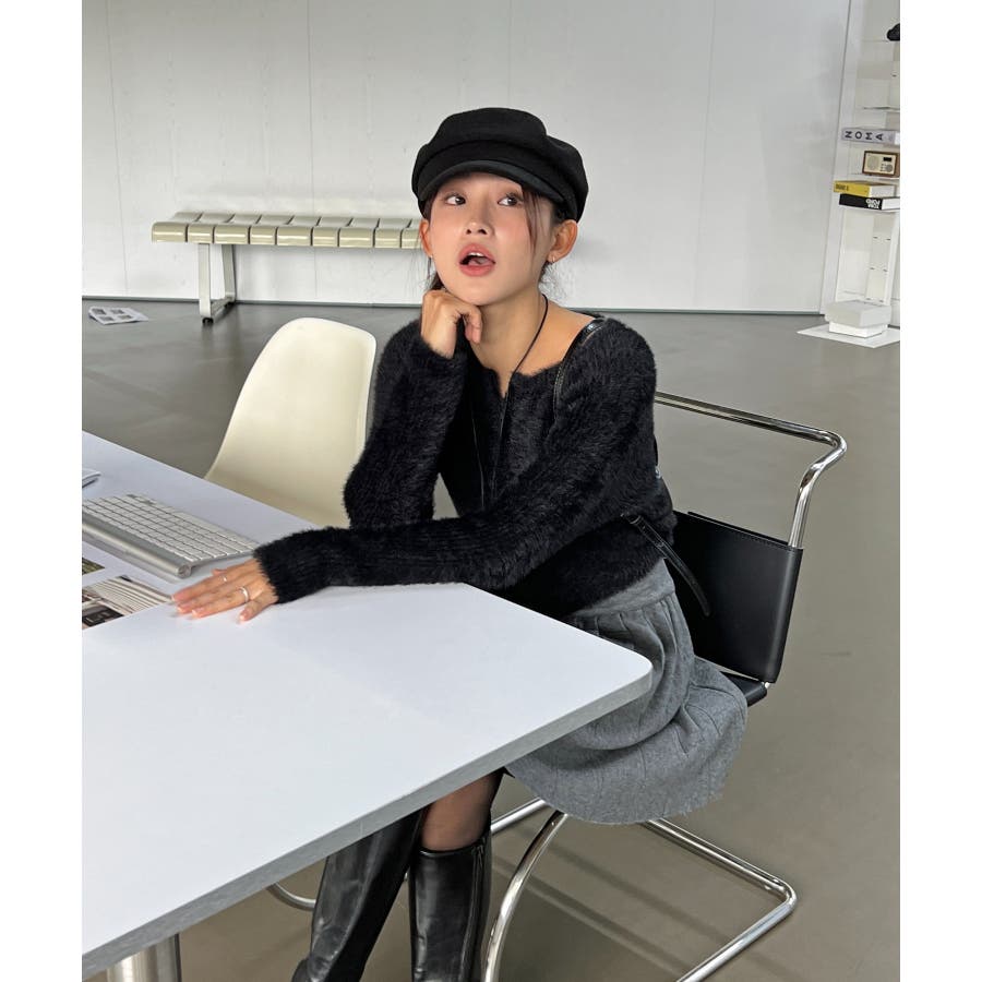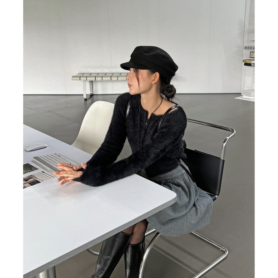 【アンゴラ風ジッパーカーディガン】