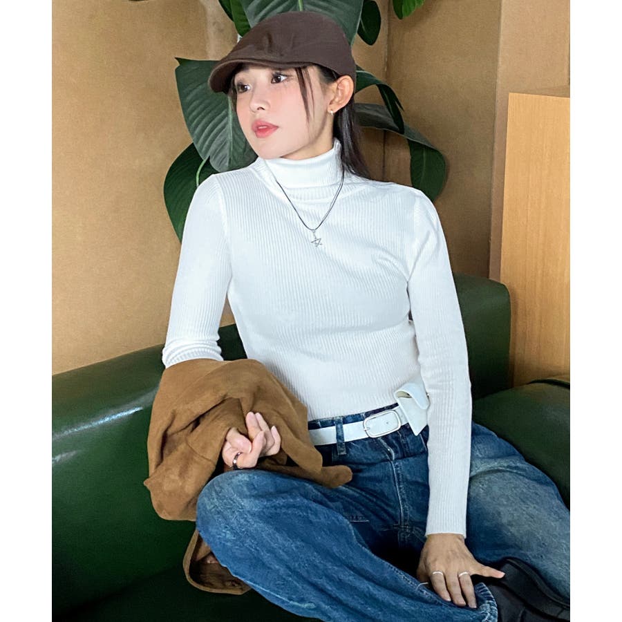 シンプルでデイリーアイテムにぴったりなリブタートルネックを紹介します。