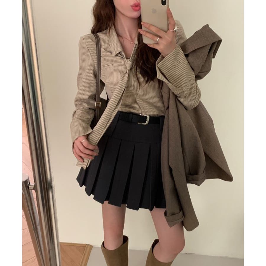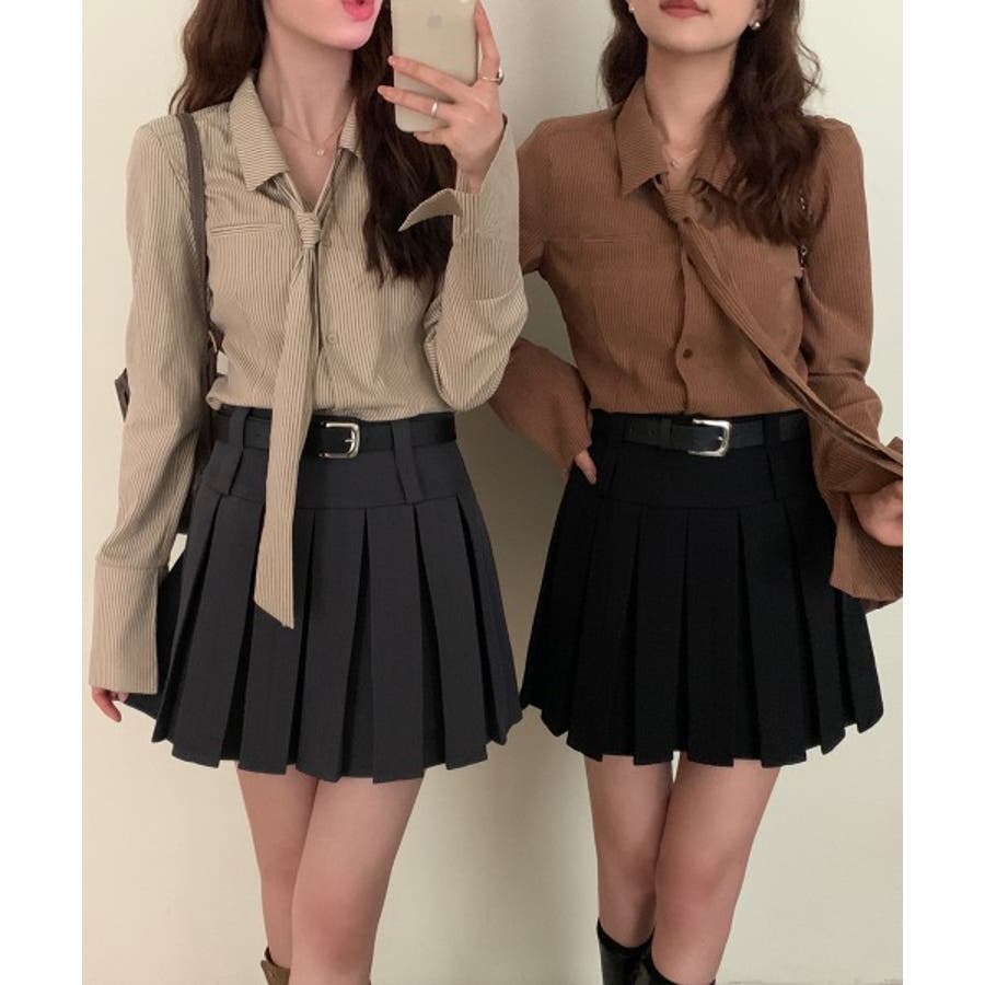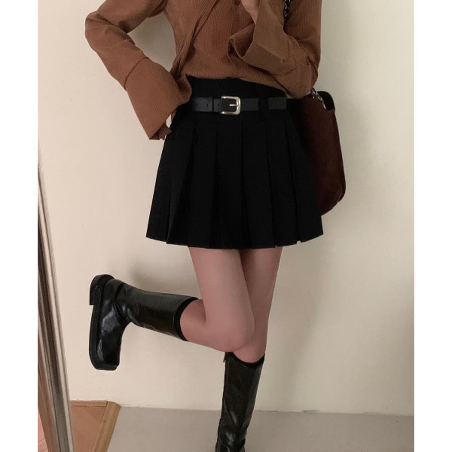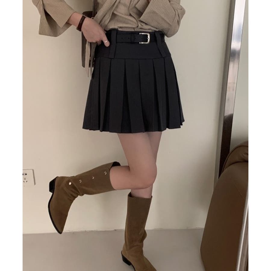 ダブルベルトラインがユニークなプリーツスカートを紹介します。