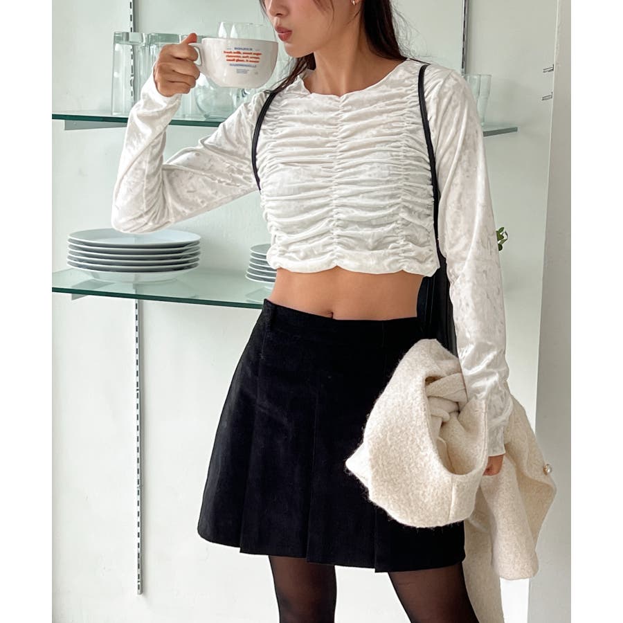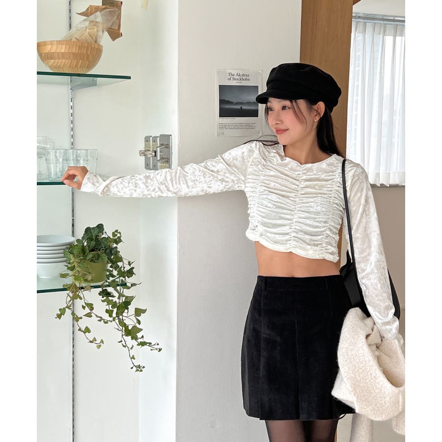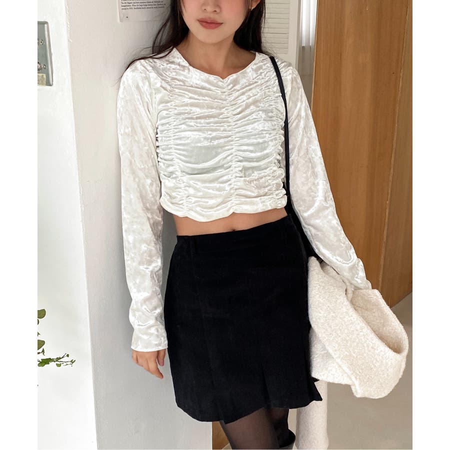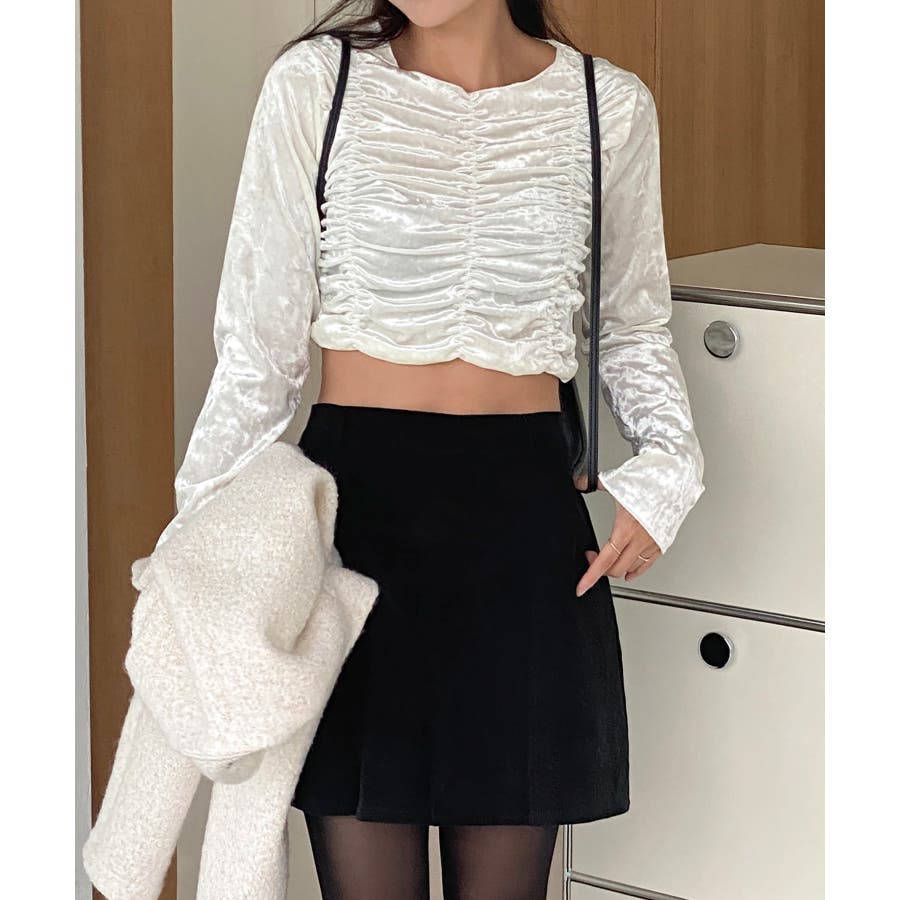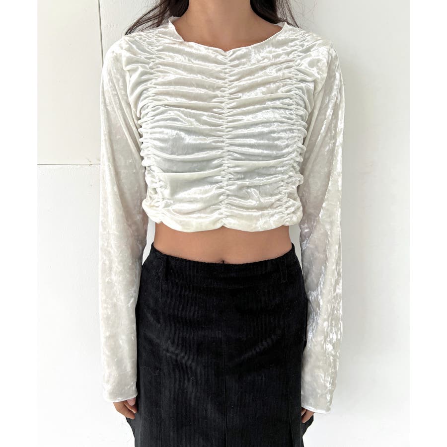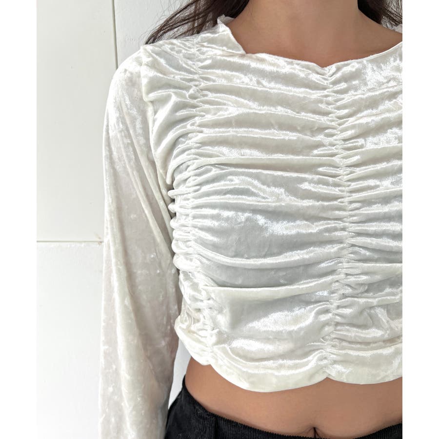 ベルベット素材とシャーリング仕様がポイントのトップスです:)