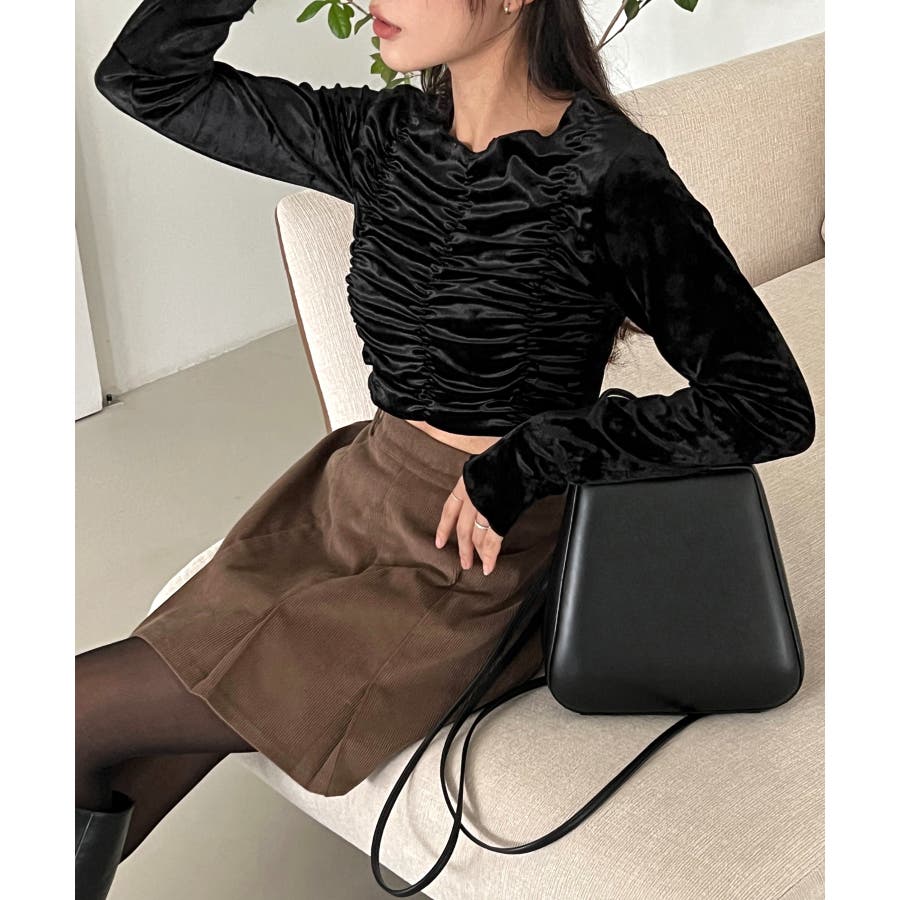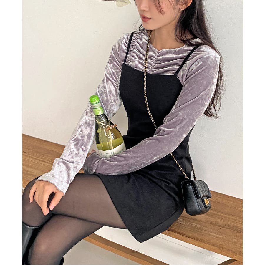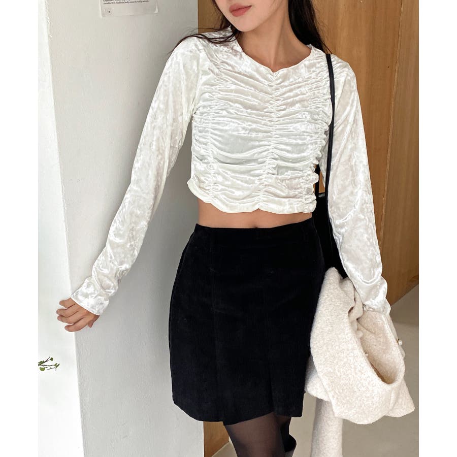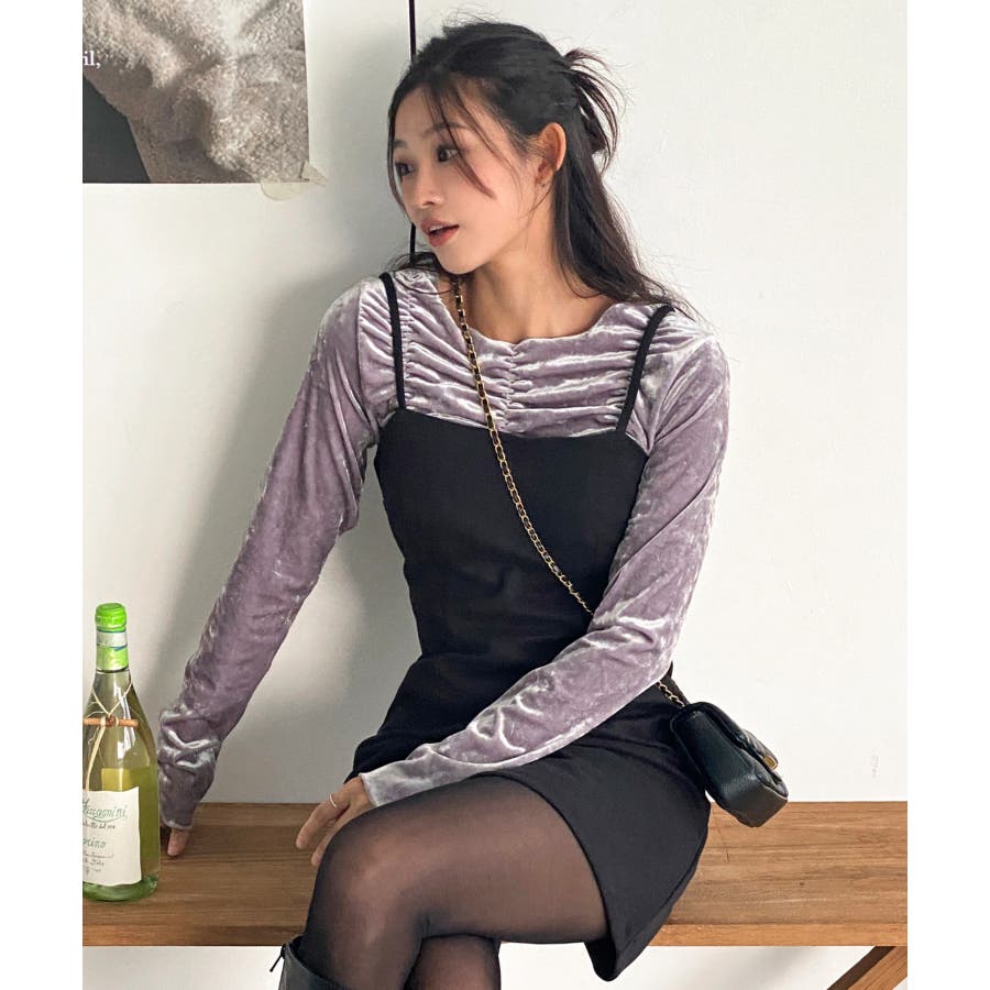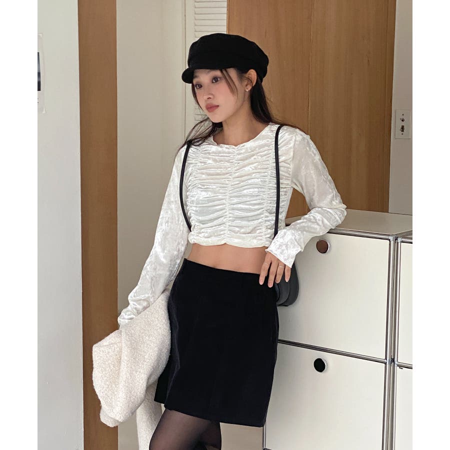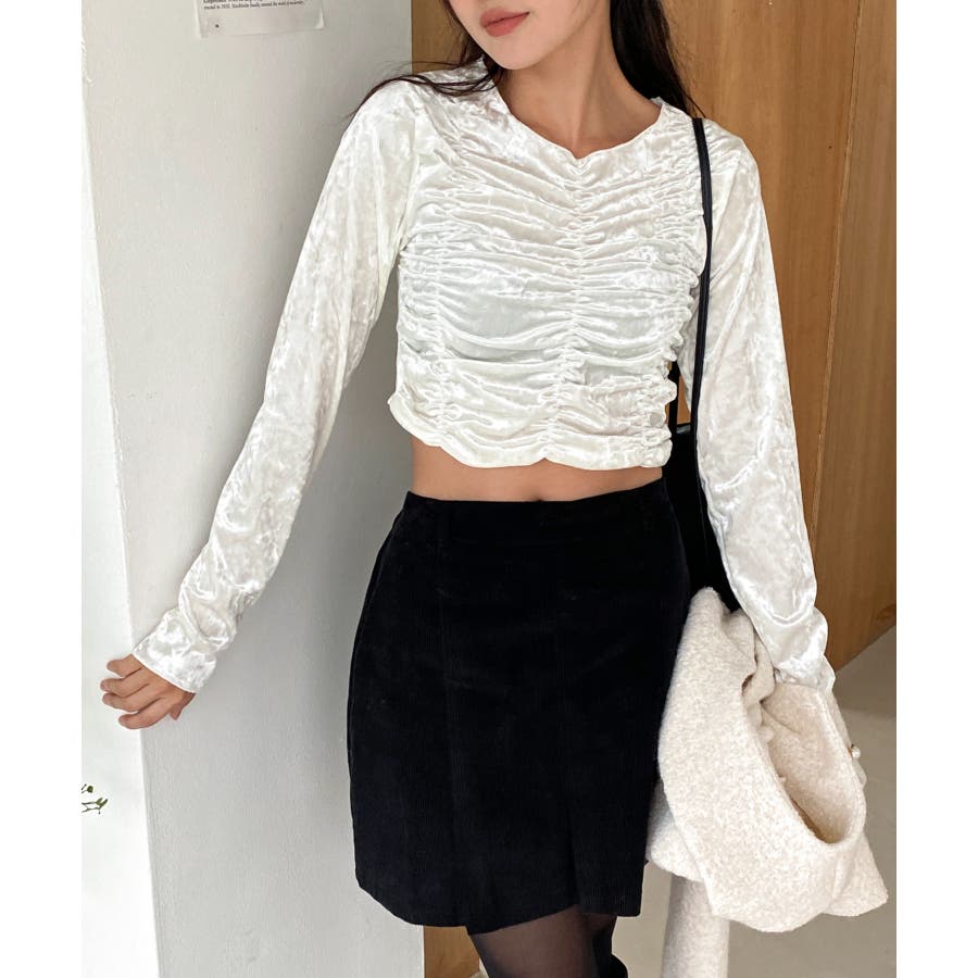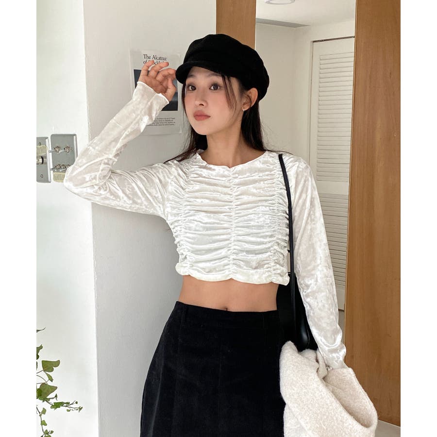 ベルベット素材とシャーリング仕様がポイントのトップスです:)
