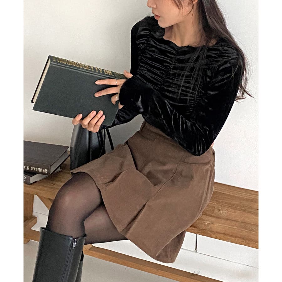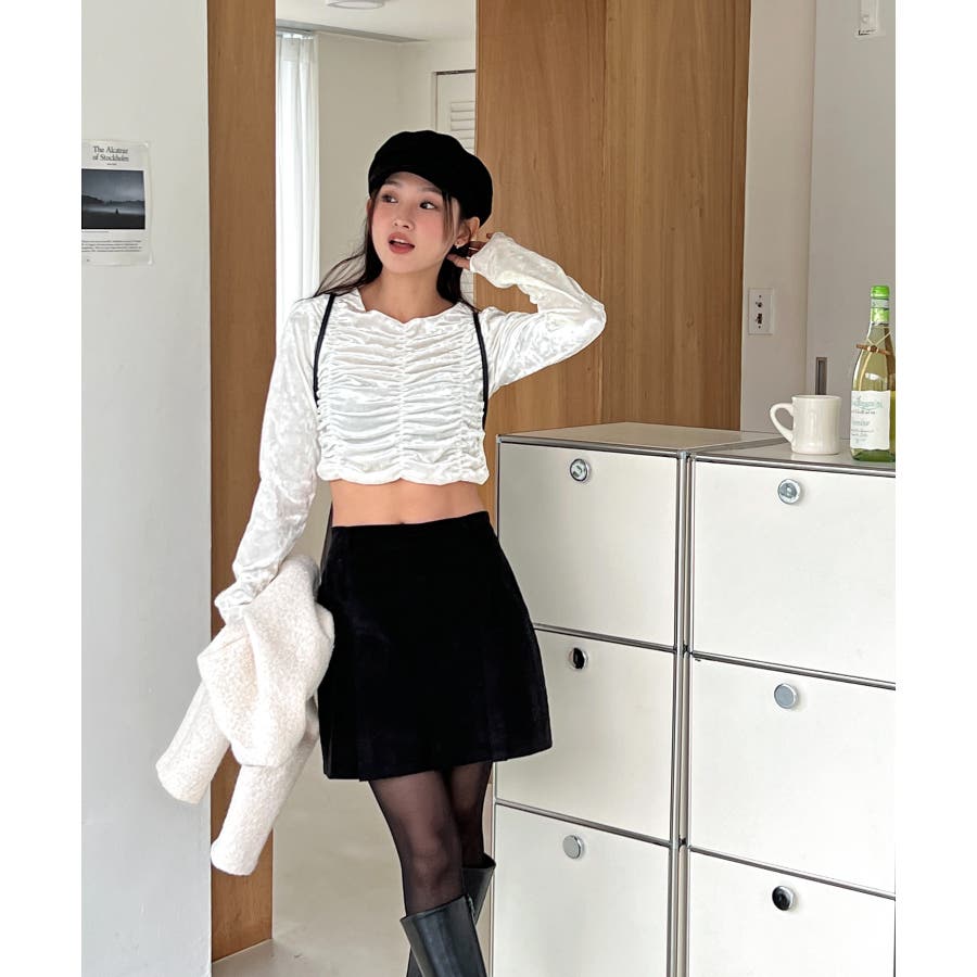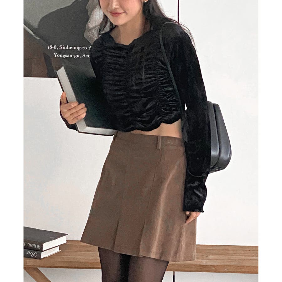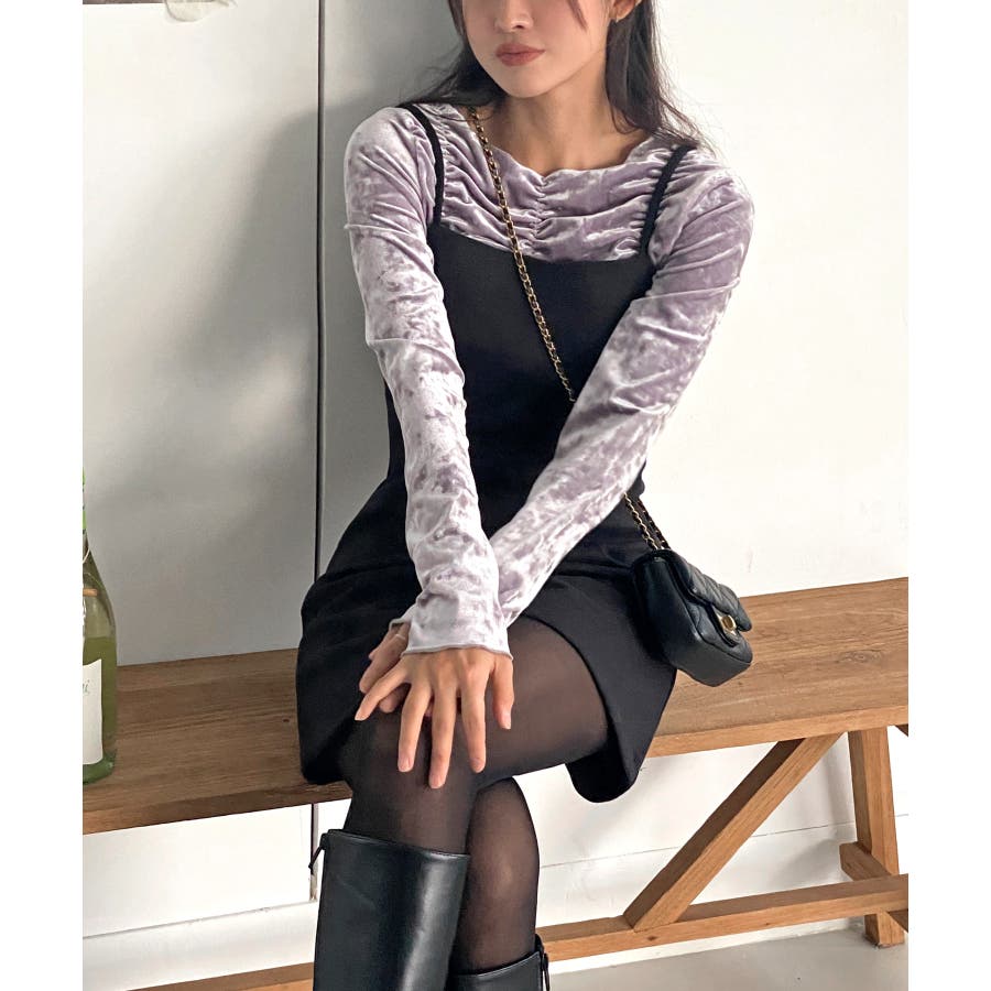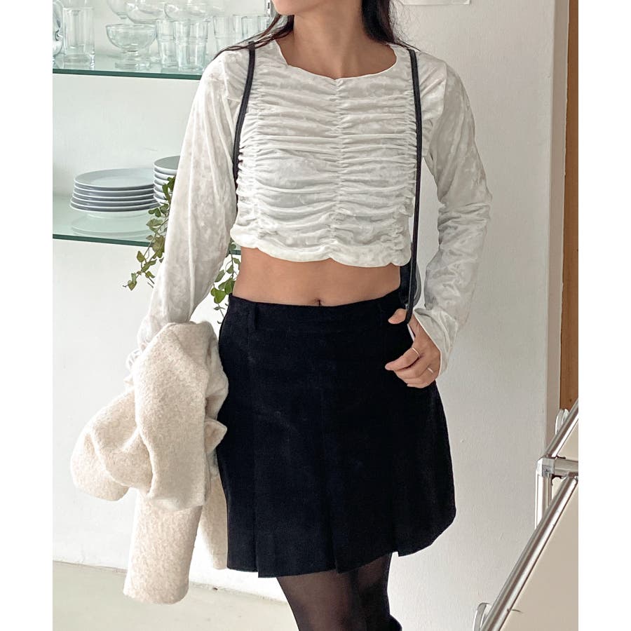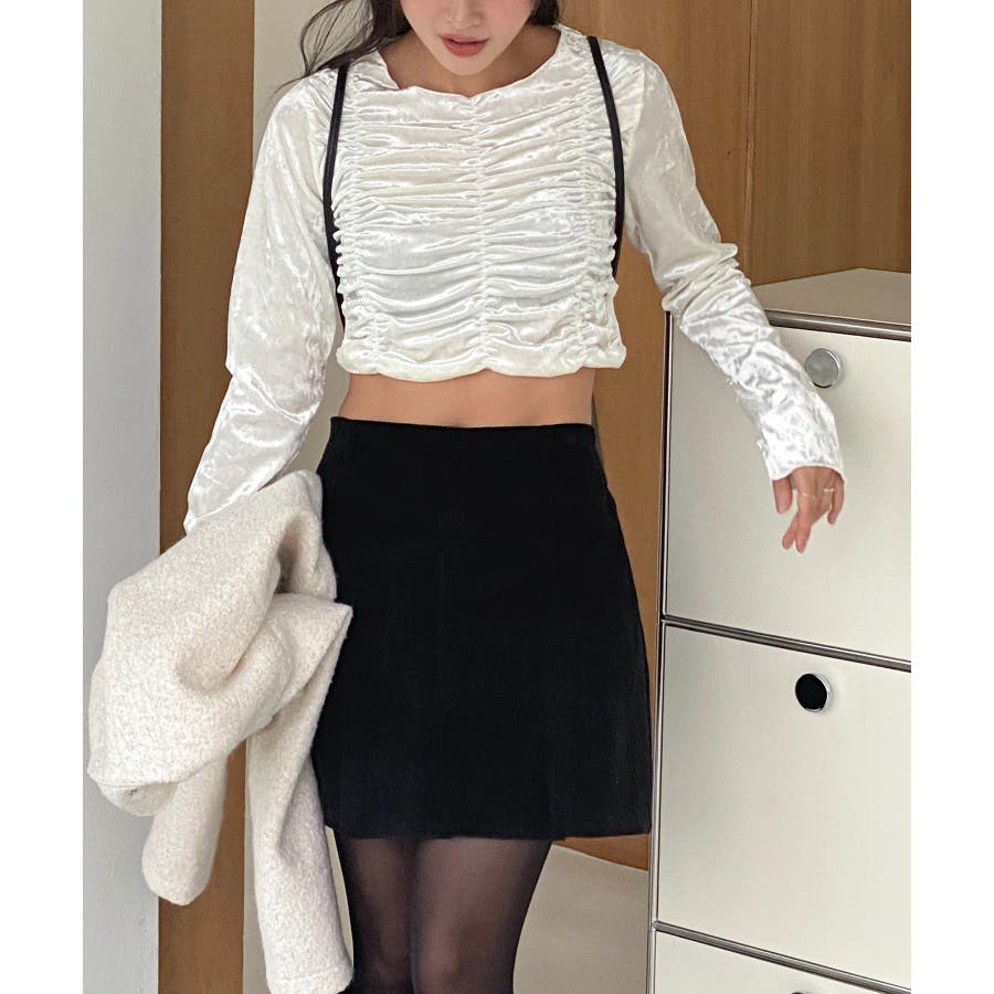 ベルベット素材とシャーリング仕様がポイントのトップスです:)